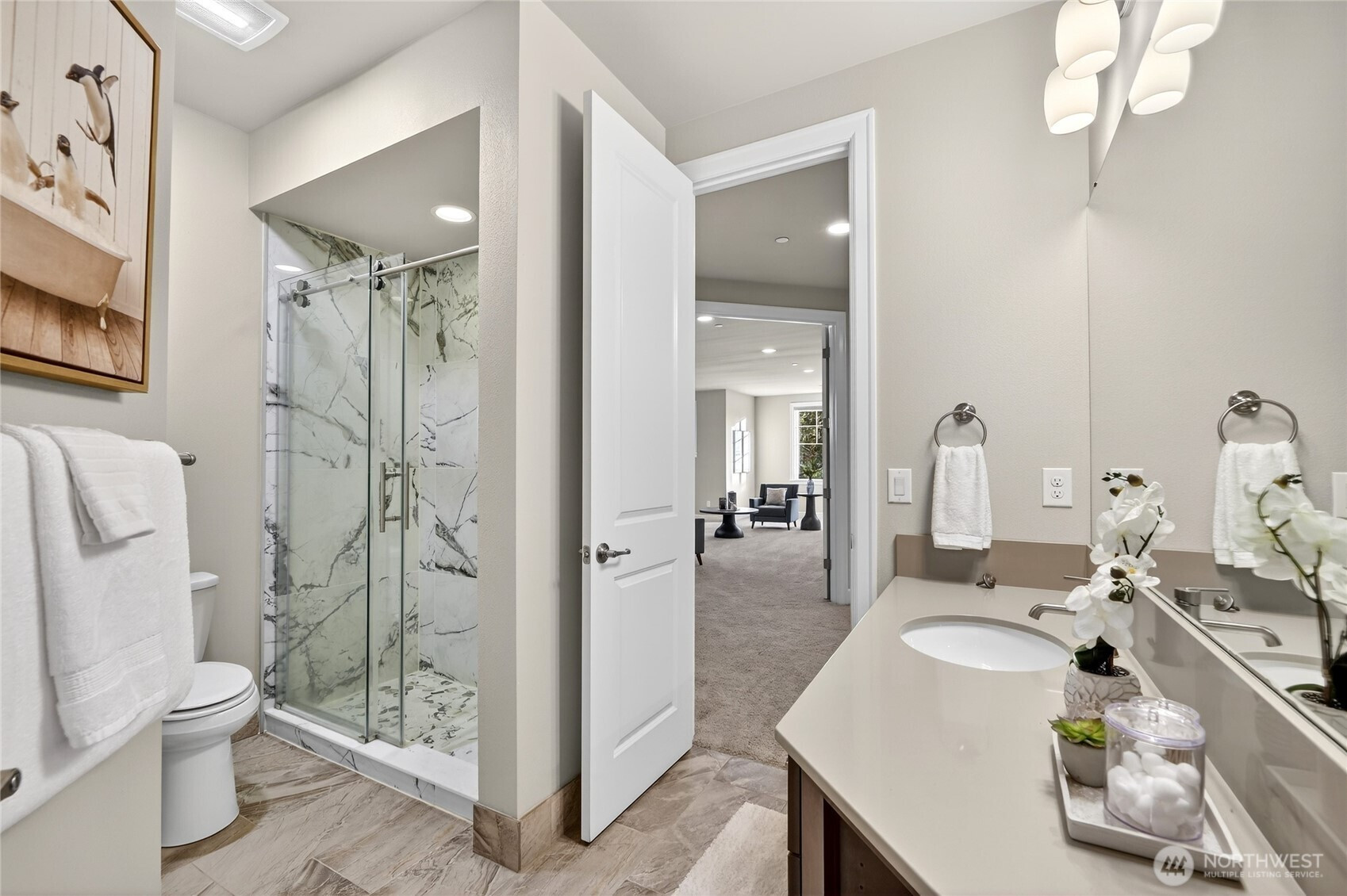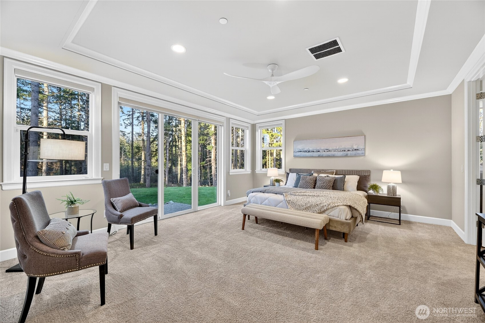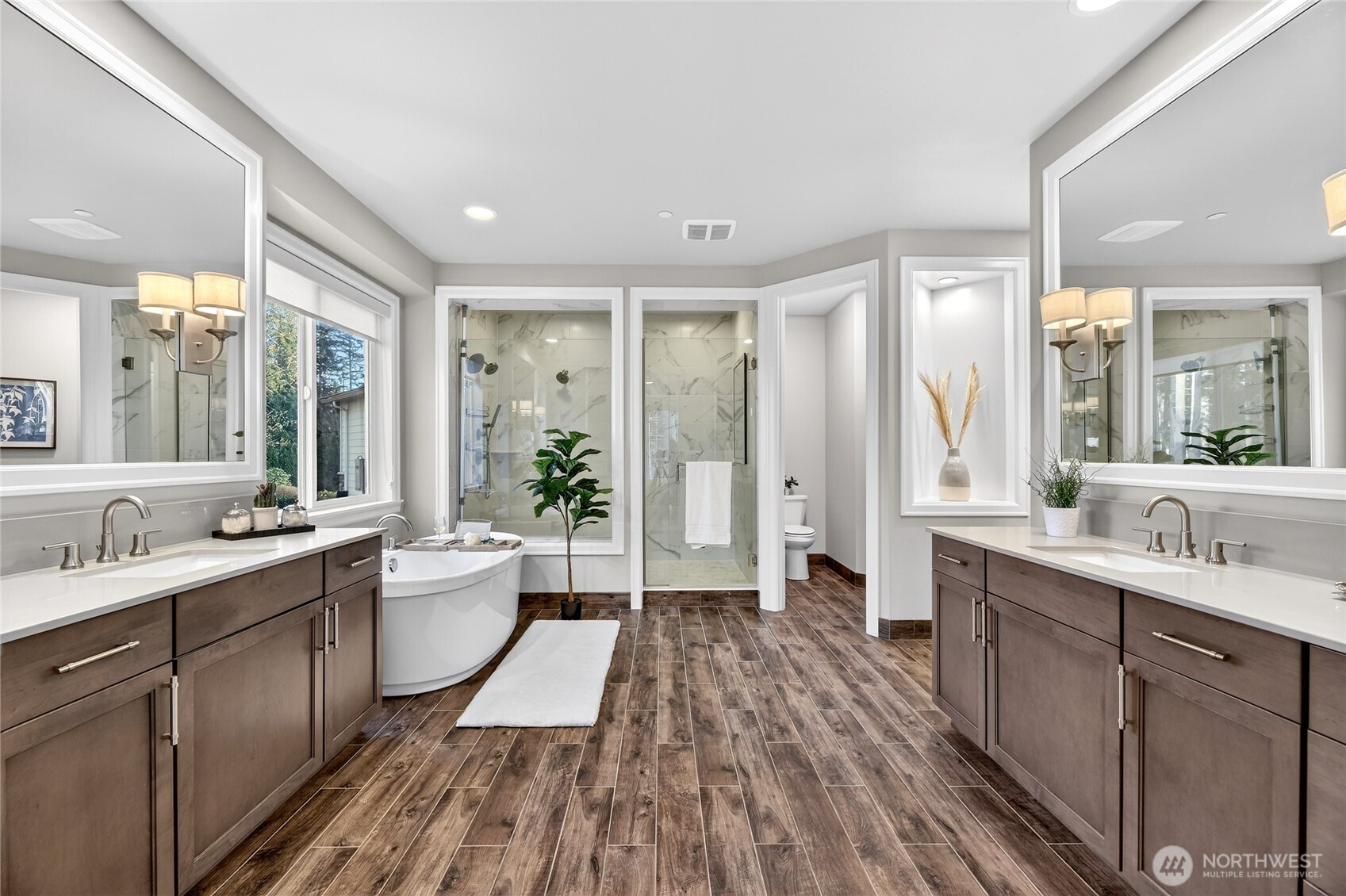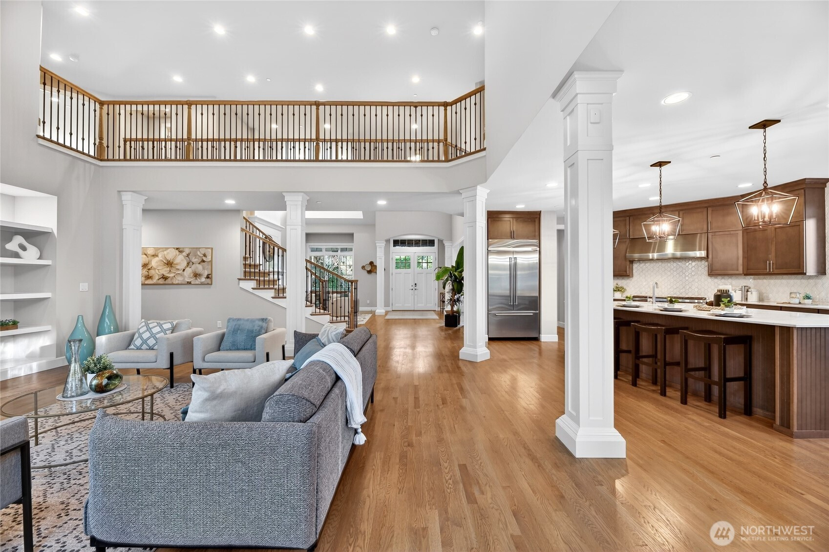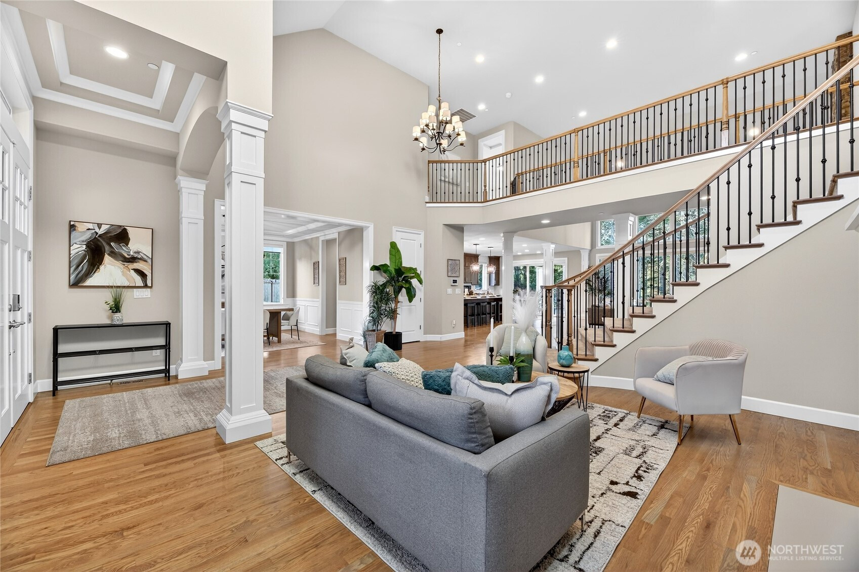 (650)533-3259An extraordinary offering in the heart of Sammamish, this one-of-a-kind estate by acclaimed builder Murray Franklyn blends modern luxury with unmatched privacy. Privately set within a 6-home enclave on ~6 acres of protected greenbelt, this 2018-built residence offers a rare opportunity for newer construction on acreage in a prime location. A grand circular driveway welcomes you into soaring ceilings, expansive windows, and refined living spaces filled with natural light. The chef’s kitchen features top-of-the-line appliances, a generous walk-in pantry, and seamless flow into both formal and casual living areas—each with its own fireplace, perfect for entertaining. The main-floor primary suite is a serene retreat with a spa-inspired bath overlooking lush greenery. The main level also includes a private office, a wet bar, and covered front and back porches for year-round enjoyment. A striking circular staircase leads upstairs to three spacious bedrooms, two updated baths with walk-in showers, and a fully equipped media room that provides the ultimate retreat for guests. Every inch of the home is designed with intention, offering abundant storage and a spacious 4-car garage. Located in the award-winning Issaquah School District, just minutes from shopping, dining, and trails. Newer construction on acreage in Sammamish is exceptionally rare—this is luxury living without compromise.