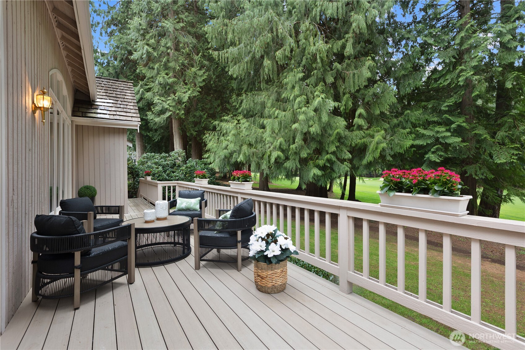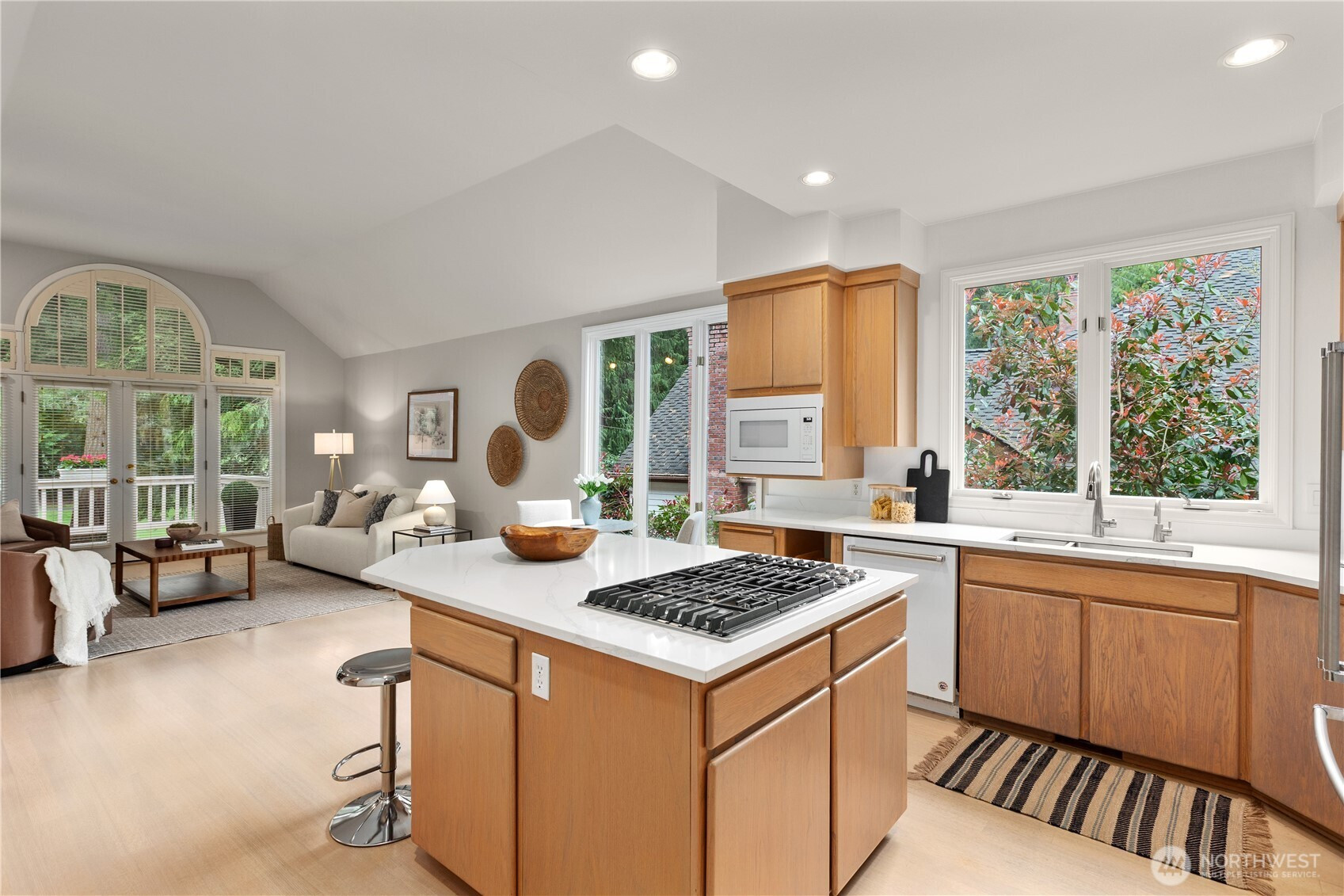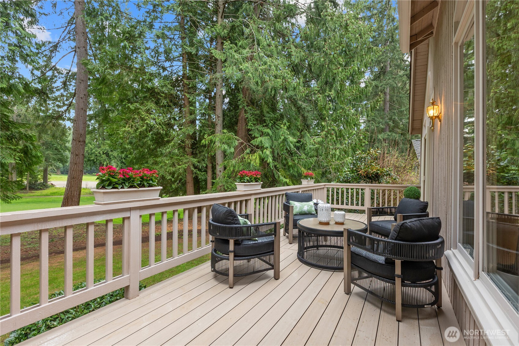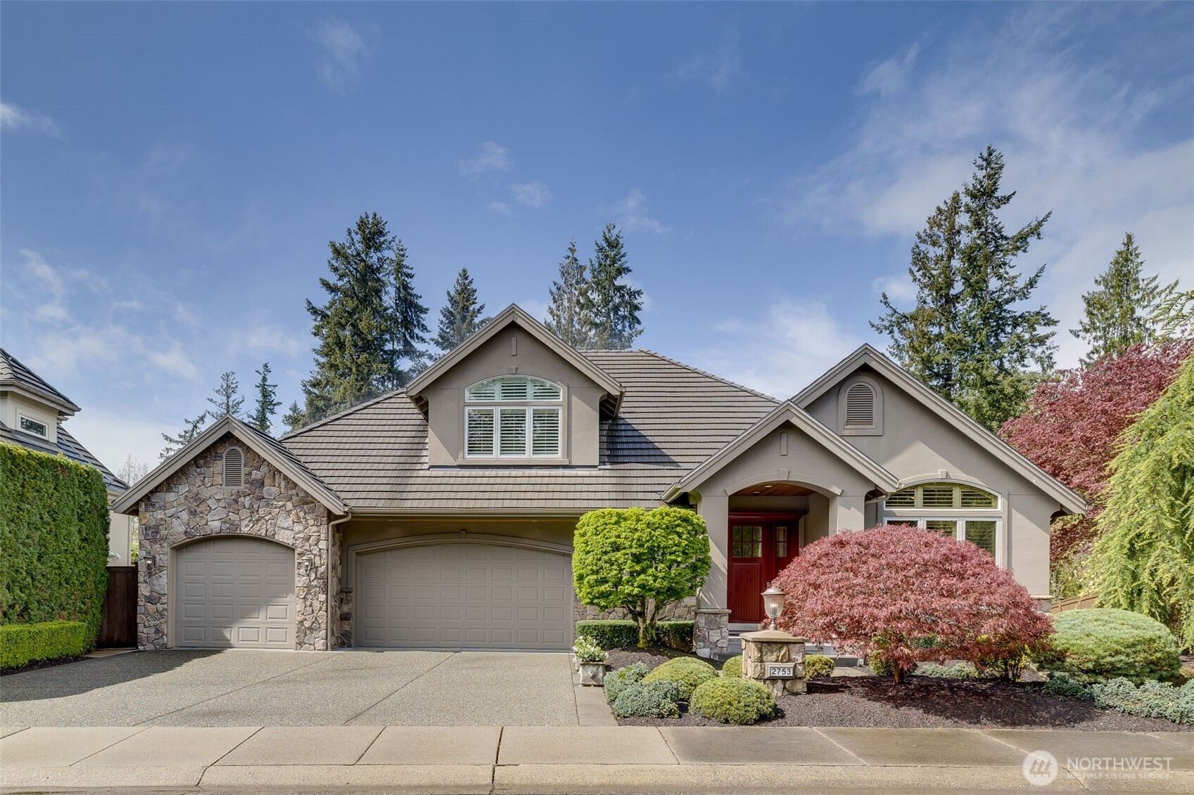 (650)533-3259A pristine, beautifully updated single-story, three-bedroom home situated at the end of a cul-de-sac in Sahalee. Meticulously maintained, this elegant home offers one-level living and features soaring ceilings & expansive living areas bathed in natural light with golf course views. Step into a striking marble-clad entry, leading to the formal living and dining rooms, both with radiant heated marble floors and walls of windows. A dramatic double-sided fireplace anchors the living room to the bright open-concept family room & kitchen - the heart of the home- featuring rift-cut oak hardwoods, vaulted ceilings, center island, quartz countertops & a brand new gas cooktop, double ovens & microwave. French doors open from the family room onto a new composite deck & manicured garden on the 2nd fairway of the East Course. Private and tranquil, perfect for both relaxation & entertaining. The oversized primary suite offers a fully remodeled 5-piece bathroom with soaking tub, radiant heated marble floors and two walk-in closets. French doors open onto the deck, the perfect spot to enjoy a quiet morning coffee. This home features an oversized double garage, central A/C, crawlspace w/purifier, attic platform storage & freshly painted interiors. Sahalee is a 24-hour guard-gated golf community with a 27-hole championship course, set within one of WA’s most desirable suburbs. Top-rated LWSD schools, easy access to highways, Redmond Light Rail, Bellevue & Seattle. Refined living. Welcome home.