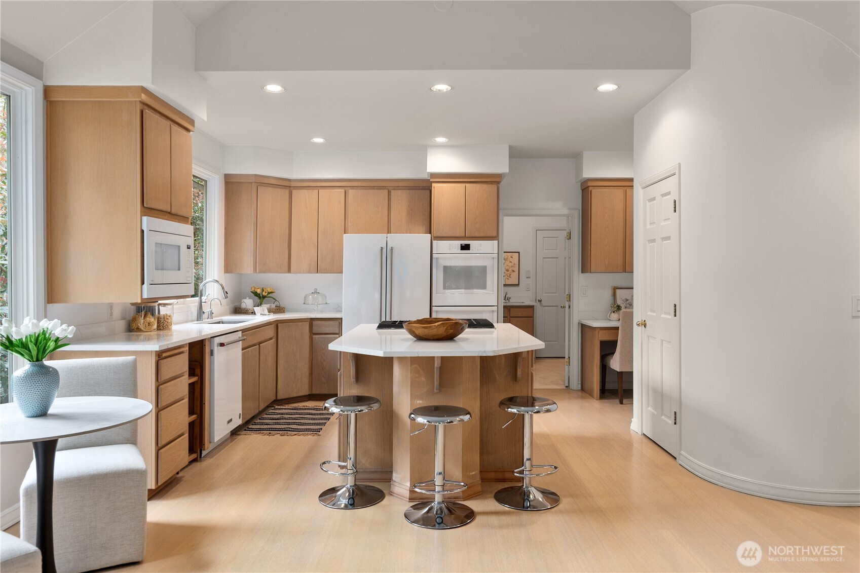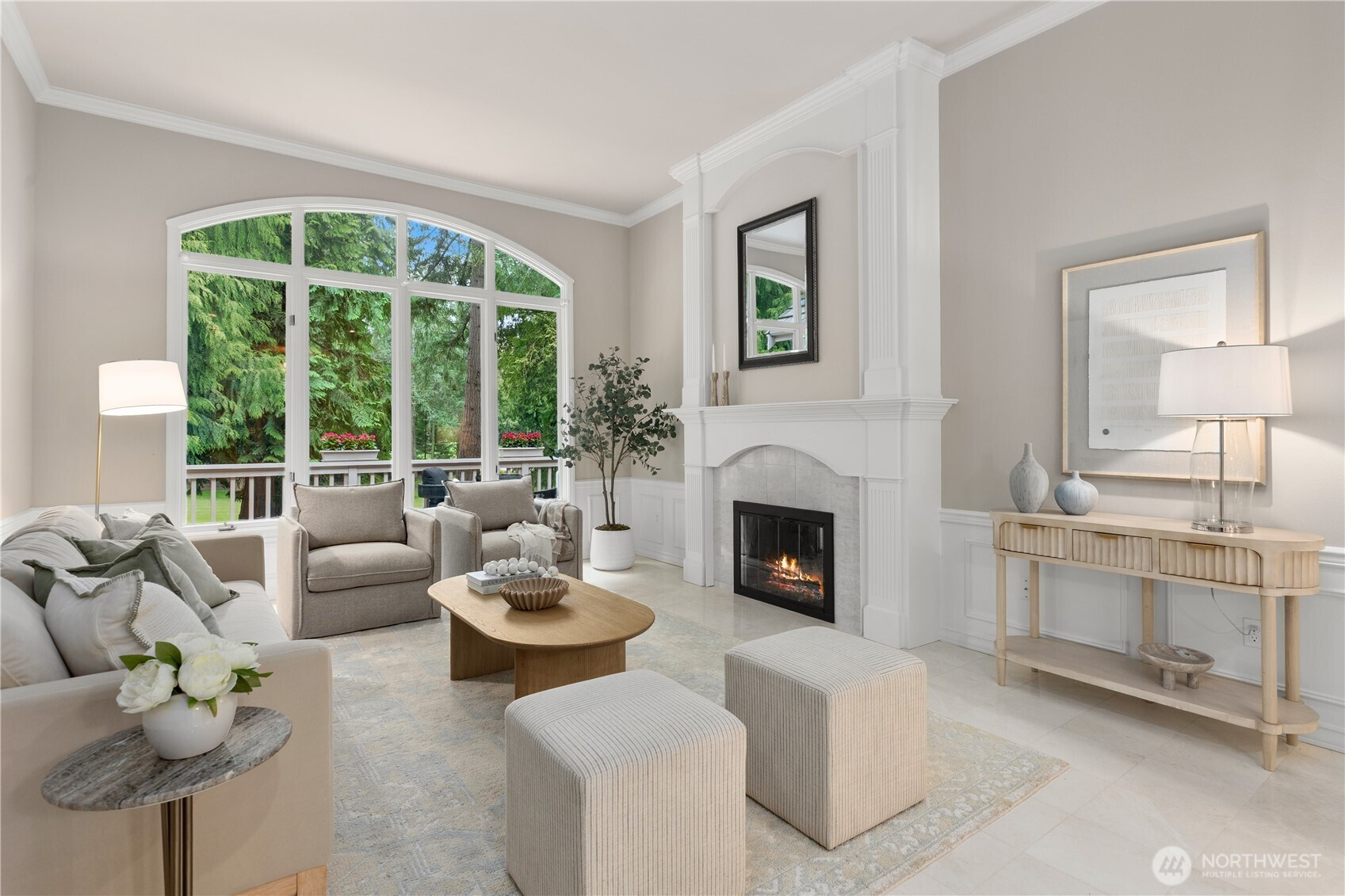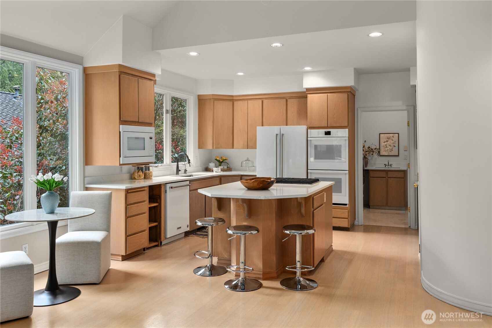 (650)533-3259A pristine, beautifully updated single-story, three-bedroom home situated at the end of a cul-de-sac in Sahalee. Meticulously maintained, this elegant home offers one-level living and features soaring ceilings & expansive living areas bathed in natural light with golf course views. Step into a striking marble-clad entry, leading to the formal living and dining rooms, both with radiant heated marble floors and walls of windows. A dramatic double-sided fireplace anchors the living room to the bright open-concept family room & kitchen - the heart of the home- featuring rift-cut oak hardwoods, vaulted ceilings, center island, quartz countertops & a brand new gas cooktop, double ovens & microwave. French doors open from the family room onto a new composite deck & manicured garden on the 2nd fairway of the East Course. Private and tranquil, perfect for both relaxation & entertaining. The oversized primary suite offers a fully remodeled 5-piece bathroom with soaking tub, radiant heated marble floors and two walk-in closets. French doors open onto the deck, the perfect spot to enjoy a quiet morning coffee. This home features an oversized double garage, central A/C, crawlspace w/purifier, attic platform storage & freshly painted interiors. Sahalee is a 24-hour guard-gated golf community with a 27-hole championship course, set within one of WA’s most desirable suburbs. Top-rated LWSD schools, easy access to highways, Redmond Light Rail, Bellevue & Seattle. Refined living. Welcome home.
