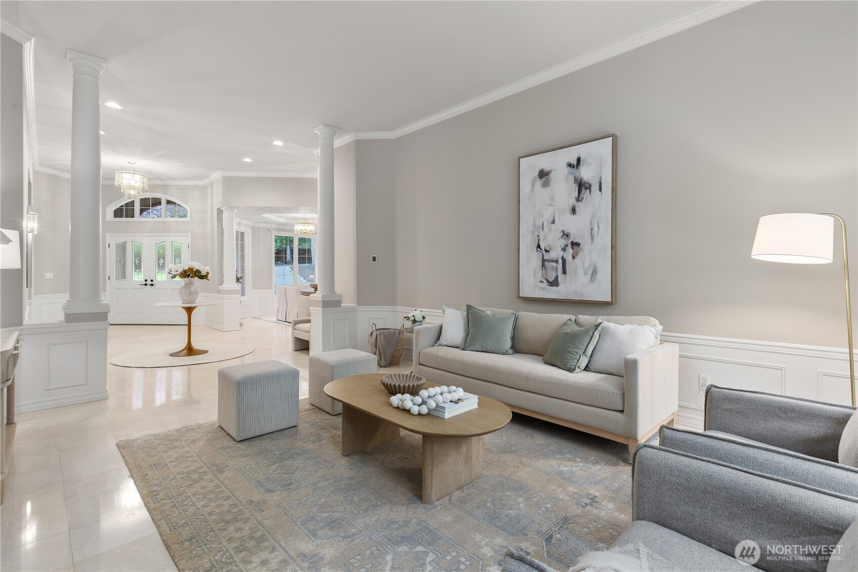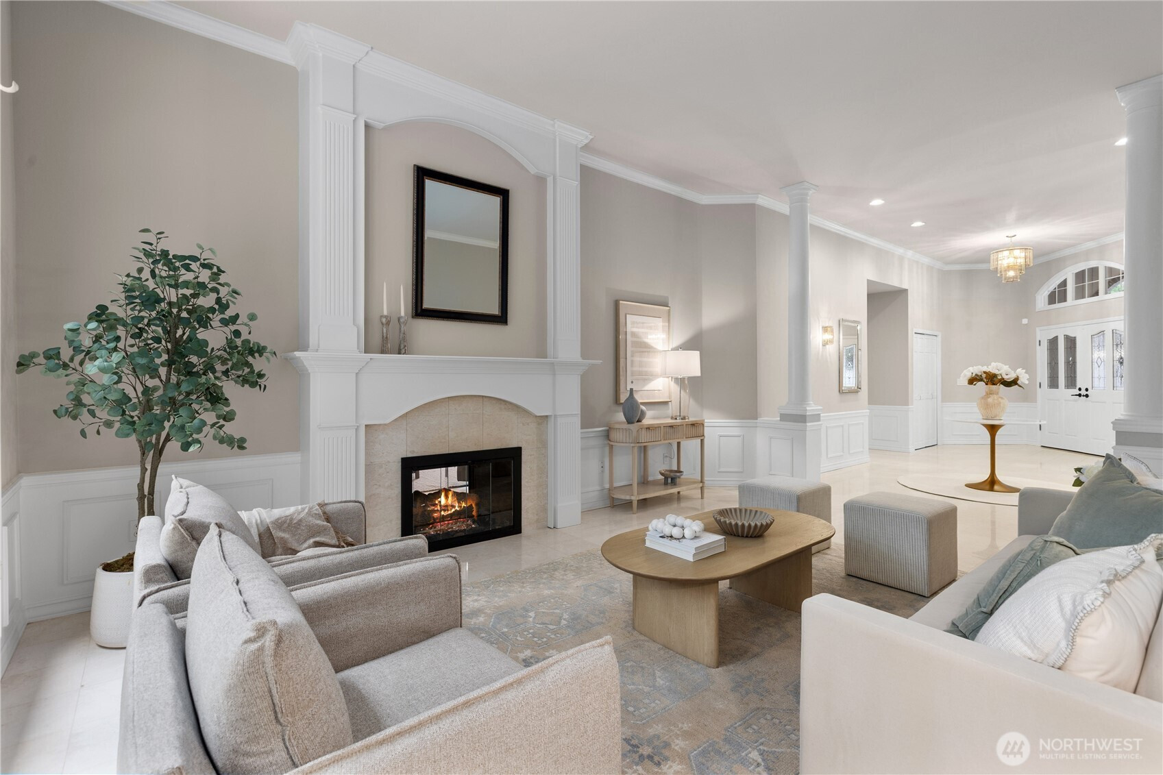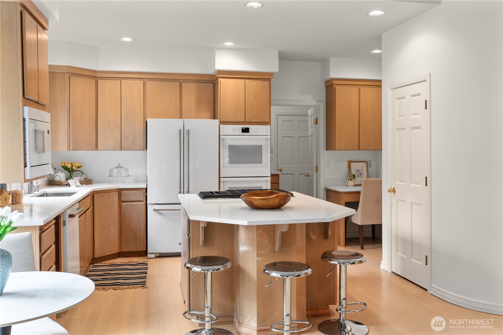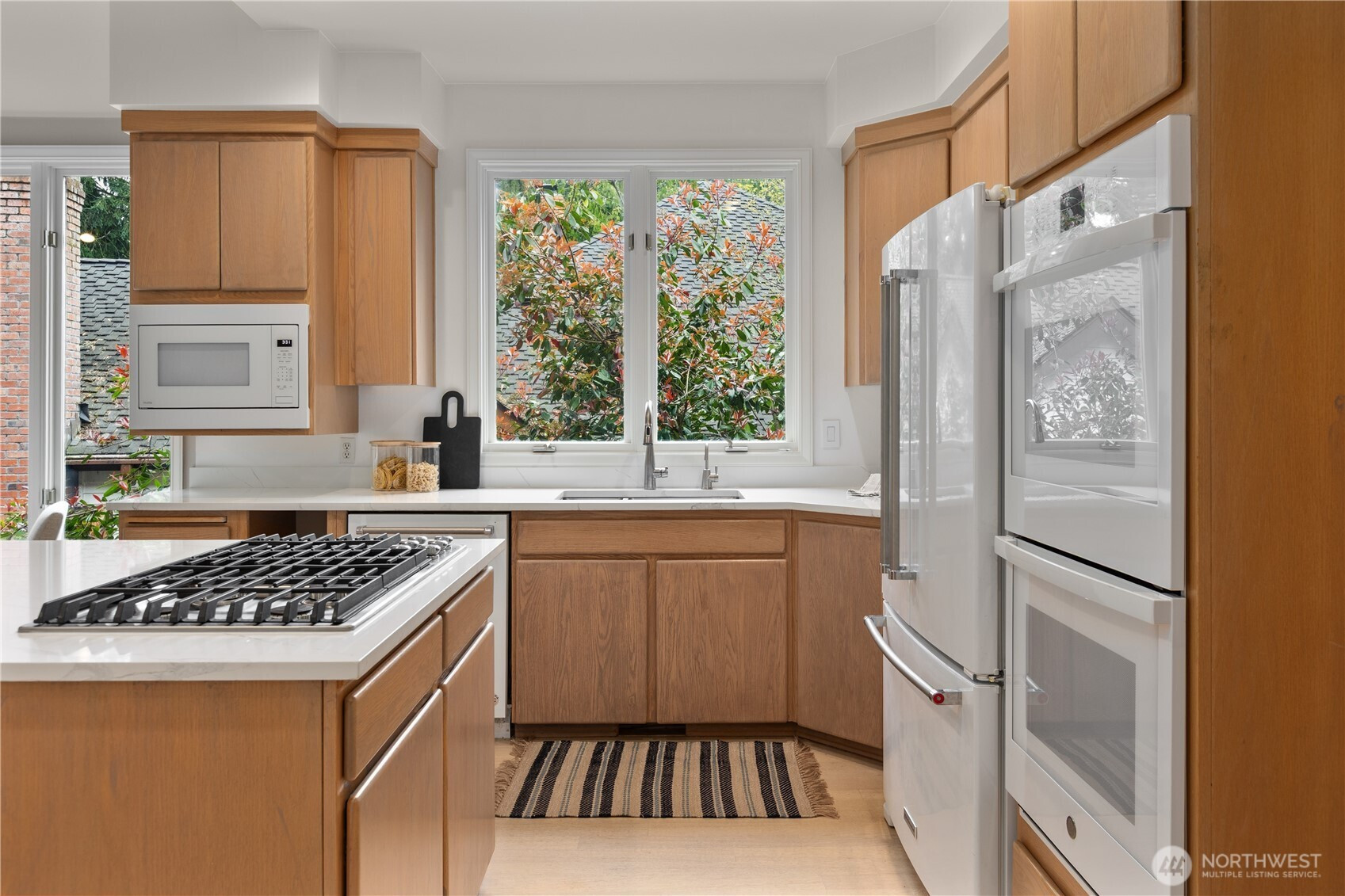 (650)533-3259A pristine, beautifully updated single-story, three-bedroom home situated at the end of a cul-de-sac in Sahalee. Meticulously maintained, this elegant home offers one-level living and features soaring ceilings & expansive living areas bathed in natural light with golf course views. Step into a striking marble-clad entry, leading to the formal living and dining rooms, both with radiant heated marble floors and walls of windows. A dramatic double-sided fireplace anchors the living room to the bright open-concept family room & kitchen - the heart of the home- featuring rift-cut oak hardwoods, vaulted ceilings, center island, quartz countertops & a brand new gas cooktop, double ovens & microwave. French doors open from the family room onto a new composite deck & manicured garden on the 2nd fairway of the East Course. Private and tranquil, perfect for both relaxation & entertaining. The oversized primary suite offers a fully remodeled 5-piece bathroom with soaking tub, radiant heated marble floors and two walk-in closets. French doors open onto the deck, the perfect spot to enjoy a quiet morning coffee. This home features an oversized double garage, central A/C, crawlspace w/purifier, attic platform storage & freshly painted interiors. Sahalee is a 24-hour guard-gated golf community with a 27-hole championship course, set within one of WA’s most desirable suburbs. Top-rated LWSD schools, easy access to highways, Redmond Light Rail, Bellevue & Seattle. Refined living. Welcome home.