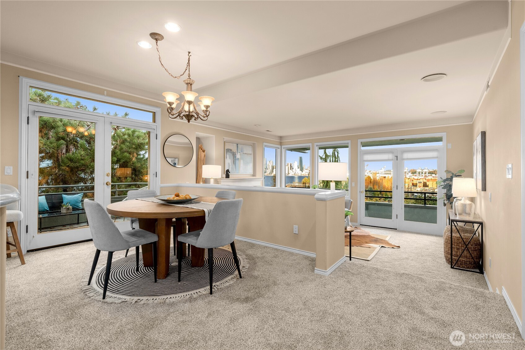 (650)533-3259Welcome to City Lights! Stunning end-unit 2 bed + office / 2 bath condo with panoramic views of the Seattle skyline, Elliott Bay & Cascades. Spacious open layout with tall ceilings, gas fireplace & wall of windows. Two large view decks—one off the living room & primary suite, plus a 2nd deck with gas BBQ hookup off the dining room. Primary features ensuite with jetted tub & walk-in closet; 2nd bedroom includes Murphy bed and double closet. Several updated appliances, tankless water heater & hydronic furnace, new flooring & in-unit laundry. Includes 1-car garage + 2nd parking space, ample storage, & no stairs for access. This well-run, private, gated-community is close to Alki Beach & WS Bridge restaurants, trails, commuting, & Water Taxi.
