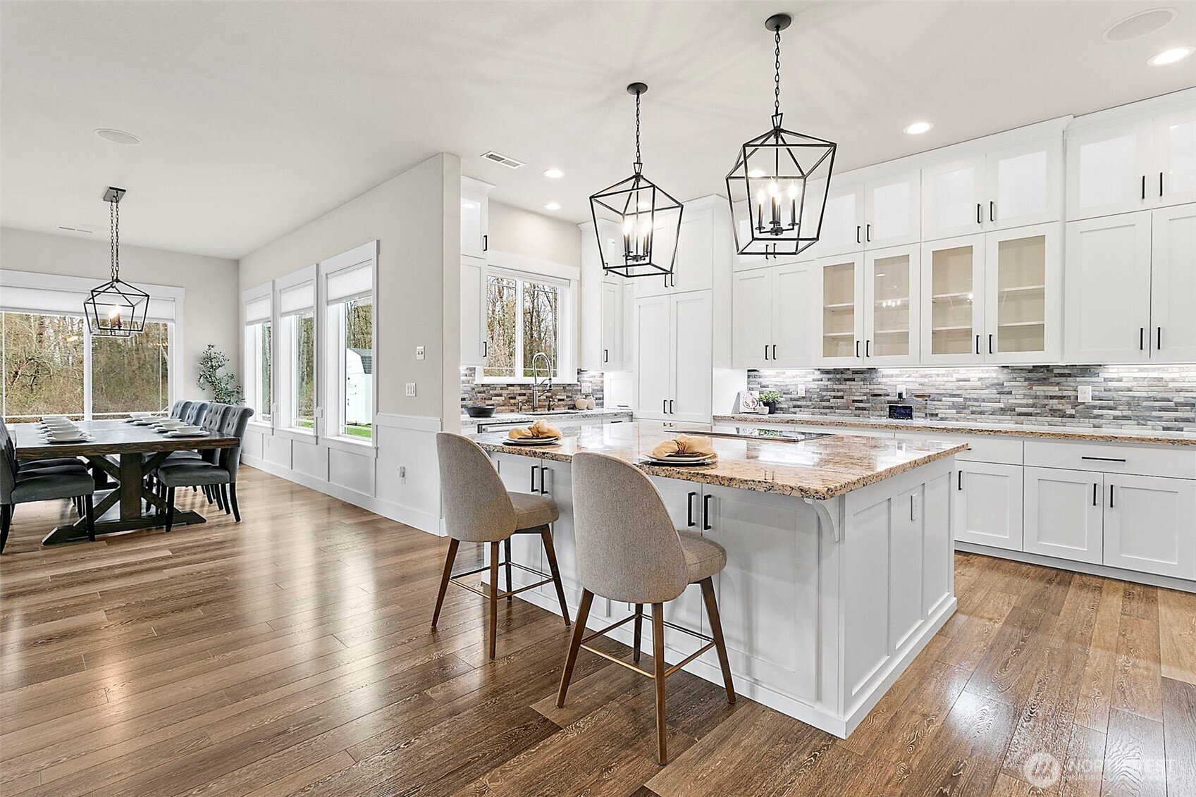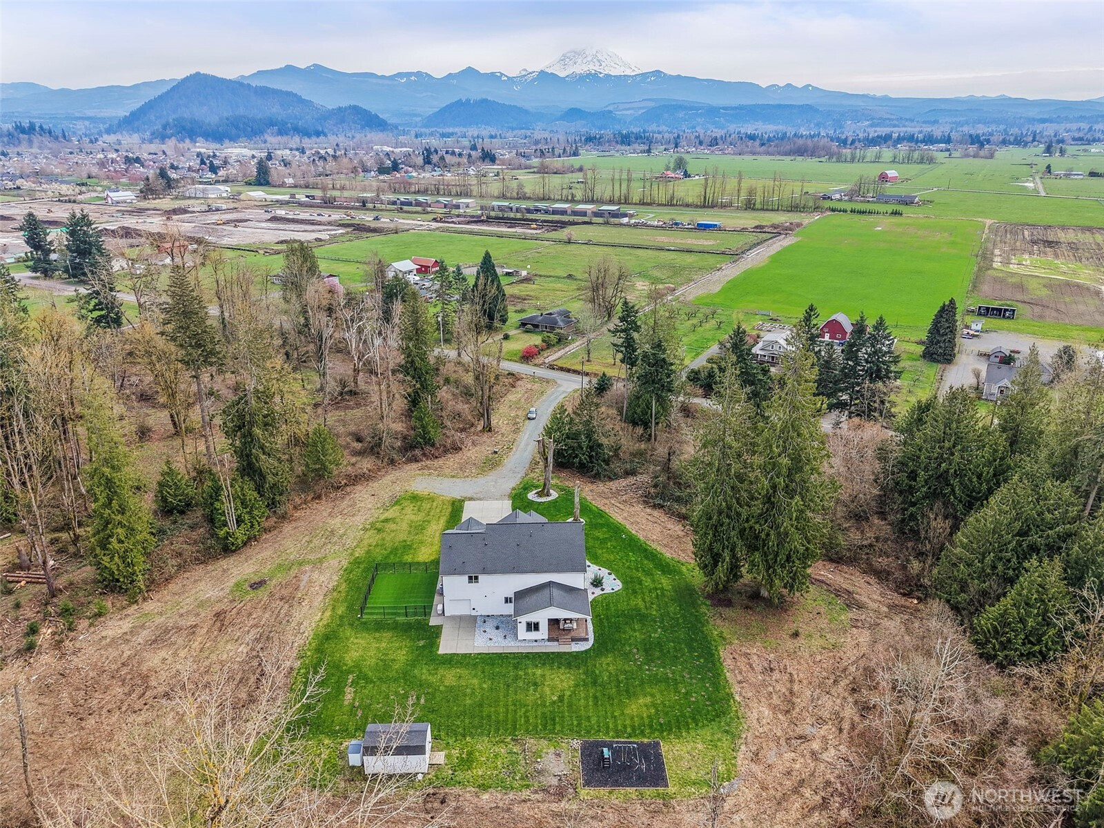 (650)533-3259Custom built in 2019, 3,820SF, 4-bed, 2.5 bath home, on a serene forested 19.55 AC parcel w/ Mt. Rainier views! Perfectly appointed kitchen w/ granite counters, large island, double ovens, 64" fridge/freezer combo, tons of custom cabinet storage, massive walk-in pantry & adjacent dining area big enough for 12-person seating (table & 10 chairs included). Open concept living room w/ gas fireplace insert, live edge mantle, stone surround & wall of built-ins. Huge primary bed w/ luxurious private bath that features, 3 vanities, tile floors, 2-head + rain head tile shower, free standing soaking tub, 140+SF walk in closet & walk in linen closet. Laundry room w/ cabinet storage, granite counter, mud sink + additional linen/storage. 10' ceilings on the main w/ 9'/vaulted ceilings up. 21' x 19' bonus room up w/ closet storage. Whole home water filtration system, built in vac system, tankless gas HW, & built-in speakers w/volume controls. Beautiful entry w/stamped concrete covered patio & ornate metal entry doors + a huge, floor height, stamped concrete covered back patio w/ infrared heaters. Natural gas powered 16KW Generac, whole house, generator system. Turf dog run + stainless steel dog wash in the attached 4-car garage w/ drive thru bay. Grow ready raised garden beds w/nearby garden shed & playset. Property is in the City of Enumclaw Urban Reserve designation for future development potential. Country living at its finest just minutes from downtown. Truly a must-see home!