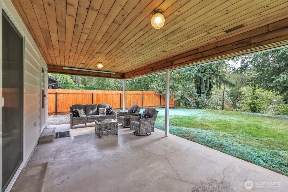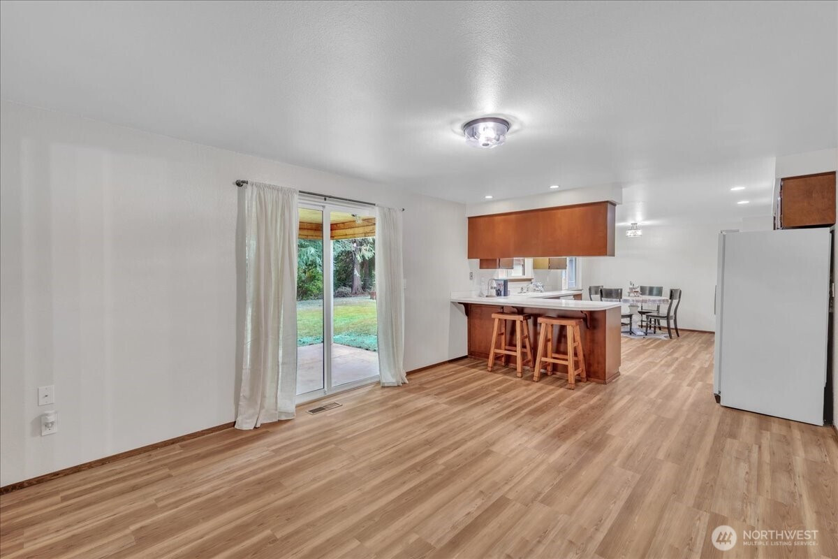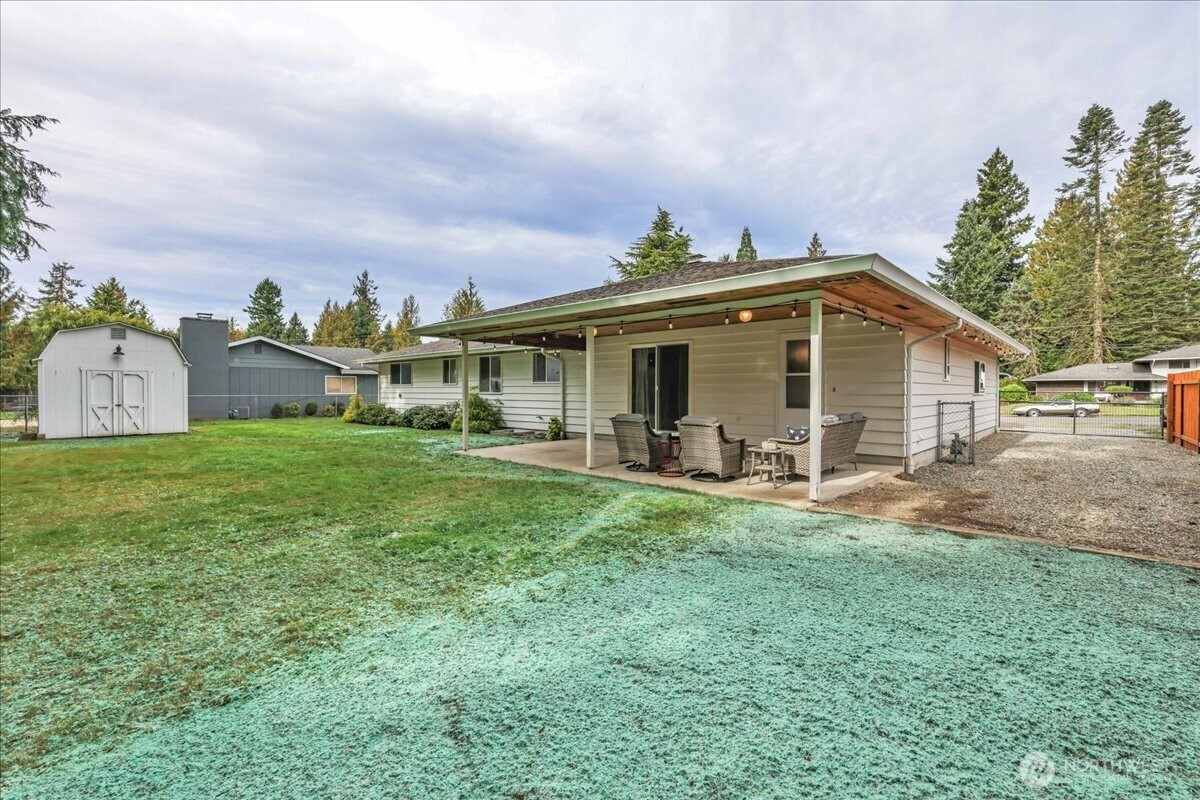 (650)533-3259Superbly maintained 1,650 SF, 3-bedroom, 1.75-bath Glacier Vista rambler situated on a 14,400 SF lot backing to the White River corridor for added privacy. Spacious living room w/ brick fireplace & hardwood entry. Kitchen w/ abundant cabinet space, bar seating, luxury vinyl plank floors, eating area, & forest views. Sliding glass door leads to lgcovered back patio & maturely landscaped backyard. Full bath w/ oversized vanity. Laundry rm w/ adjacent 3/4 bath. Updated vinyl windows throughout. Architectural composition roof, forced-air gas furnace, front sprinkler system, & newer water heater. Detached garden shed w/ concrete floor for extra storage. Oversized 2-car garage. All in a desirable neighborhood near amenities & outdoor recreation.