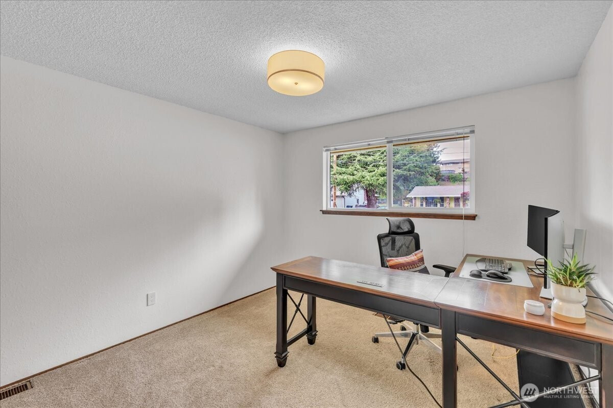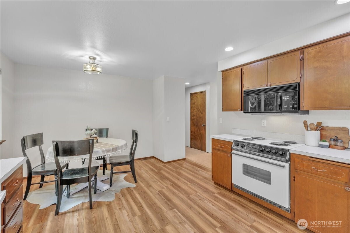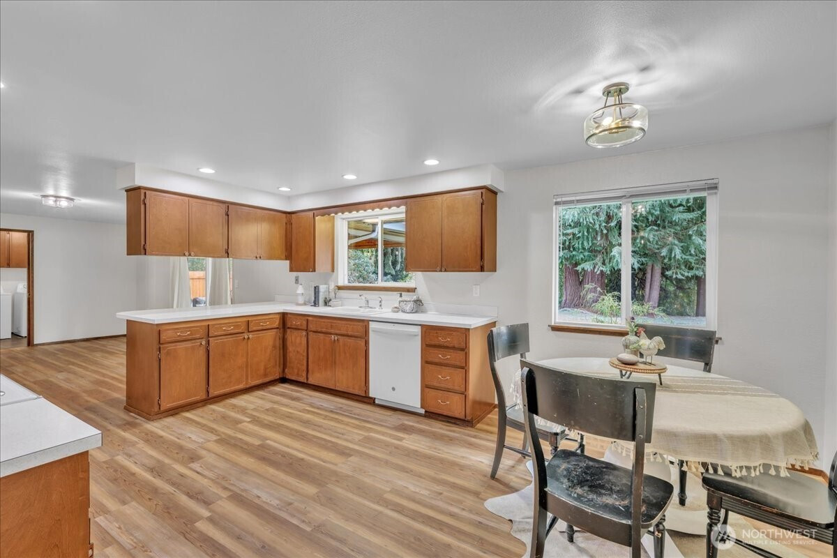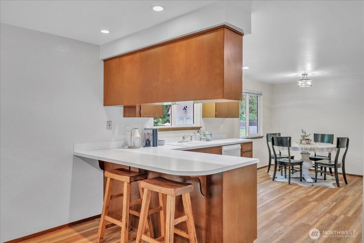 (650)533-3259Superbly maintained 1,650 SF, 3-bedroom, 1.75-bath Glacier Vista rambler situated on a 14,400 SF lot backing to the White River corridor for added privacy. Spacious living room w/ brick fireplace & hardwood entry. Kitchen w/ abundant cabinet space, bar seating, luxury vinyl plank floors, eating area, & forest views. Sliding glass door leads to lgcovered back patio & maturely landscaped backyard. Full bath w/ oversized vanity. Laundry rm w/ adjacent 3/4 bath. Updated vinyl windows throughout. Architectural composition roof, forced-air gas furnace, front sprinkler system, & newer water heater. Detached garden shed w/ concrete floor for extra storage. Oversized 2-car garage. All in a desirable neighborhood near amenities & outdoor recreation.