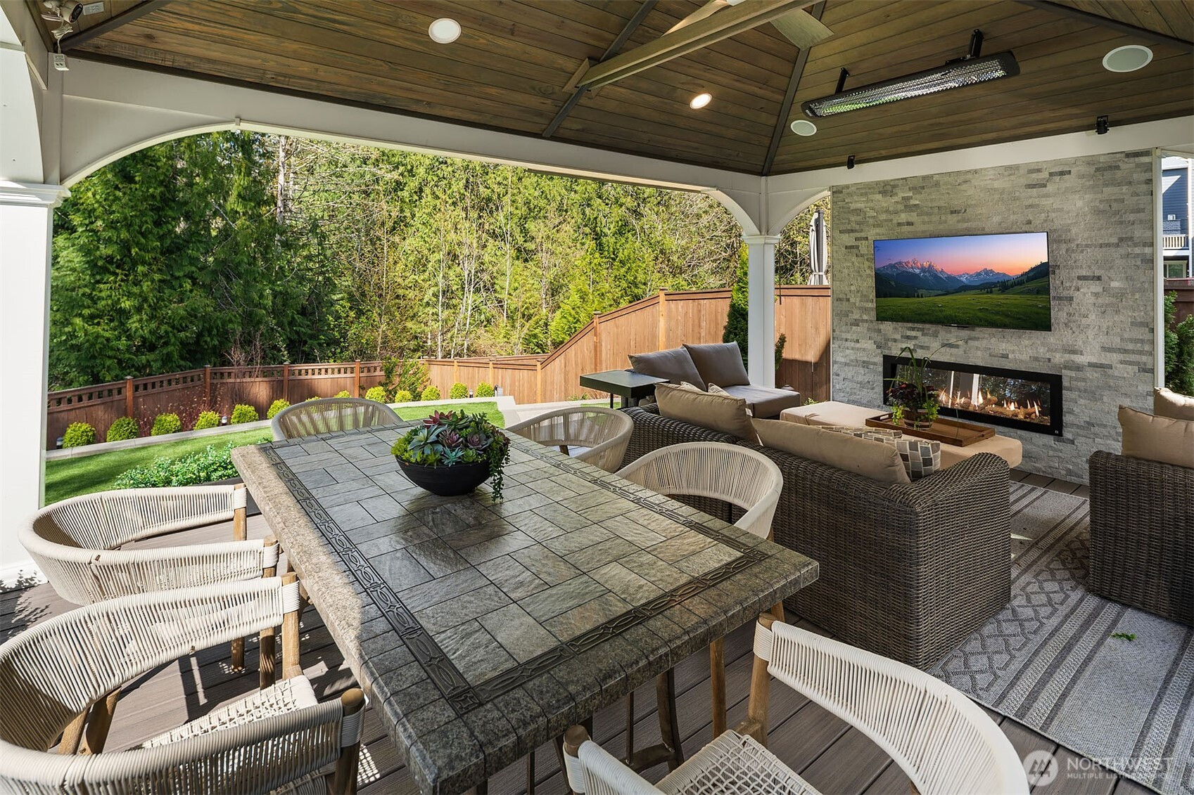 (650)533-3259Welcome to an exceptional Canterbury Park resale in Sammamish, this residence offers a two-story layout with a finished basement, situated on a private end corner lot. The chef’s kitchen features a large island, SS appliances & direct access to the deck with two heaters and spiral stairs to the backyard. Upstairs, there are four bedrooms, a den, utility room and a flex area. The primary suite faces to a green belt, spacious with luxurious primary bathroom a soaking tub, double vanities & a walk-in closet. The lower level includes a private suite with its own living area, recreation room, and a 3/4 bath, as well as access to a beautifully landscaped yard, showcasing over $200K in improvements. A fully permitted outdoor kitchen a gas barbeque, granite countertops, sink, and plenty of cabinetry. The covered gazebo is equipped with two wall-mounted electric heaters, smart lighting, integrated speakers, TV mount, and a electric fireplace. Additional features include EV charging, Overhang storage in the garage, AC, custom blinds, artificial turf, a generator hookup and a sprinklers system. The community provides parks and trails, located min. from shopping center belongs to LWSD.