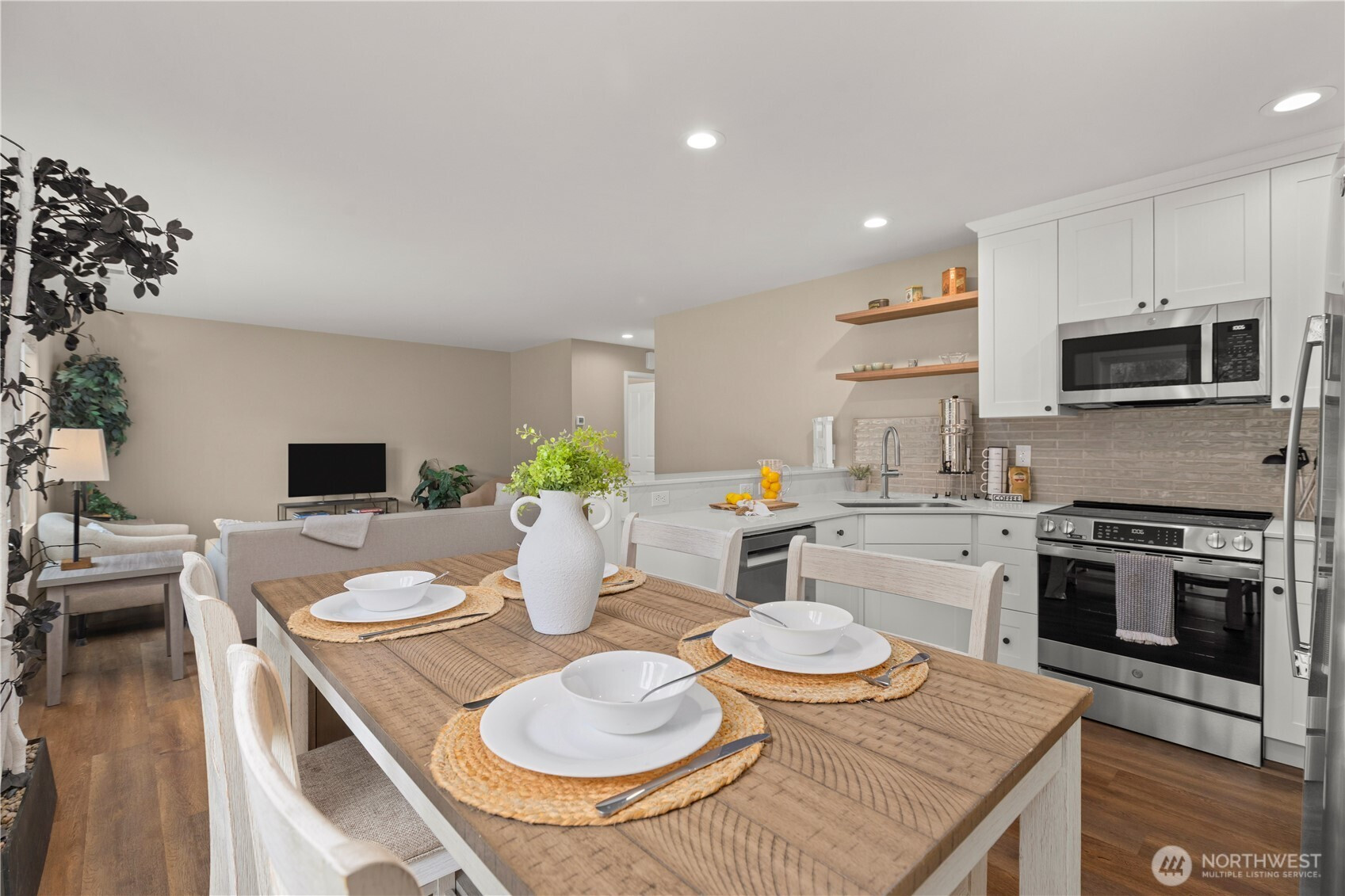 (650)533-3259Welcome to this beautifully updated home in the quiet and desirable Woodridge neighborhood of Maple Valley. This well-maintained property truly checks all the boxes, starting with its spectacular curb appeal and meticulously manicured yard. Inside, you’ll find a remodeled kitchen with new appliances, fresh interior paint, new engineered hardwood flooring, and newer carpet—making this home truly move-in ready. The bright and functional layout is enhanced by vaulted ceilings, creating an open feel with abundant natural light throughout. The primary bedroom features a beautiful view of Mt. Rainier, adding a special touch to everyday living. Step outside to a generously sized backyard, perfect for relaxing or entertaining. Let's not forget to mention the amazing epoxy garage floor that shows the care this property has received! Located on a peaceful street with convenient access to schools, shopping, restaurants, trails, and more, this home offers the perfect balance of comfort and convenience. A true must-see in like-new condition!