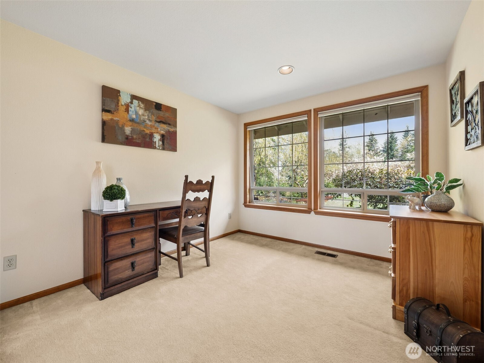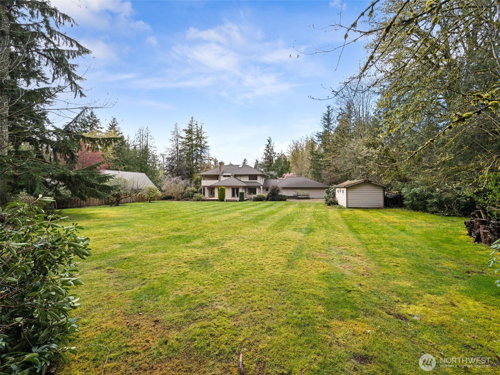 (650)533-3259Spacious 3 Bedroom + Den & 3.5 Bath home on an acre of land in the desirable Highlands of Cedar River. Undeveloped tract behind home provides privacy. CCRs but no HOA! Newer appliances in kitchen and an expanded family room with brick fireplace. Hardwood floors including stairway and 2nd story hallway. 3 full baths & 1/2 bath off laundry room. Brick & cedar siding. Large primary suite with sitting room, ceiling fan, jetted tub, coffee nook with sink & privacy deck. Air conditioned! Formal living room and dining room. 3 car garage & backyard tool shed. Refrigerator, washer & dryer included. Septic is approved for 4 bedrooms so main floor den could be used as extra bedroom. Established neighborhood in Tahoma School District with estate sized lots.