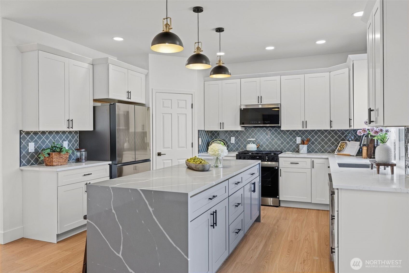 (650)533-3259Welcome to this better-than-new, fully remodeled home on corner lot where modern upgrades meet thoughtful design and everyday comfort. This stunning home has been completely refreshed inside out, featuring a brand-new roof, fresh interior and exterior paint & beautifully updated front & backyard landscaping. Step outside to a spacious backyard, perfect for entertaining or play, complete with a large covered concrete area—ideal for year-round gatherings or even a private basketball setup. Inside, the heart of the home is the gourmet kitchen, showcasing brand-new cabinetry, sleek quartz countertops, a generous island, designer glass tile backsplash & all-new stainless steel appliances. The main level is enhanced with new laminate flooring throughout, including the stairs and primary bedroom, along with a stylish new electric fireplace and all-new modern lighting fixtures. Every bathroom has been tastefully updated with new tile flooring, quartz countertops, and contemporary cabinetry, offering a clean and luxurious feel throughout. The home offers a fantastic layout with formal living and dining areas, plus a welcoming family room. A spacious laundry room and convenient powder room are located on the main floor for added functionality. Upstairs, you’ll find three generously sized bedrooms, a versatile bonus room, and an expansive primary suite featuring a spa-inspired 5-pc bath & a large walk-in closet. Top rated Kent Schools. Don't miss this unique home and see it today!!
