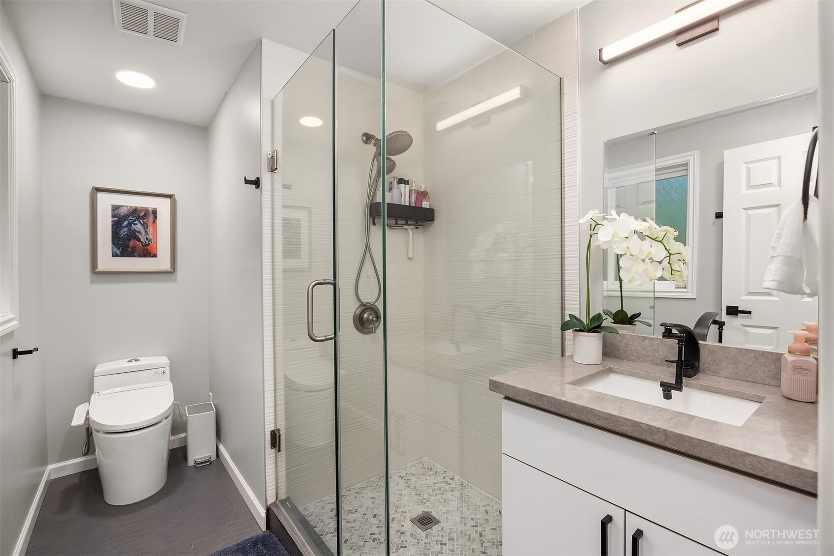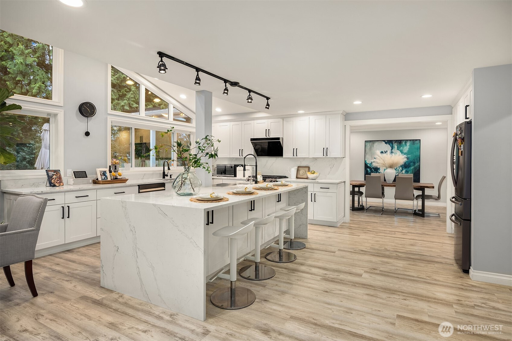 (650)533-3259Welcome to this beautifully renovated 4-bedroom, 3-bath home in the heart of Medina, where location and lifestyle come together. Just minutes from Medina Park, Overlake Golf & Country Club, Bellevue shopping and dining, and the 520 commute, this home offers unbeatable convenience. Thoughtfully updated with newer flooring throughout, the home features a bright and open layout. The kitchen and family room boast vaulted ceilings, skylights, and an airy open-concept design, creating a welcoming space filled with natural light. The gourmet kitchen showcases premium cabinetry, quartz countertops, stainless steel appliances, and a large island that provides abundant prep space and storage. A main-level office or flex room adds versatility for work or hobbies. Upstairs offers four generously sized bedrooms with great privacy and natural light, plus a bonus room perfect for a gym or media room. Two bedrooms with ensuits, and the luxuriously renovated primary bath features floor-to-ceiling tile and a spa-like feel. Enjoy the expansive, level backyard with mature landscaping and a new entertainment deck—perfect for relaxing or hosting. Top rated Bellevue schools. Exceptional value in Medina.
