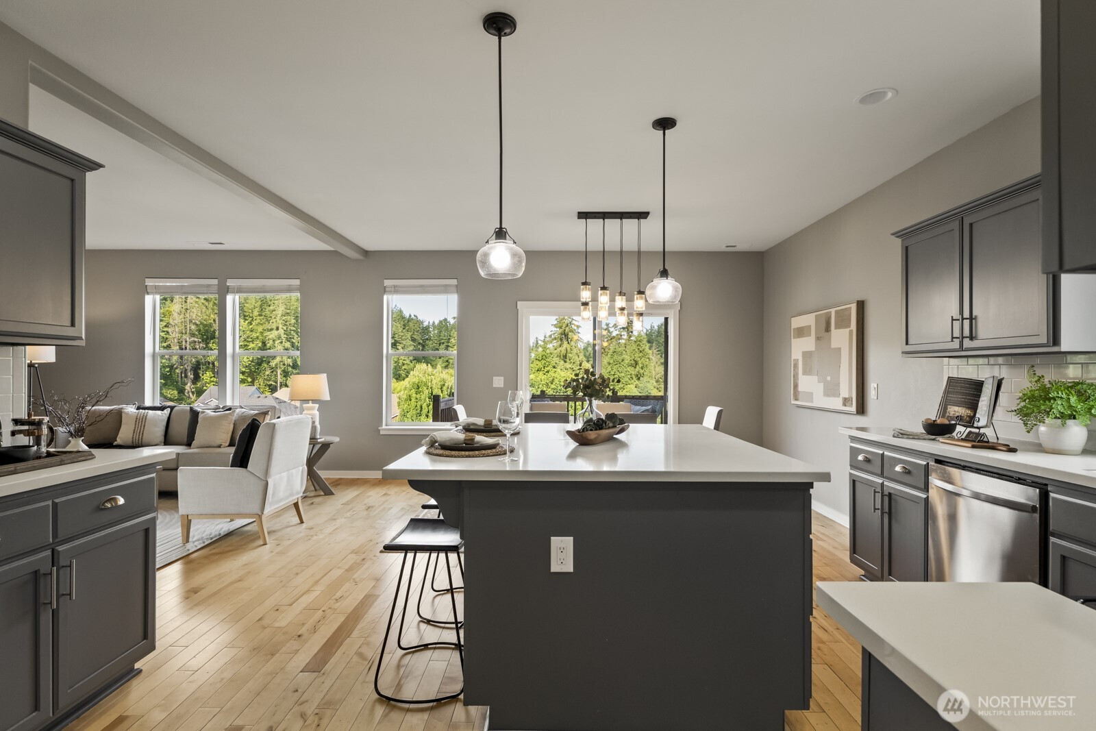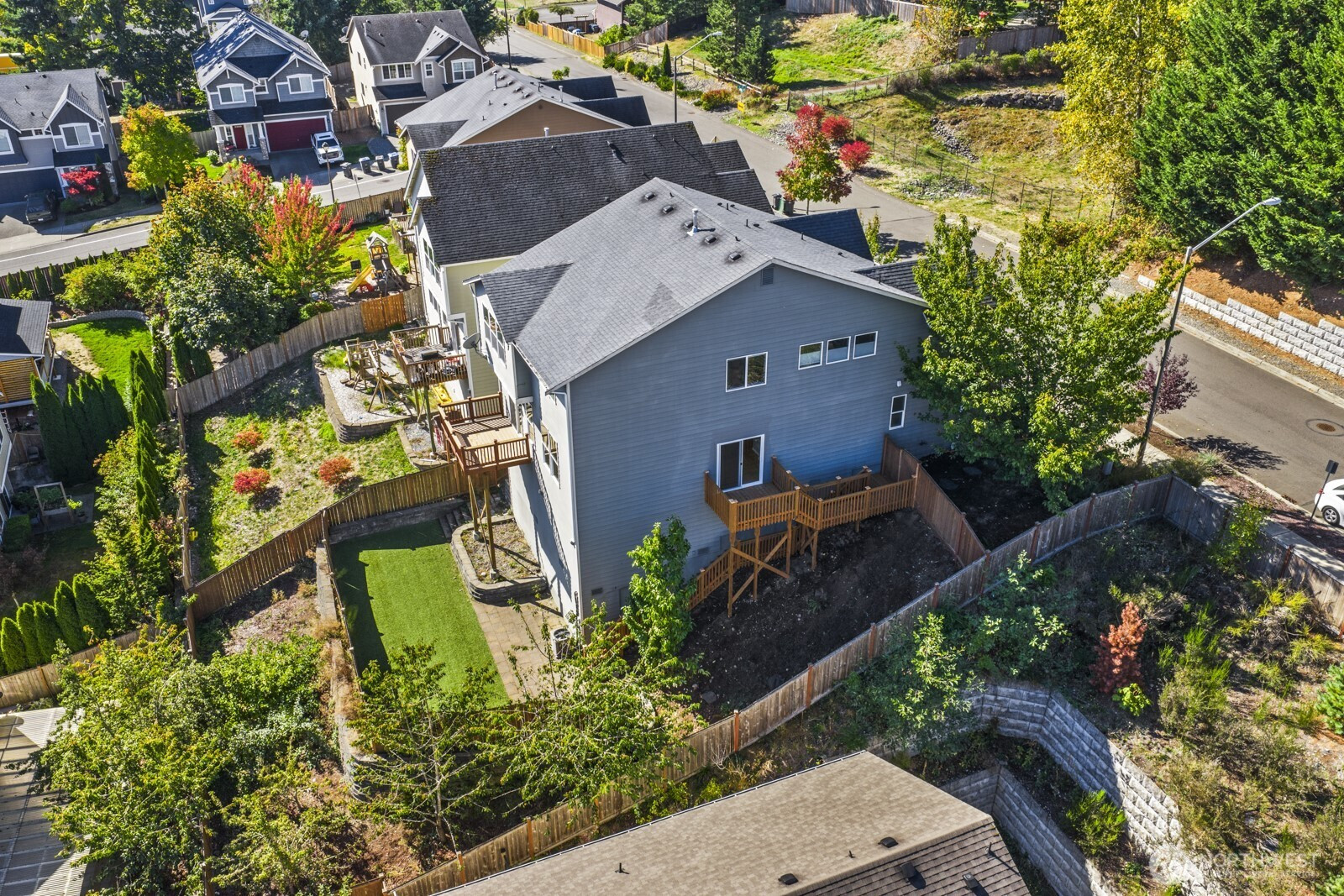 (650)533-3259Welcome to your secluded Maple Valley retreat! Enjoy an enviable, newly added deck with true tree-house seclusion & stunning privacy—your view is to the treetops, not to the neighbor's living room. Spacious great room w/ high-end finishes. Gourmet Kitchen boasts quartz, subway tile, stainless appliances, walk-in pantry, & mudroom w/ built-ins. Baths feature sleek tile & quartz. Luxurious Primary Suite w/ step-in shower (dual heads), custom closet built-ins, & laundry chute. Enjoy morning sun in the primary facing east! Deck opens to a fully fenced turf backyard for low-maintenance entertaining. Don't miss the charming wild fruit orchard just beyond the fence! ***Photos virtually staged.