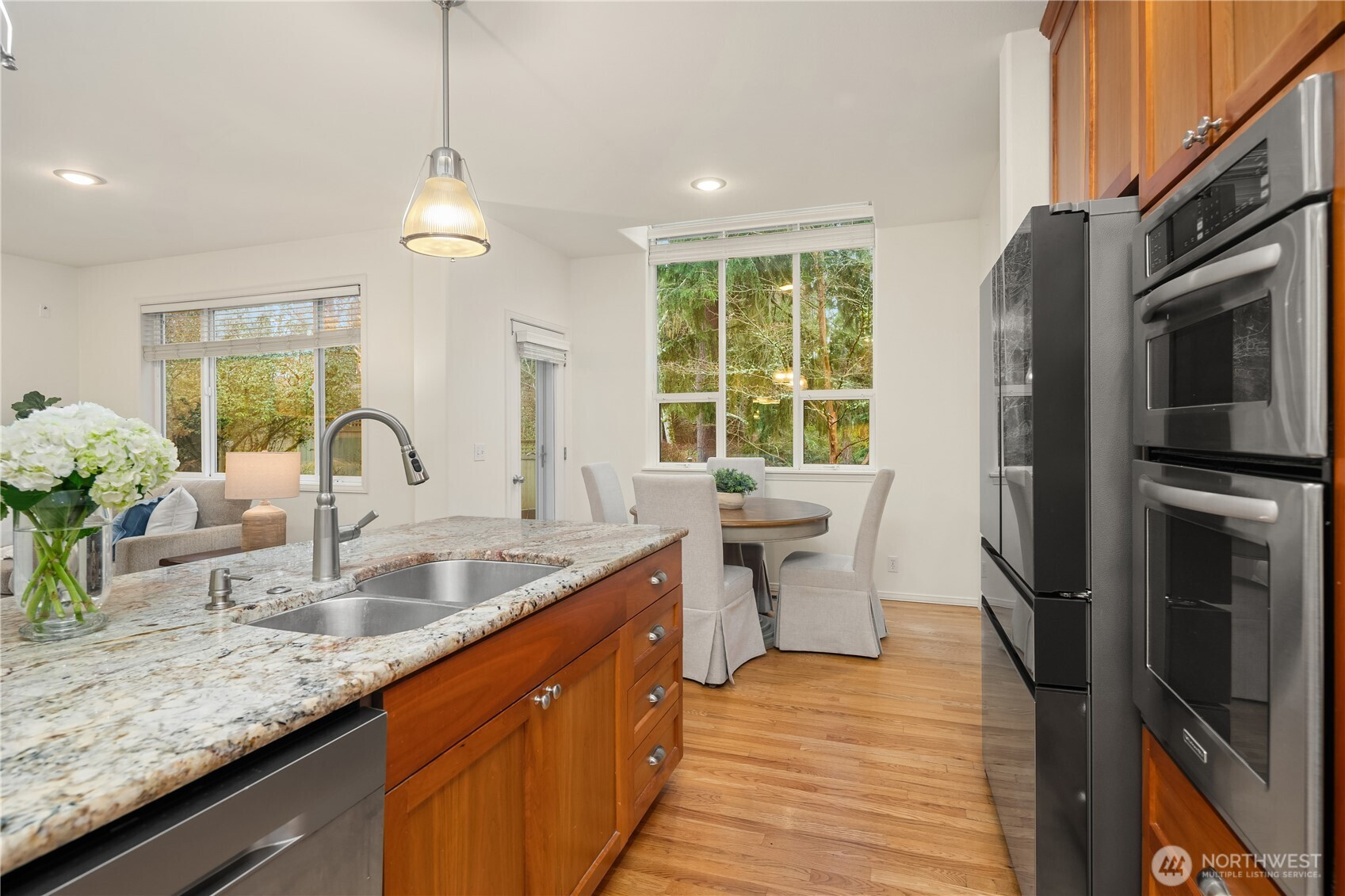 (650)533-3259Set in Audubon Park and backing to a peaceful greenbelt, this 4 bedroom Sammamish home offers a private setting surrounded by natural beauty. Light filled interiors and a thoughtful layout create inviting spaces for both daily living and entertaining. The spacious great room is anchored by an open kitchen with generous counter space and storage, flowing seamlessly into the dining and living areas while large windows bring in abundant natural light and highlight the serene greenbelt backdrop. A main floor office provides an ideal work from home space or quiet retreat and opens to a small private patio, perfect for stepping outside for fresh air during the day. Upstairs you will find four spacious bedrooms, including the primary suite featuring a spa inspired bath and walk in closet. The additional bedrooms offer flexibility for guests, hobbies, or study space. Step outside to enjoy the private patio and peaceful setting backing to the greenbelt, ideal for outdoor dining, relaxing, or gathering with friends and neighbors. Located within the Discovery Elementary boundary in the Issaquah School District and just a short walk to shopping, restaurants, and Pine Lake Park, this home offers a rare combination of privacy, natural surroundings, and everyday convenience in the heart of Sammamish.