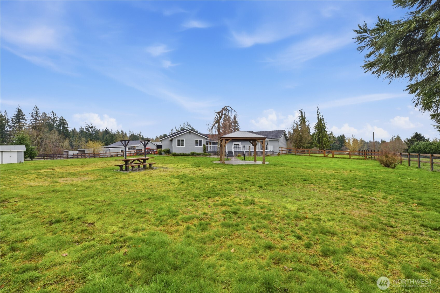 (650)533-3259This one truly stands out—an exceptional fully set up horse property built for both personal use & equestrian income potential. Behind the gates you’ll find 8.9 acres thoughtfully designed with 8 separate pastures, each w/water & hot wire, plus 3 paddocks for added flexibility. The arena w/Nike footing, private pond, gazebo make this property as functional as it is beautiful. RV parking & generator wiring for both the home (50 AMP) & barn (30 AMP) add even more convenience. The barn & shop are fully equipped w/everything you need: tack room, 6 stalls including 2 birthing stalls, rubber matting throughout, insulated roof, wash rack w/hot & cold water, fans, pressure washer, washer & dryer, refrigerator, plus new roof & paint. Stall mats & troughs are included, making this a true turnkey setup. Inside, the rambler offers a well designed layout w/an office off the entry, formal living & dining spaces, coffee area & a garden window. The kitchen features a granite backsplash, double ovens & a downdraft cooktop, opening to a large trex deck great for entertaining. A rec room w/an electric built-in fireplace & French doors adds extra space. The primary suite includes dual vanities, 2 closets, a tile shower & heated floors, while a junior suite offers flexibility for multi-gen living. Addit'l highlights~ water filtration system, heat pump, skylights, engineered hardwood, tile floors & a laundry room off the garage w/a .5 bath. Rare opportunity to own a fully dialed in horse property!
