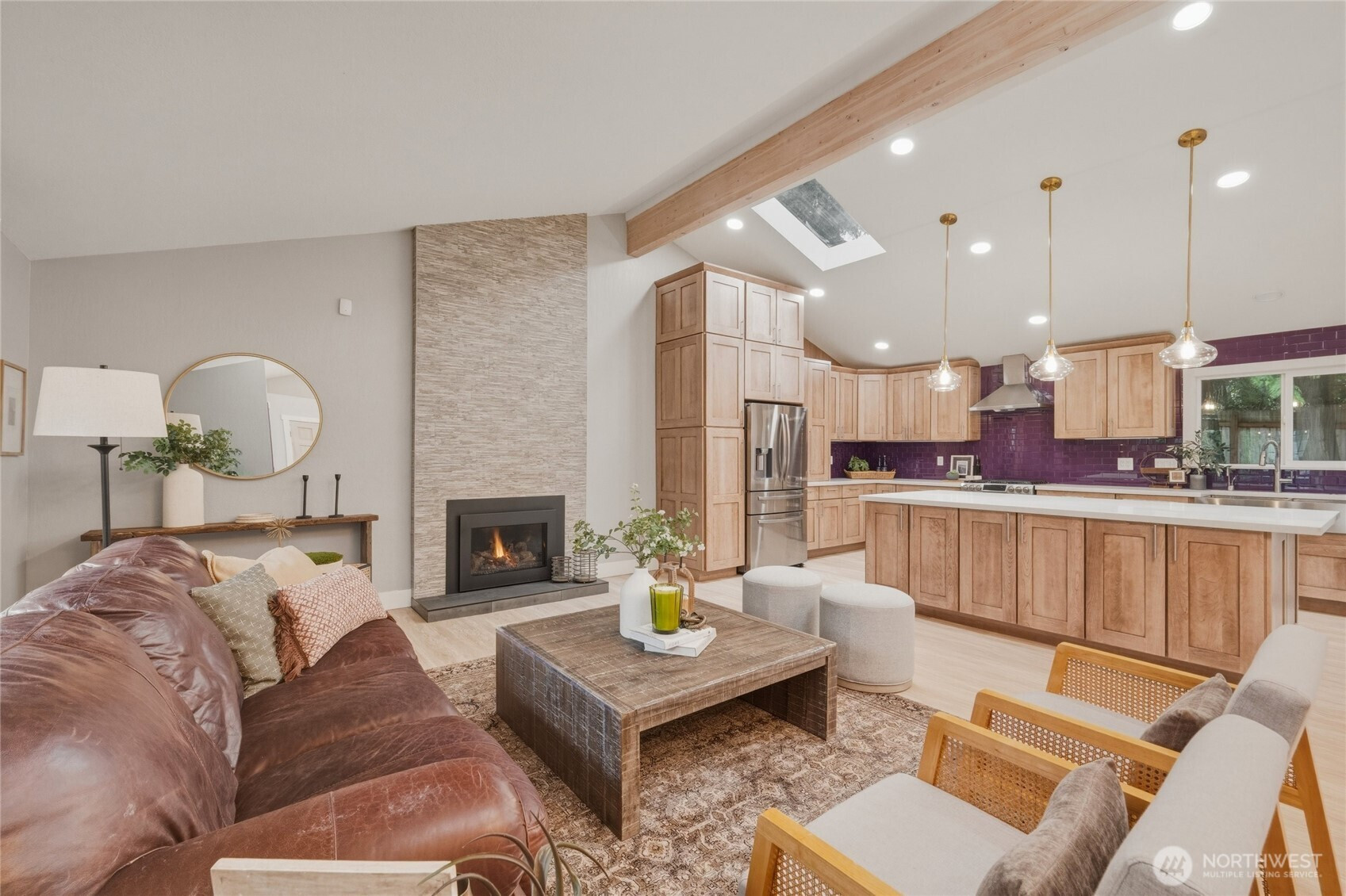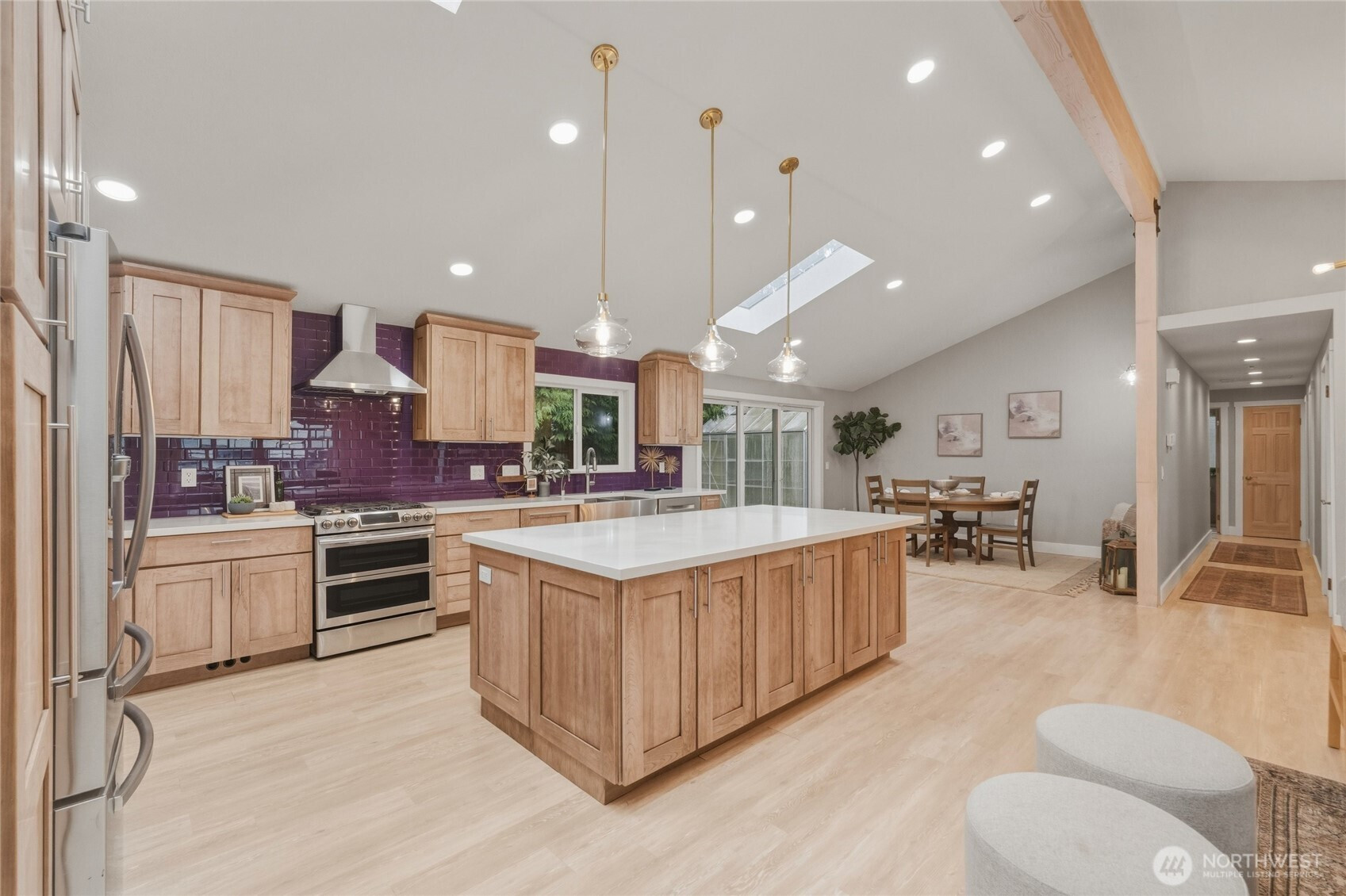 (650)533-3259Prime Redmond location near Microsoft, just minutes to Downtown Redmond light rail (Link 2 Line) with easy connections across the Eastside and Seattle. Convenient to I-405 and SR-520, with Viewpoint and Idylwood Parks nearby. Situated on a nearly 10,000 sq ft corner lot in a cul-de-sac, the home offers privacy and a welcoming presence. The living room, dining area, and gourmet kitchen connect seamlessly in an open Great Room layout, anchored by a fireplace and front-facing windows that fill the space with natural light. Skylights and vaulted ceilings enhance the sense of openness, while travertine and vinyl plank flooring add both texture and durability throughout. The kitchen features stainless steel appliances, a deep split sink, a large island, a built-in wine fridge, and abundant cabinetry for organized storage. A separate dining area opens through a 3-panel slider to the serene, fully fenced backyard, creating effortless indoor-outdoor living. The primary bedroom features an ensuite ¾ bath. Two additional bedrooms, a full bath, a laundry room, a tankless water heater, an efficient heat pump for heating and cooling, and a 2-car garage complete this thoughtfully designed home located in the award-winning Lake Washington School District.