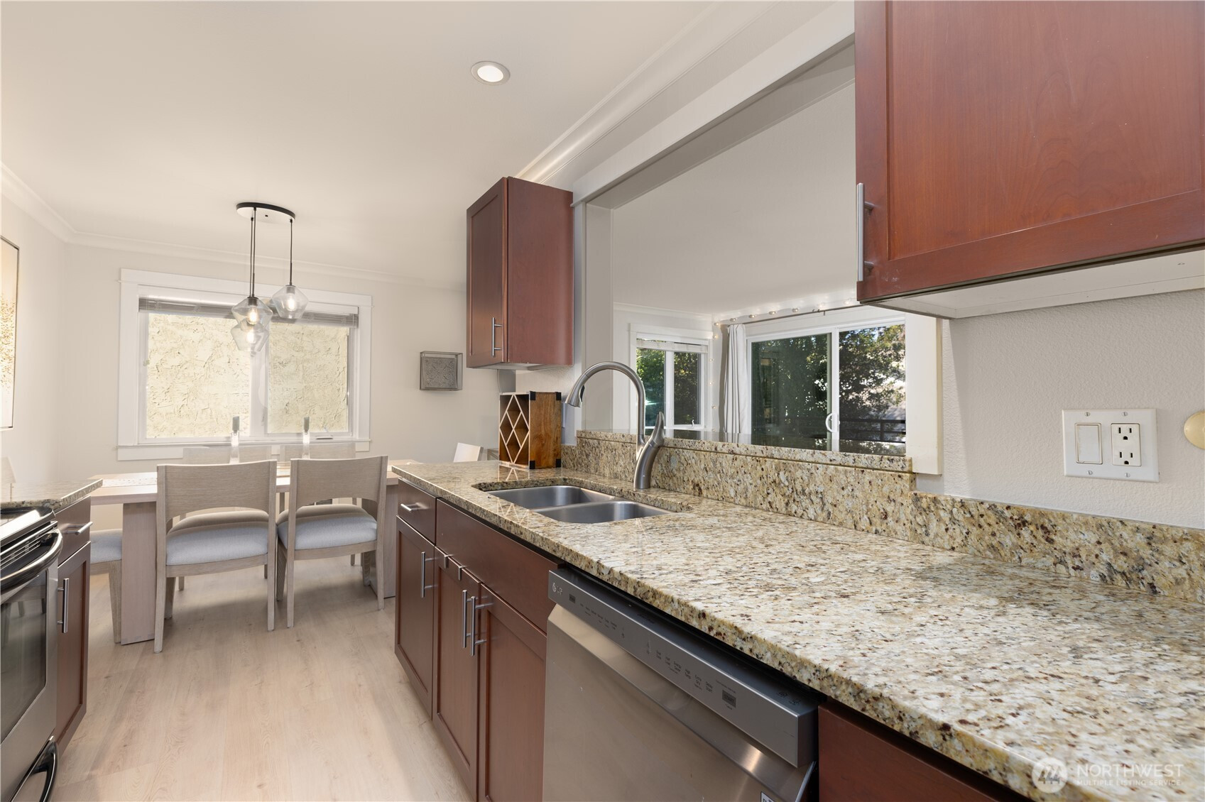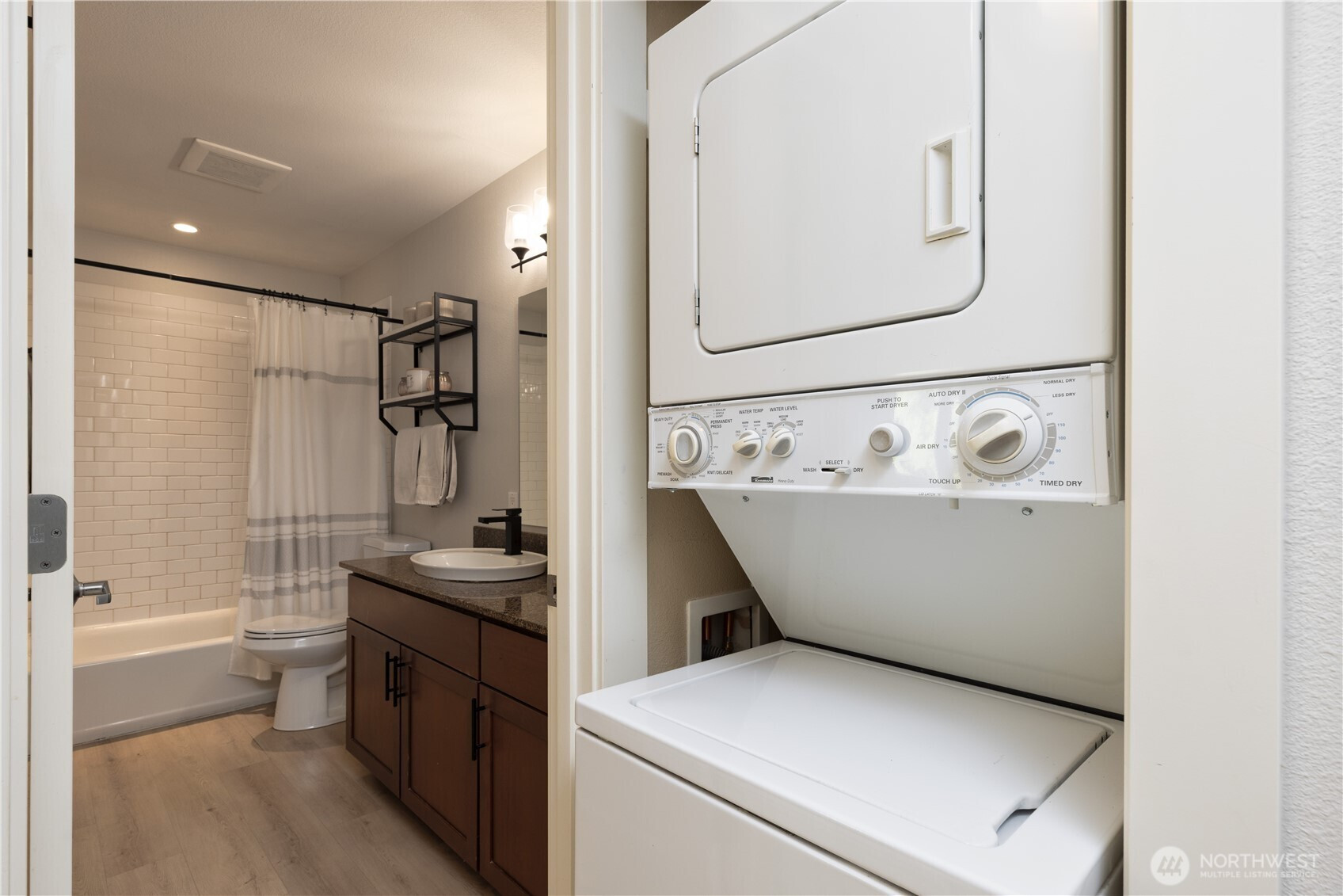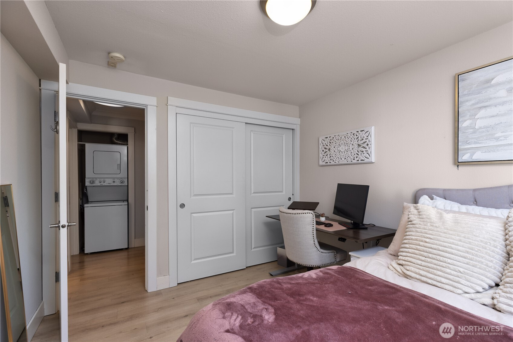 (650)533-3259Welcome to this bright and stylish two-bedroom corner end-unit featuring 2022 LVP flooring, upgraded modern lighting, and only one shared wall for added privacy! The inviting living room flows into a kitchen with stainless steel appliances, granite countertops, and direct access to a spacious covered balcony—perfect for relaxing or entertaining. Enjoy the convenience of an in-unit washer/dryer and a designated parking space, with HOA covering WSG. Nestled in the heart of Ballard, a walker’s paradise, you’re moments from trendy shops, parks, the Sunday Market, and incredible dining!