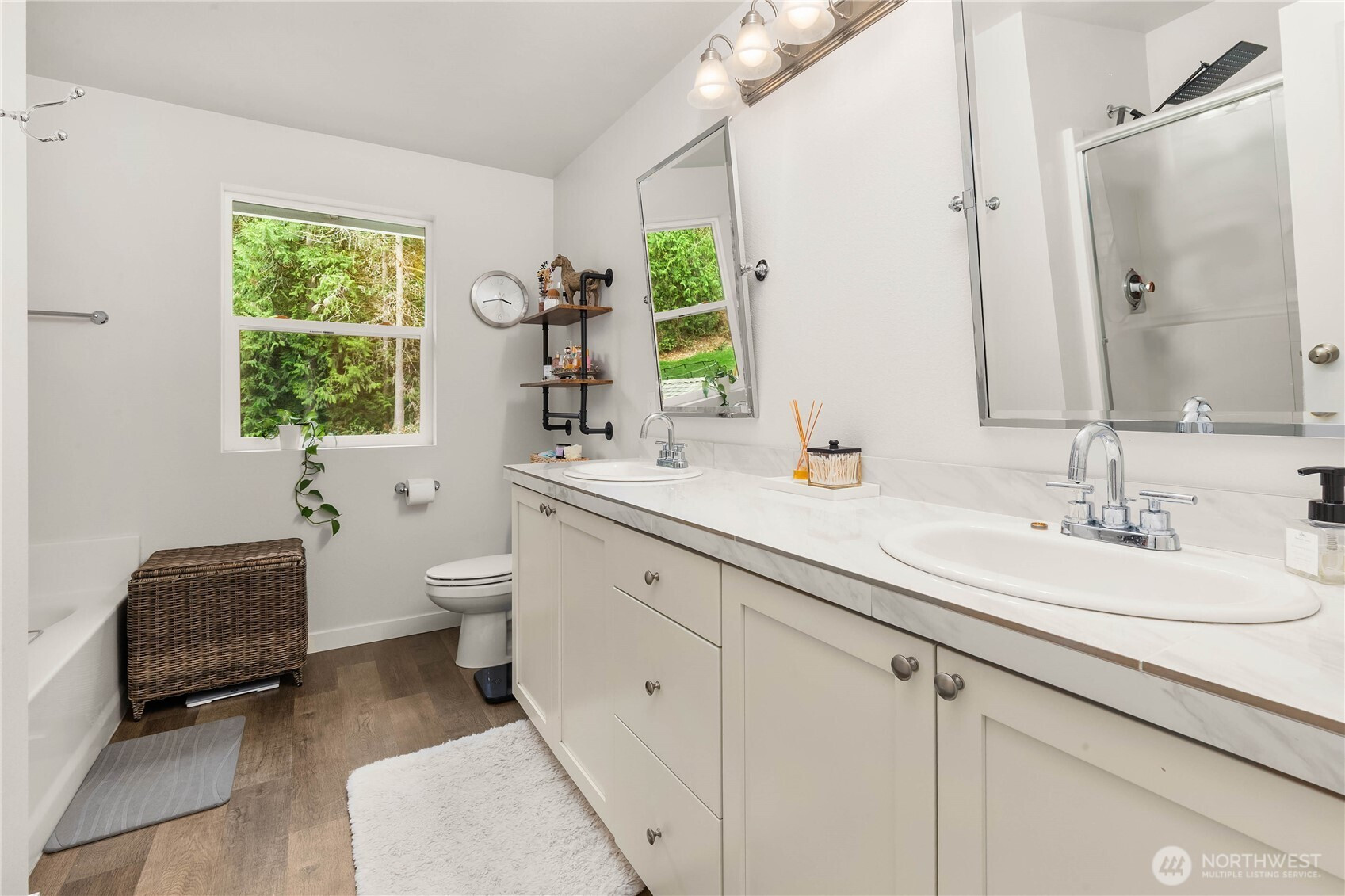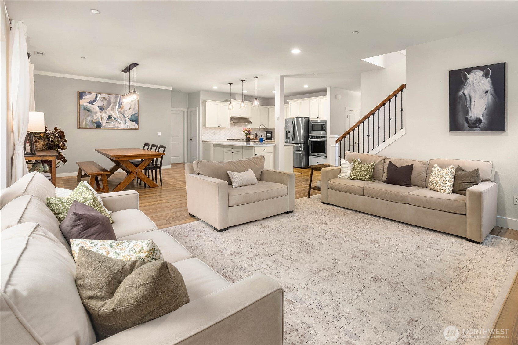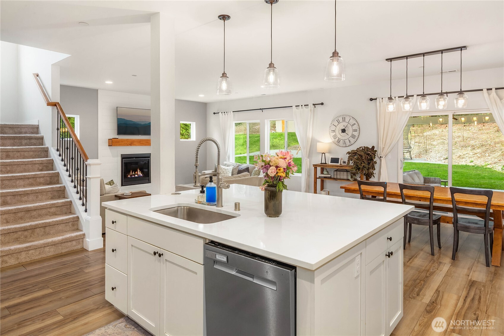 (650)533-3259Welcome to your private sanctuary on nearly forty acres of pristine Duvall acreage with exceptional potential for future development. This stunning 2019 built home features five bedrooms, three and a half bathrooms, and dual primary suites, one on the main floor and one on the upper level, offering flexibility for any lifestyle. Surrounded by towering evergreens and mature trees, this 3,190 square foot home delivers authentic Pacific Northwest rural living while remaining conveniently close to downtown Duvall and all the Eastside has to offer. The open concept main floor showcases quality finishes with abundant natural light flowing throughout. A chef's kitchen with white shaker cabinetry, quartz countertops, herringbone tile backsplash, and stainless steel appliances seamlessly connects to the spacious great room featuring a shiplap gas fireplace with warm wood mantle. Step outside to the stunning covered patio with wood-planked ceiling and ceiling fan, perfect for year-round entertaining and outdoor living. Main floor also includes a dedicated home office with built-in cabinetry. Upstairs offers generous open flex space easily adapted to recreation, office, or playroom needs. The two-story shop features garage space below and a finished flex room with projection screen above. Additional storage shed completes the property. This rare offering masterfully combines newer construction, private acreage, quality finishes, and unmatched proximity to town and regional amenities.