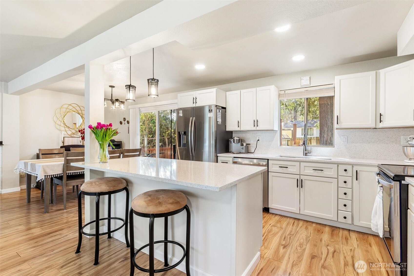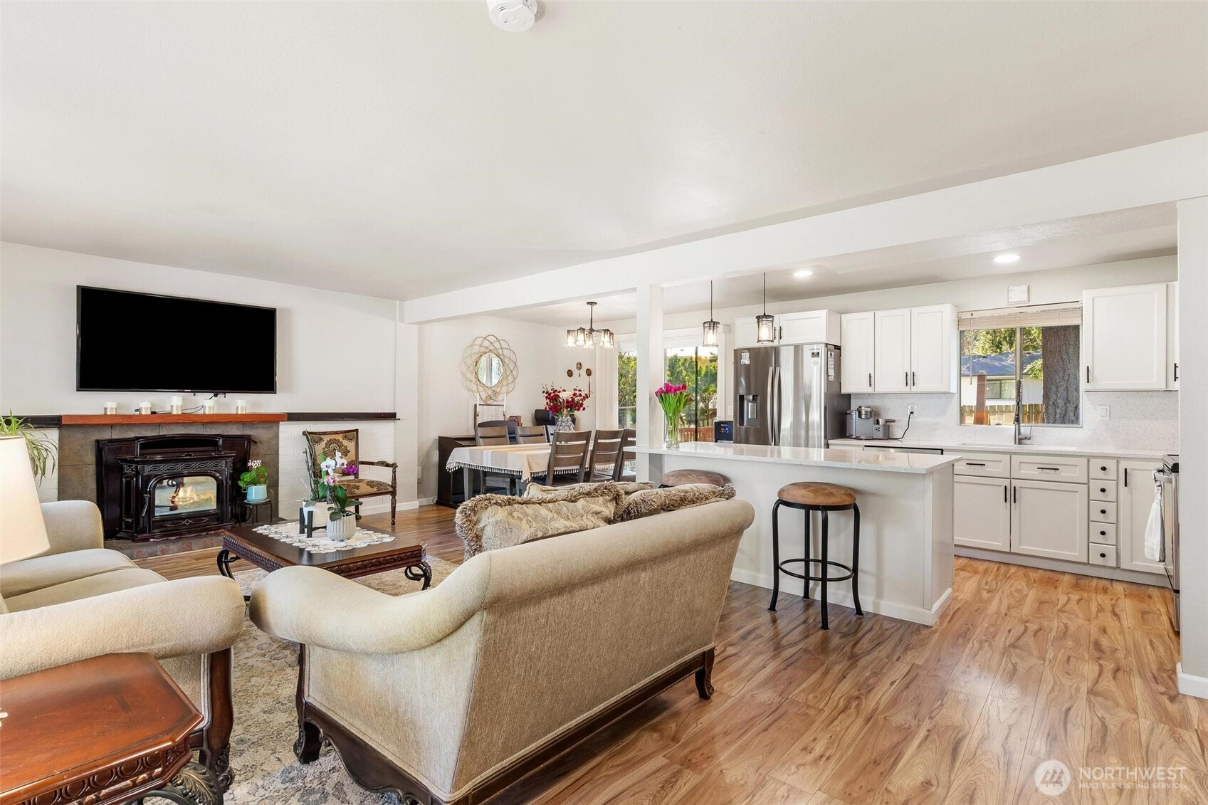 (650)533-3259Nestled on a quiet cul-de-sac near Lake Sawyer, this beautifully updated home offers the perfect blend of comfort, style, and location. Enjoy open concept living filled with immense natural light, a cozy fireplace, and a seamless flow from the living room to the dining area and out to the back deck overlooking a lush backyard. The stunning kitchen features gleaming quartz countertops, stainless steel appliances, and modern finishes throughout. The seller has truly done it all with new flooring and thoughtful updates in every space, including refreshed bathrooms on both levels. A versatile lower-level bonus area with an updated bath and direct backyard access offers flexible living options for guests, work, or play. Ideally located just minutes from the Lake Sawyer boat launch, public parks, and the many amenities of Covington and Maple Valley, all within the highly sought-after and award-winning Tahoma School District.