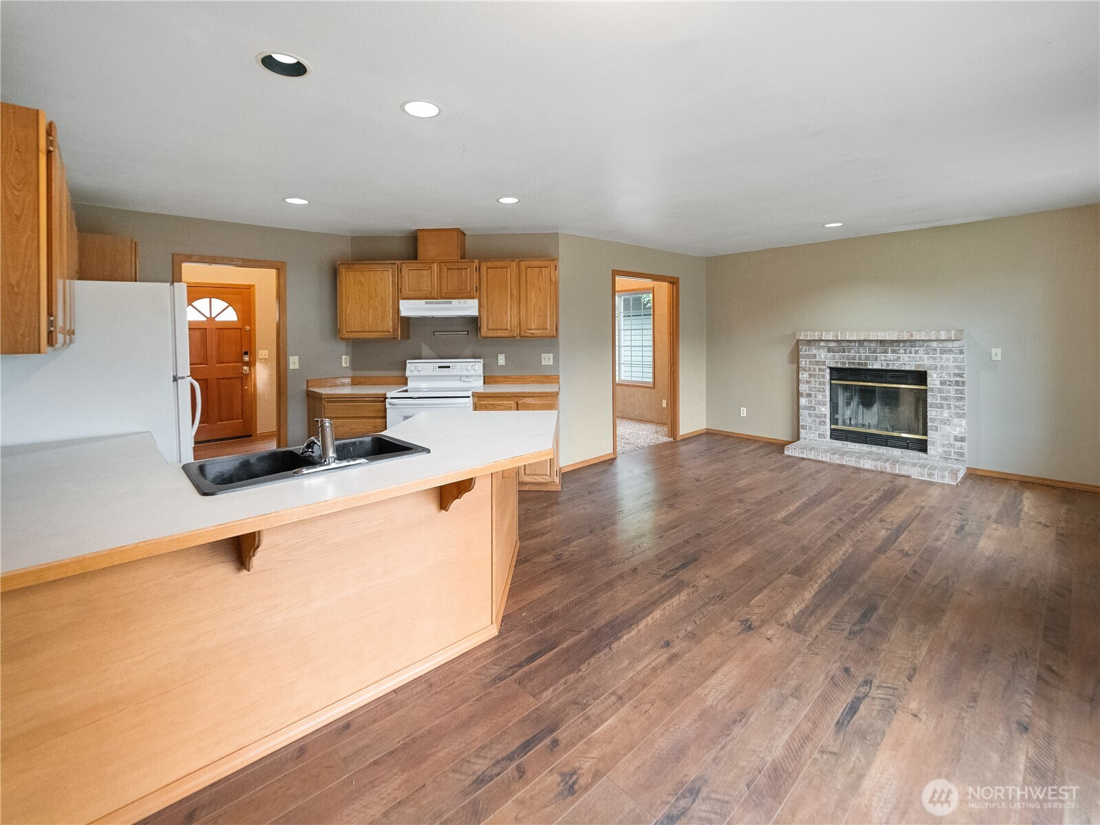 (650)533-3259Huge potential at this 3 bed, 2 bath, 1,540 SF home on a quiet street in Enumclaw! Spacious living room w/ vaulted ceilings. Kitchen w/ vinyl plank floors, gas range, dining area, bar seating, & adjacent family room w/ wood fireplace, brick hearth, & vinyl plank flooring. Primary bedroom w/ french doors, private bathroom, & large closet. Full guest bath w/ tile floors & quartz CT. 2-car garage w/ natural gas water heater installed in 2024 & forced air furnace installed in 2020. Covered + gated RV parking w/ hook-ups & dump. Fully-fenced back yard w/ covered patio, lg. extended patio, plum tree, & wood shed. Garden/tool shed on side yard. Wired for generator. Great curb appeal w/ HardiePlank siding & brick accents. Come see before it's gone!