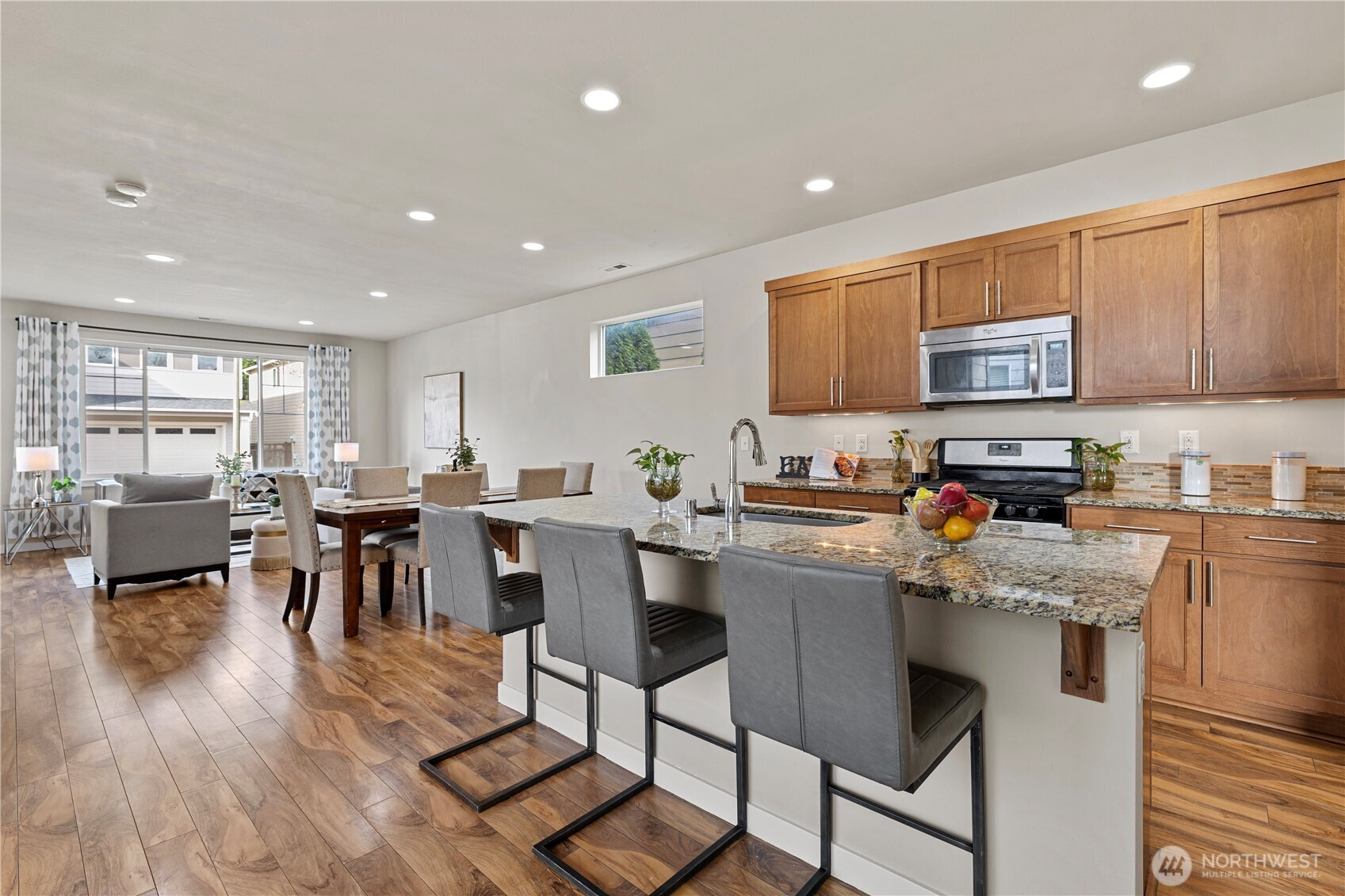 (650)533-3259Experience elevated living in The Bridges, one of Auburn’s most sought-after master-planned communities. Ideally positioned on charming “Main Street” w/ alley access, this home offers classic curb appeal w/ the garage discreetly tucked behind for a cleaner, more pedestrian-friendly streetscape. Inside, the open-concept design seamlessly connects the living, dining, & gourmet kitchen—perfect for entertaining or everyday comfort. The kitchen features granite countertops, maple cabinetry, stainless steel appliances, a walk-in pantry, & a generous center island w/ seating. Durable hardwood-style flooring, a main-floor office, & a convenient powder room add flexibility for modern living. Upstairs, the vaulted Primary Suite serves as a private retreat with a 5-piece ensuite, walk-in closet, & its own deck offering Mt. Rainier views on clear Pacific Northwest days. Two additional bedrooms, a full bath, and upstairs laundry complete the second level. Enjoy year-round comfort with A/C & relax or host gatherings on the covered side deck. The Bridges is known for its interconnected parks, playgrounds, athletic courts, & scenic walking trails woven through protected open space & nature reserve areas. Just minutes to Costco, Trader Joe’s, Green River College, Les Gove Park & Community Center, eats, & everyday services. Easy access to Hwy 18, 167, & I-5 makes commuting throughout Auburn, Kent, Covington, effortless. Rare blend of community charm, thoughtful design, & A+ location!