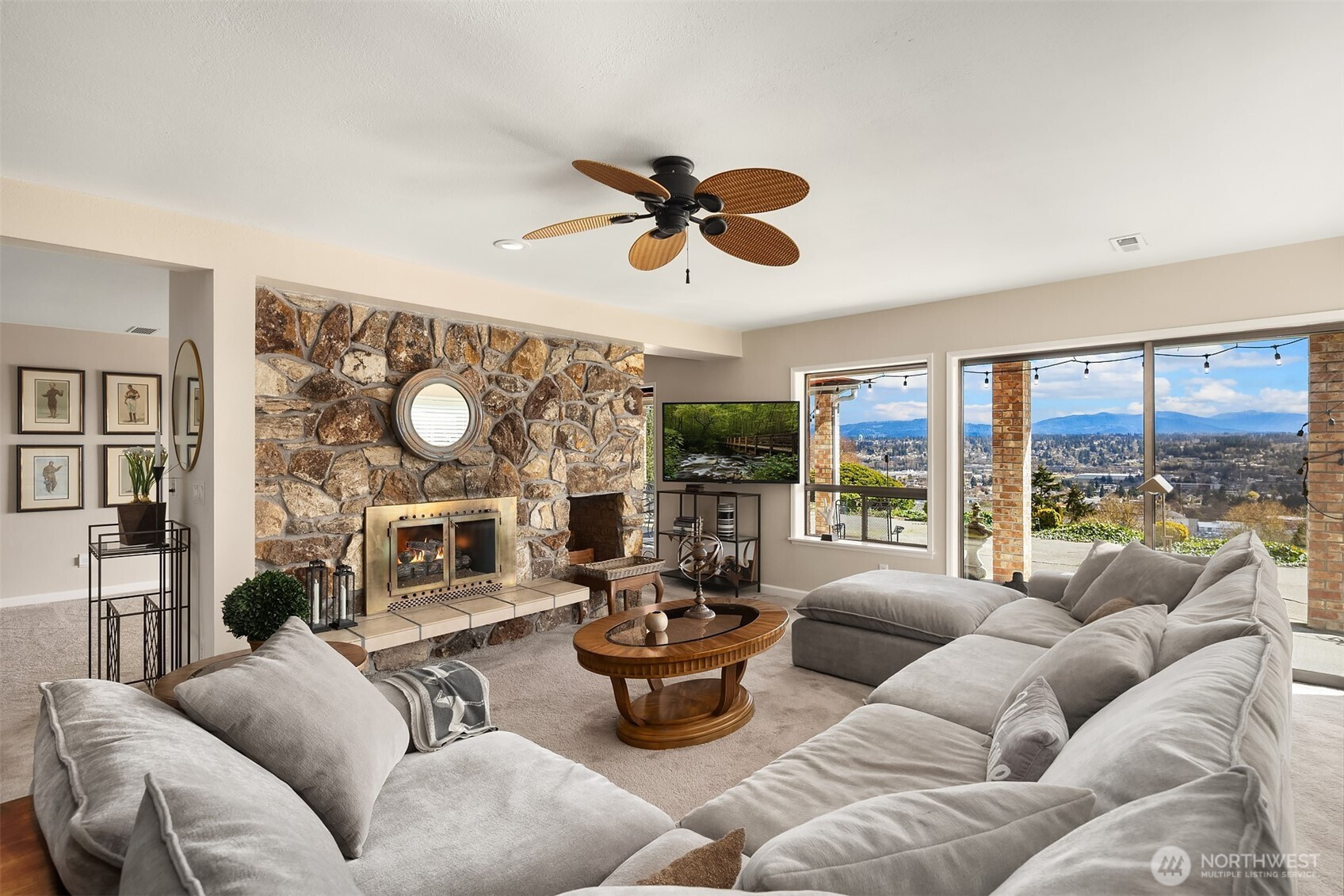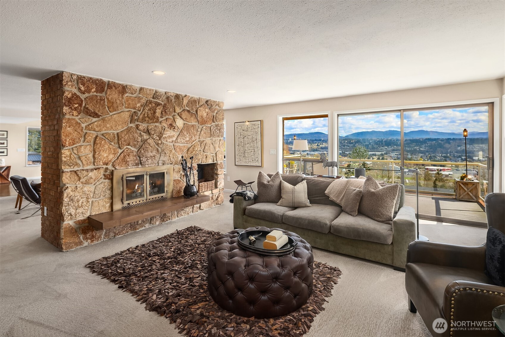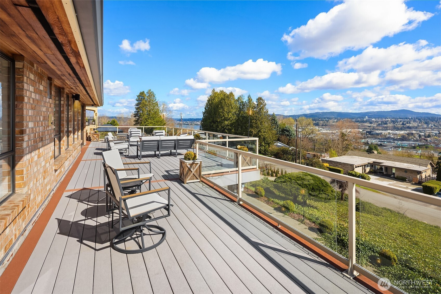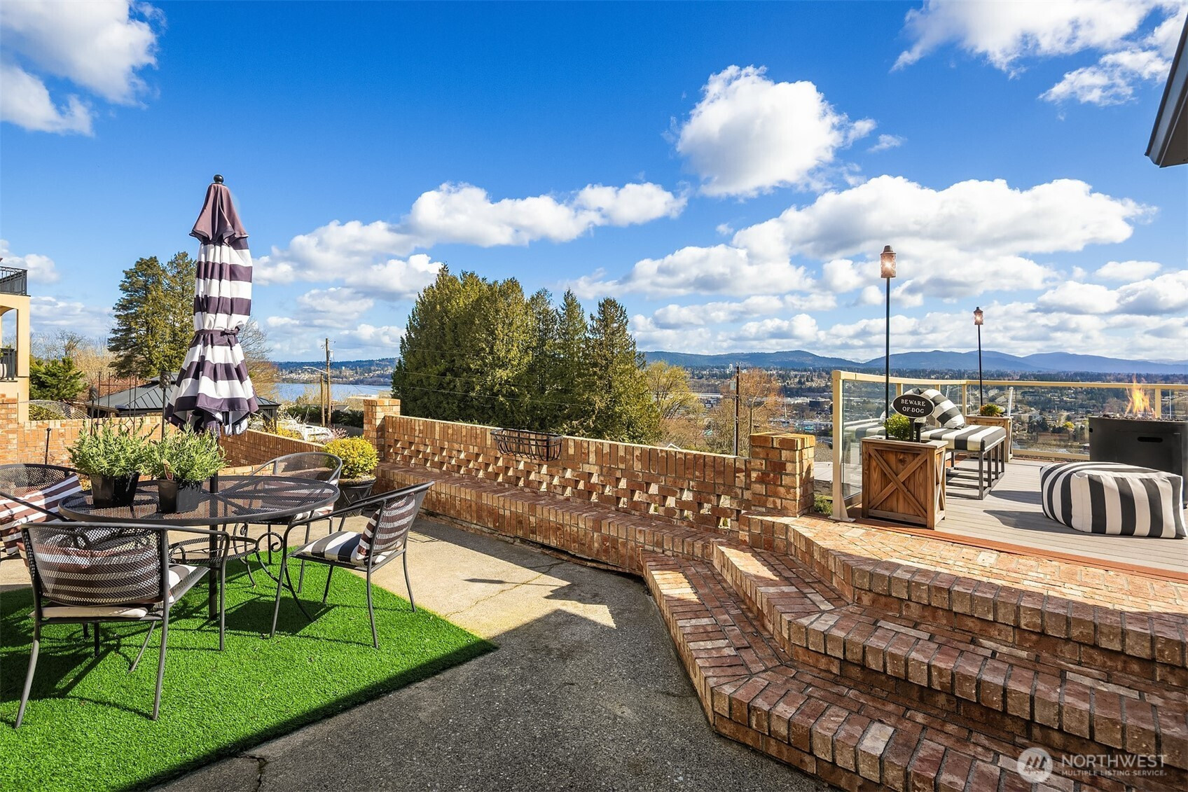 (650)533-3259A location for your lifetime! Custom built home with views from the edge of Lake Washington over the Cascades Valley to her Royal Majesty Mount Rainier. Access to everywhere from this spot is a commuter’s deam.On the market for the first time surrounded by an elegant brick fence and lovely grounds that great you as you enter spacious living, family, dining and epicurean kitchen. Enjoy the floor to ceiling, stone fireplace, and above it all you’ll enjoy the oversized deck as you sip your wine. Large primary suite with an en suite bath full bath with two more bedrooms on this level. Wind your way downstairs to find an additional stone fireplace, family and living room spacious enough for pool table and more. Be wowed by the second kitchen and laundry below with bedrooms and graciously large patio, continuing to enjoy views that inspire.This level can also perform as it’s own unit to create a second in income, should you desire. With its own driveway leading to the back of the house. Incredibly spacious half acre also has the opportunity to place ADU’s. Altogether creating one spectacular single home or several opportunities to create an income stream.
