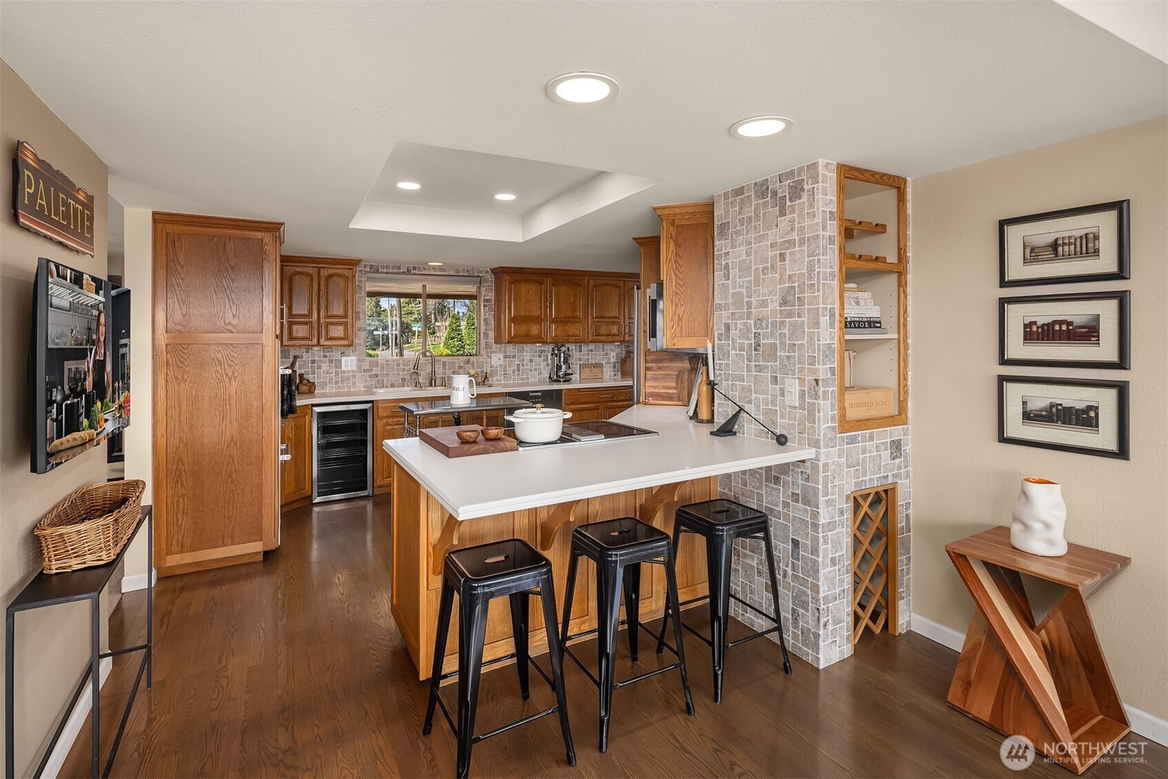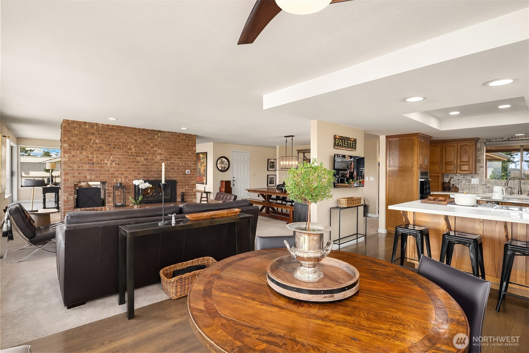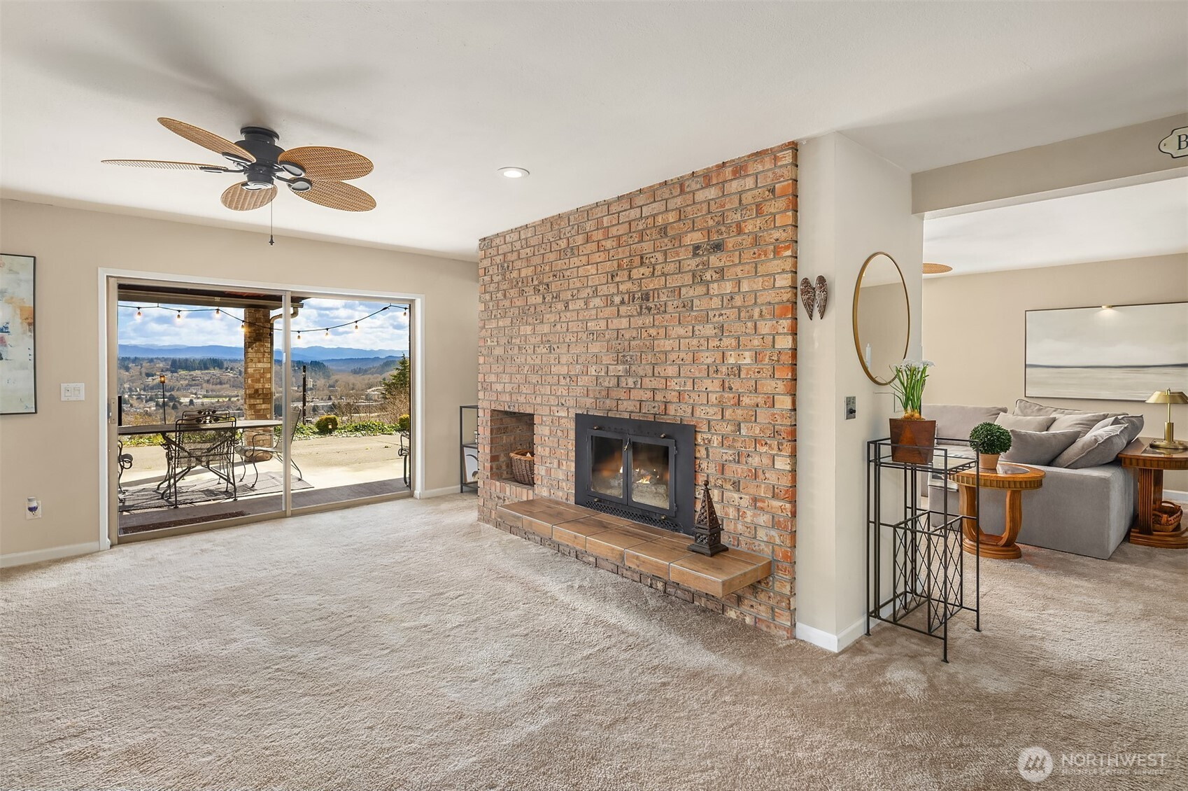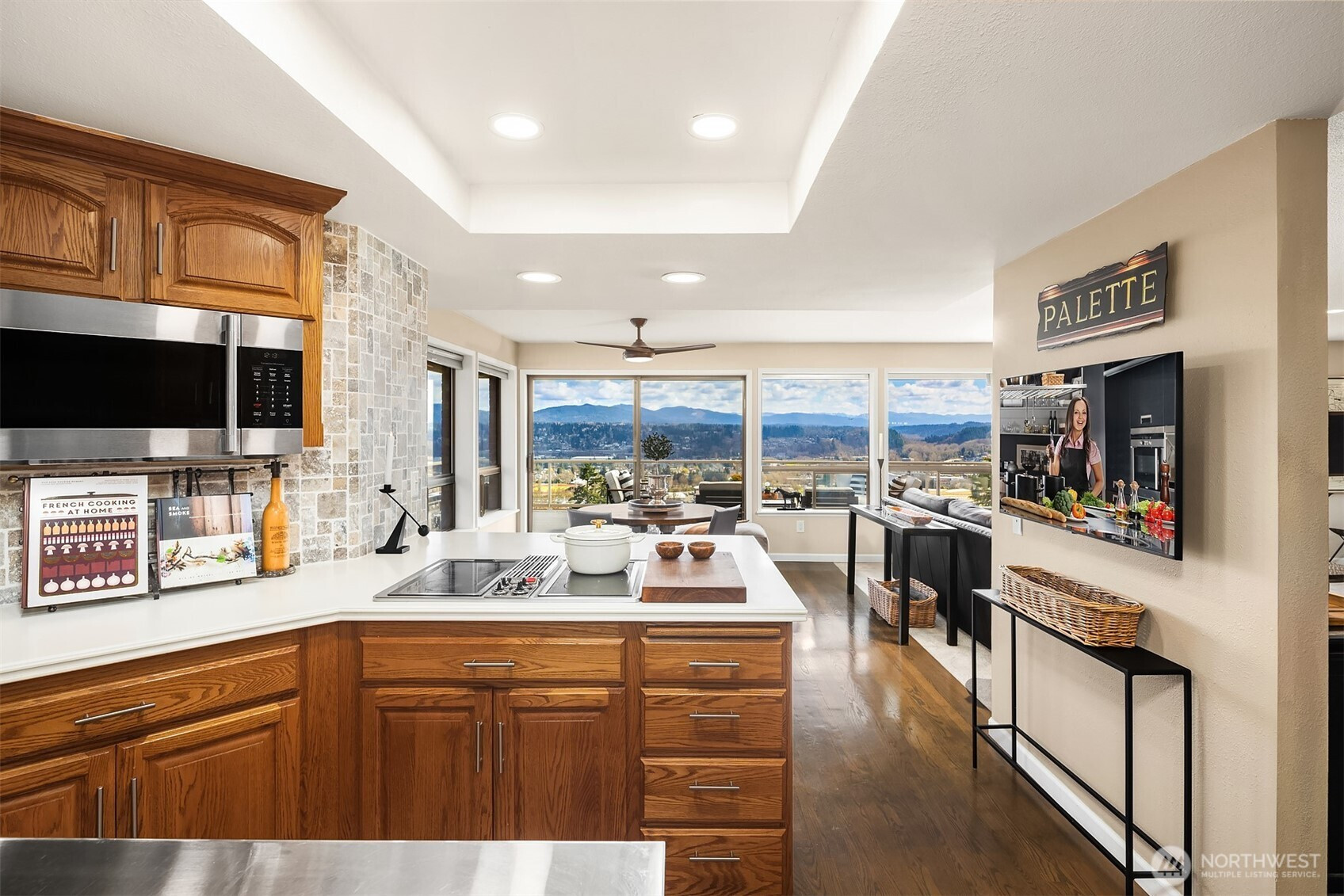 (650)533-3259A location for your lifetime! Custom built home with views from the edge of Lake Washington over the Cascades Valley to her Royal Majesty Mount Rainier. Access to everywhere from this spot is a commuter’s deam.On the market for the first time surrounded by an elegant brick fence and lovely grounds that great you as you enter spacious living, family, dining and epicurean kitchen. Enjoy the floor to ceiling, stone fireplace, and above it all you’ll enjoy the oversized deck as you sip your wine. Large primary suite with an en suite bath full bath with two more bedrooms on this level. Wind your way downstairs to find an additional stone fireplace, family and living room spacious enough for pool table and more. Be wowed by the second kitchen and laundry below with bedrooms and graciously large patio, continuing to enjoy views that inspire.This level can also perform as it’s own unit to create a second in income, should you desire. With its own driveway leading to the back of the house. Incredibly spacious half acre also has the opportunity to place ADU’s. Altogether creating one spectacular single home or several opportunities to create an income stream.
