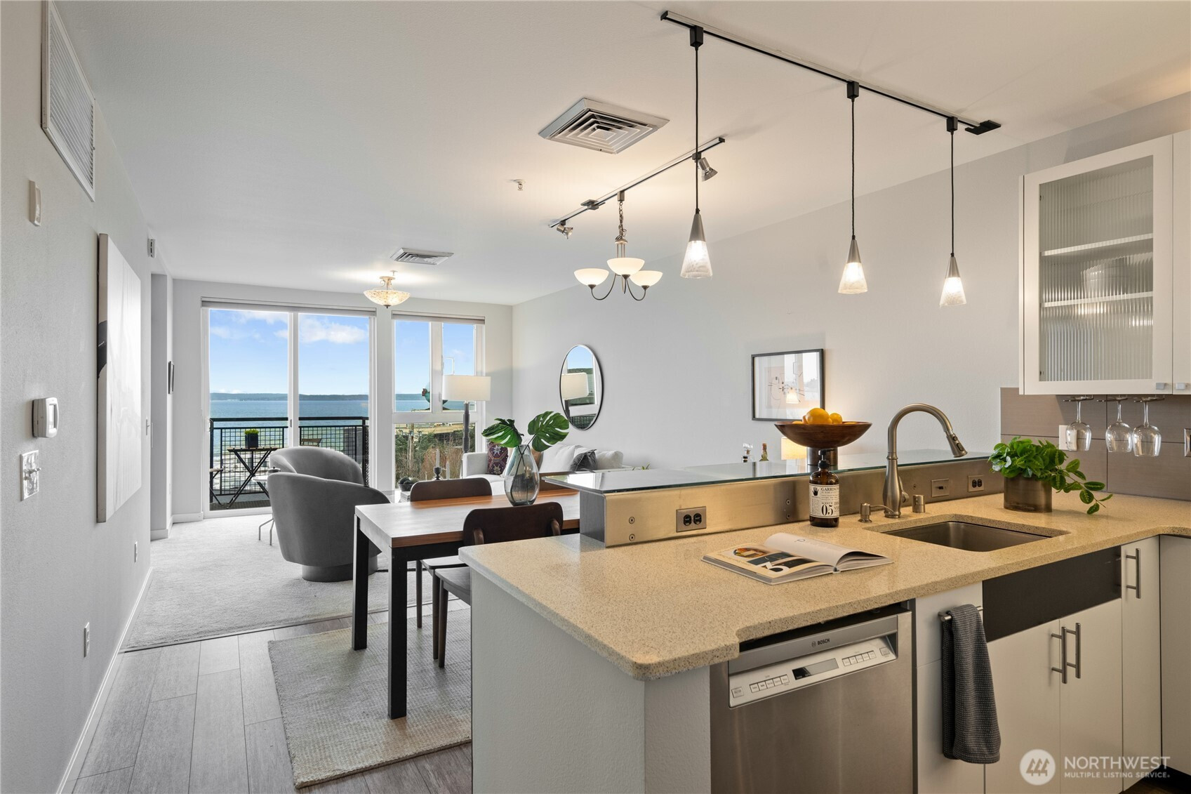 (650)533-3259This top-floor corner-unit home faces south and west, and boasts views of Mt. rainier, the Olympic Mountains, and Puget Sound. Even on the grayest of days there is abundant natural light, and when the sun is out there is central air conditioning to keep things cool! The kitchen, dining, and living rooms are all connected and look west to the Olympic Mountains. Wake up to Mt. Rainier views in the ensuite primary bedroom, and enjoy the closet system in the walk-in closet, helping to keep things organized. The second bedroom doubles as a home office, with a Murphy bed that when up, has a drop-down desk. This room faces west, and opens to the living room, helping to create an open and inclusive feeling. Trio condos provides front-desk concierge services, a rooftop deck with BBQs, no rental cap, and is very pet friendly. In the quiet part of Belltown and just steps from the Olympic Sculpture Park, and blocks from Pike Place Market, cafes, nightlife, restaurants, shops, and more!