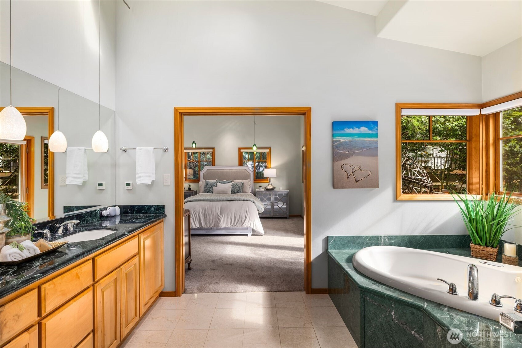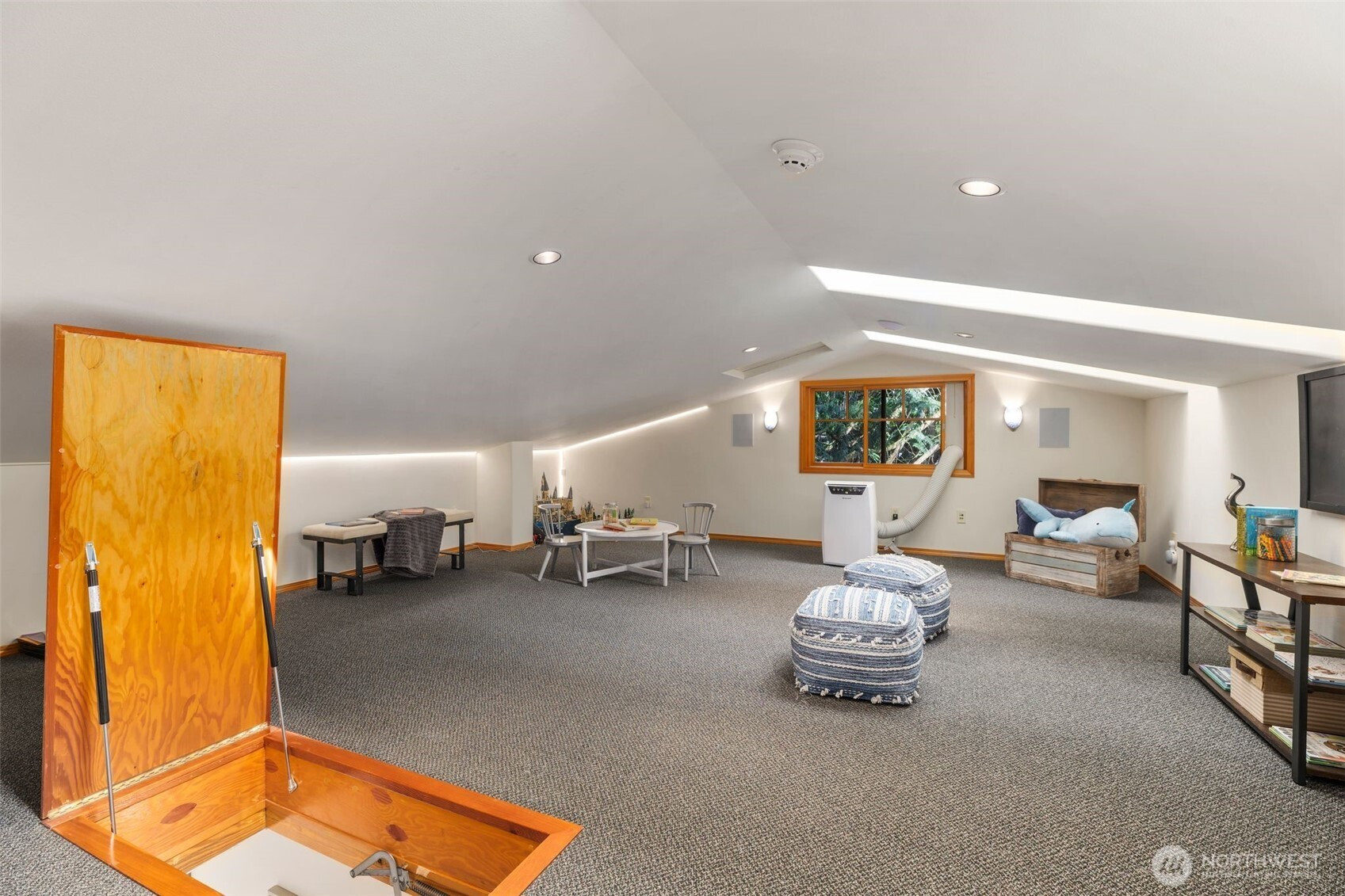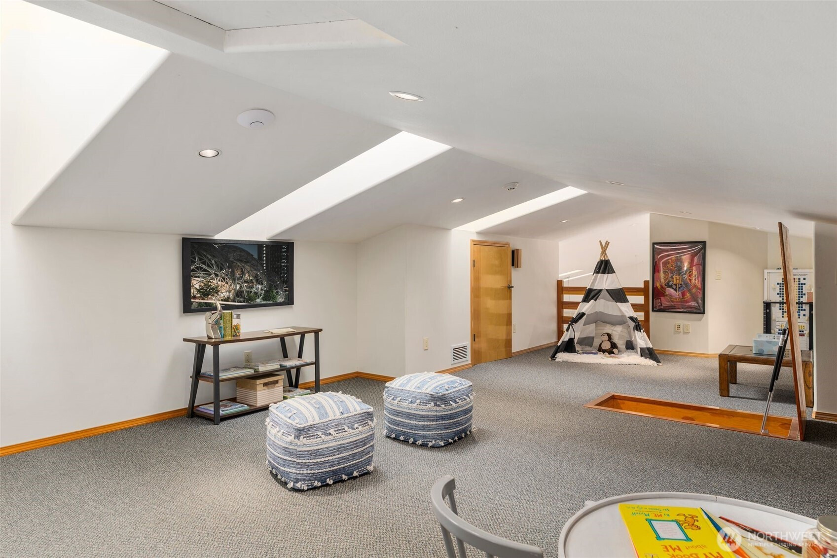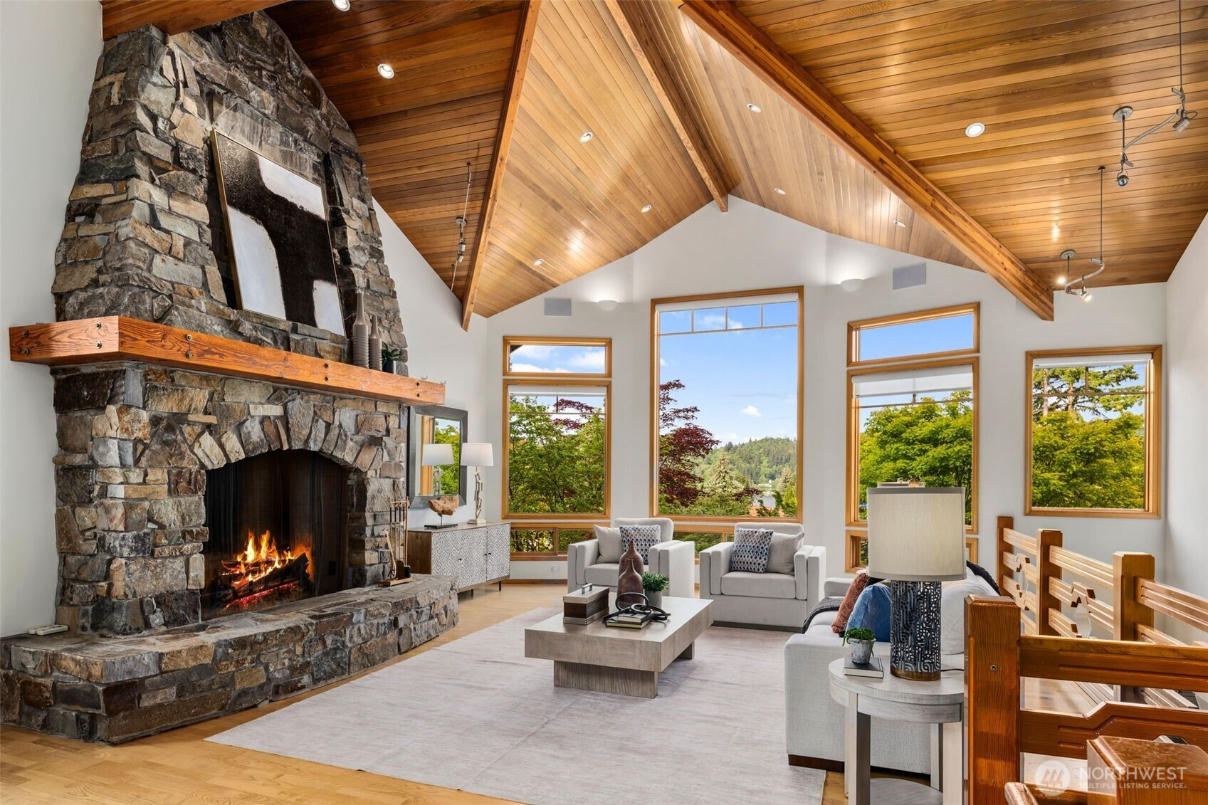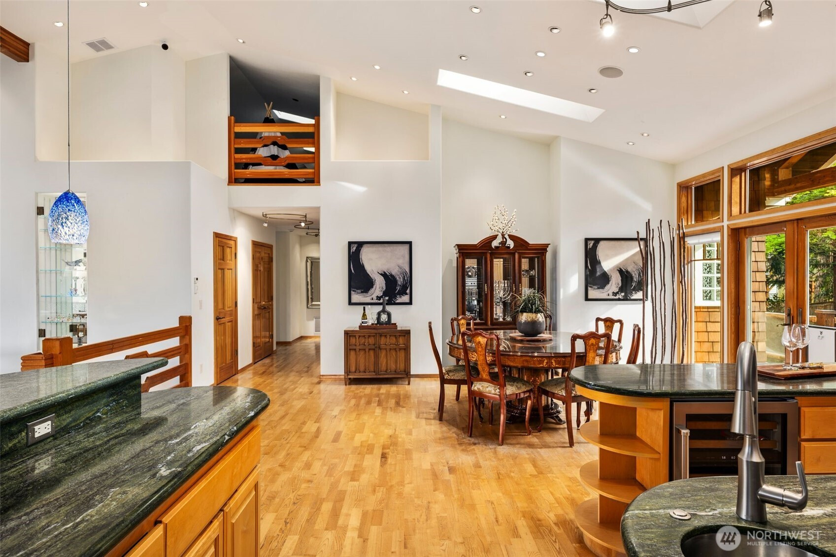 (650)533-3259Step into this luxury home that will inspire you and whomever you invite over. Soaring 18ft ceilings, a wfh office w/personal library vibes that'll make you want to stay home, a wide open cook's kitchen, and a dining space for ten people all await in this sprawling two-story floor plan. There's several sets of French doors & Northwest-inspired pocket doors & features throughout this stunning display of architecture designed by Carlietti Architects. There's a calming view of Lake Sammamish as you'll be perched above your neighbors for privacy and amazing light will fill this home all day. Love to display art? You'll find this home full of canvases for your favorite collection pieces and there's even a couple playful murals inside this home commissioned by the original owners that will make you smile. Entertain on holidays/weekends for 15 or 50 guests easily inside or outside while overlooking your Japanese garden-inspired backyard on your full-length oversized deck space. Floorplan: On Entry Level you'll find a larger bedroom, laundry room w/outdoor access, theater/multipurpose room, library-lined living room & full bath, garage w/ample storage throughout. Upstairs: Open living kitchen and dining spaces with high ceilings, 3bdrms including primary w/a 5-piece bathroom, & office/library space. Bonus loft/attic storage or playroom space w/6'2" clearance This location is amazing!: Walk to the lake, nearby parks, Audubon Elementary, Microsoft & Redmond are just 7-minutes away.