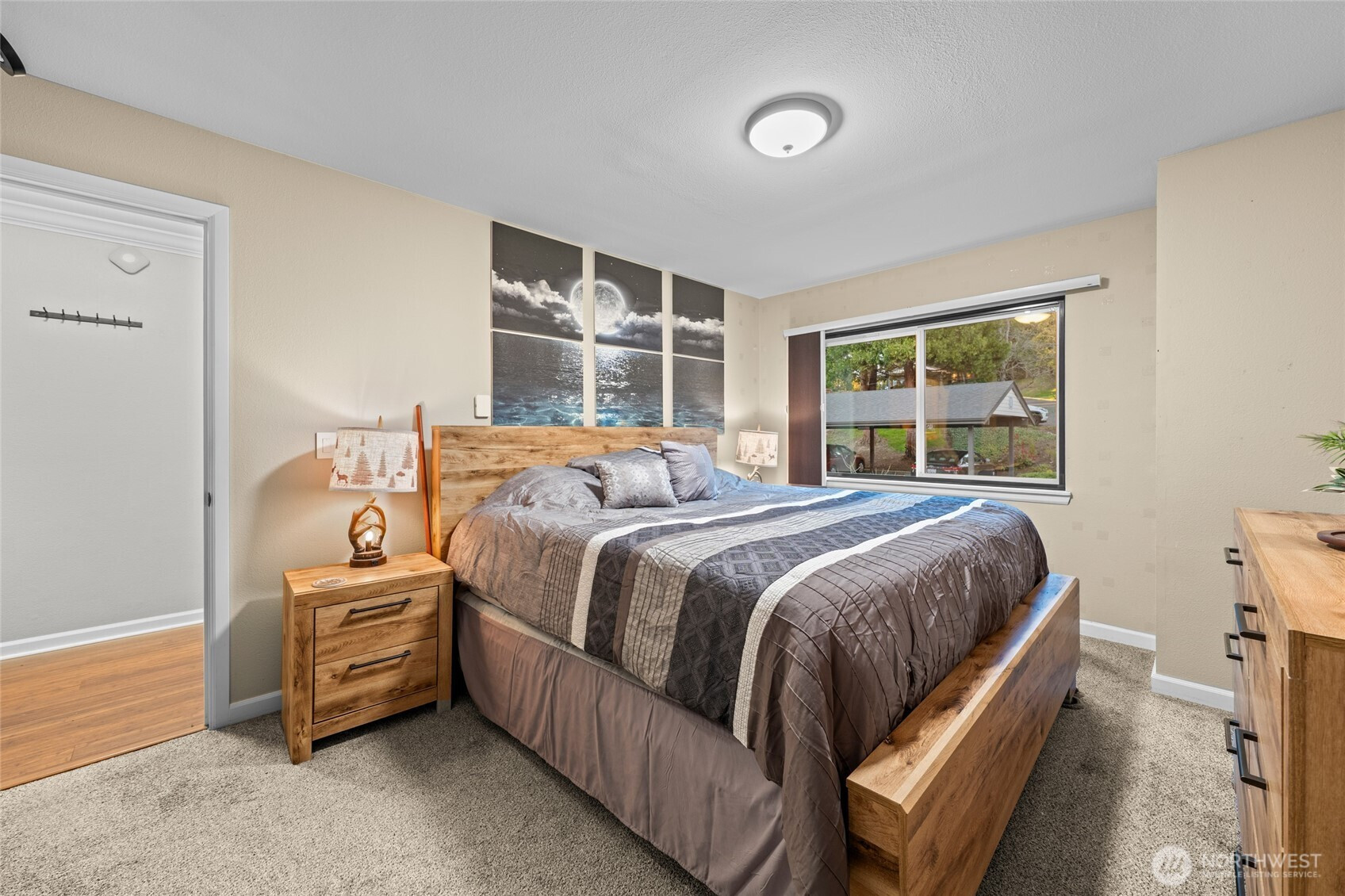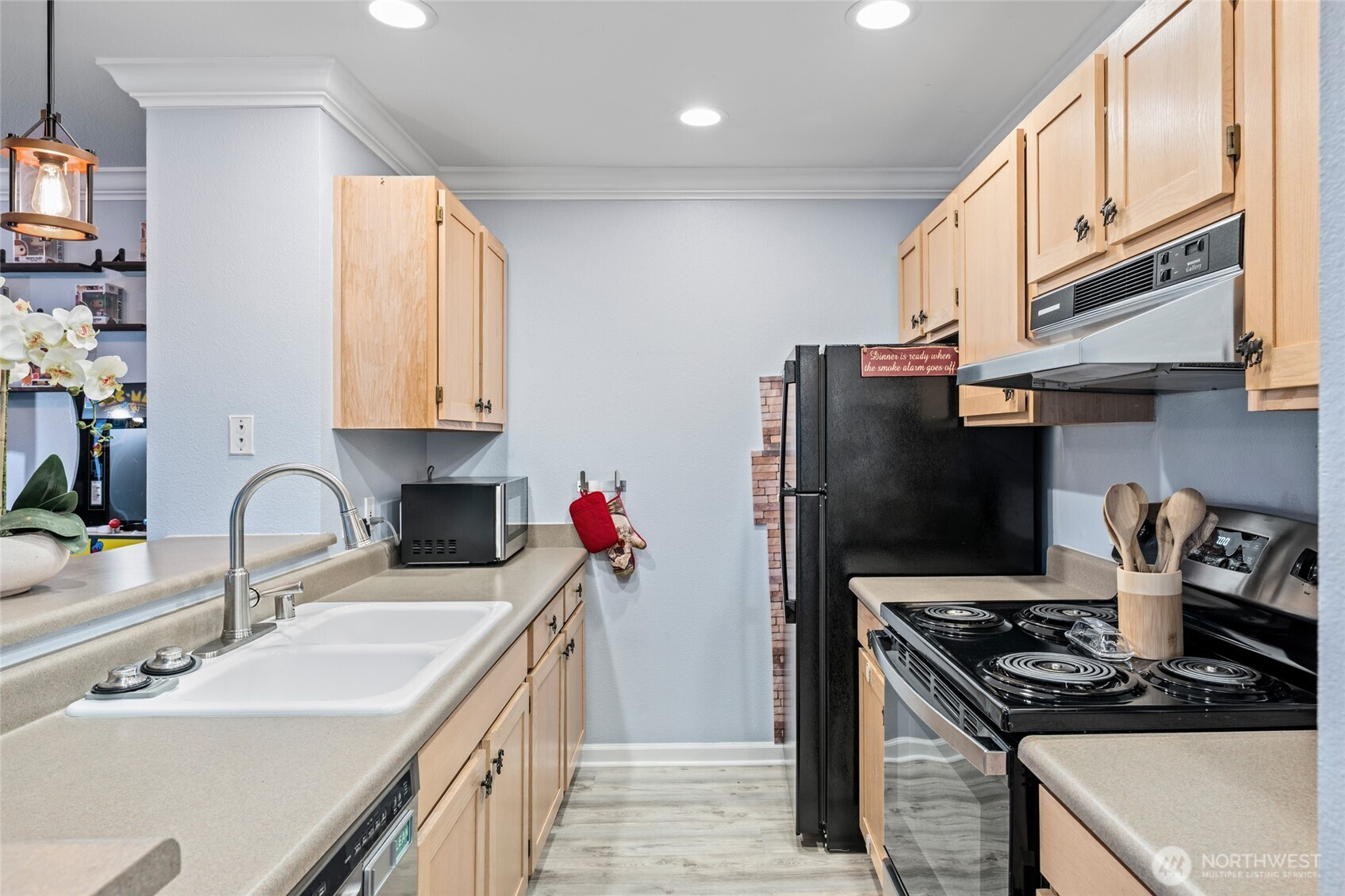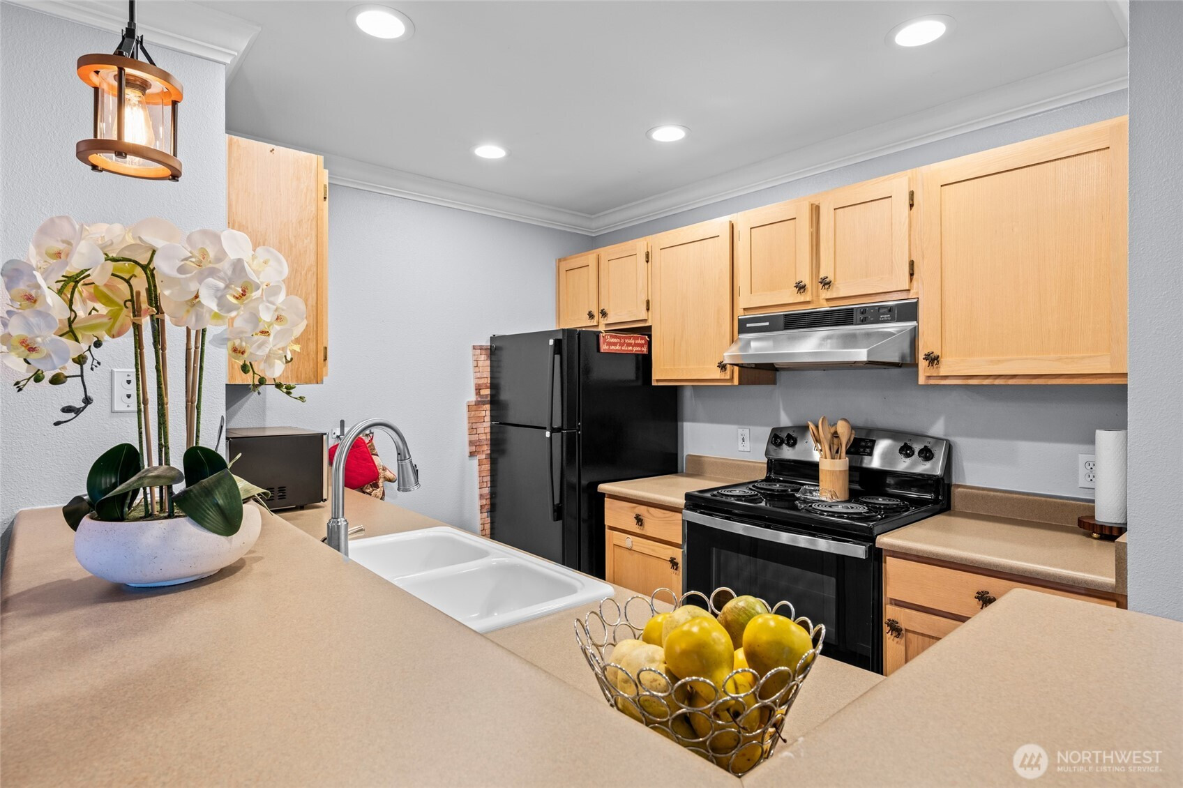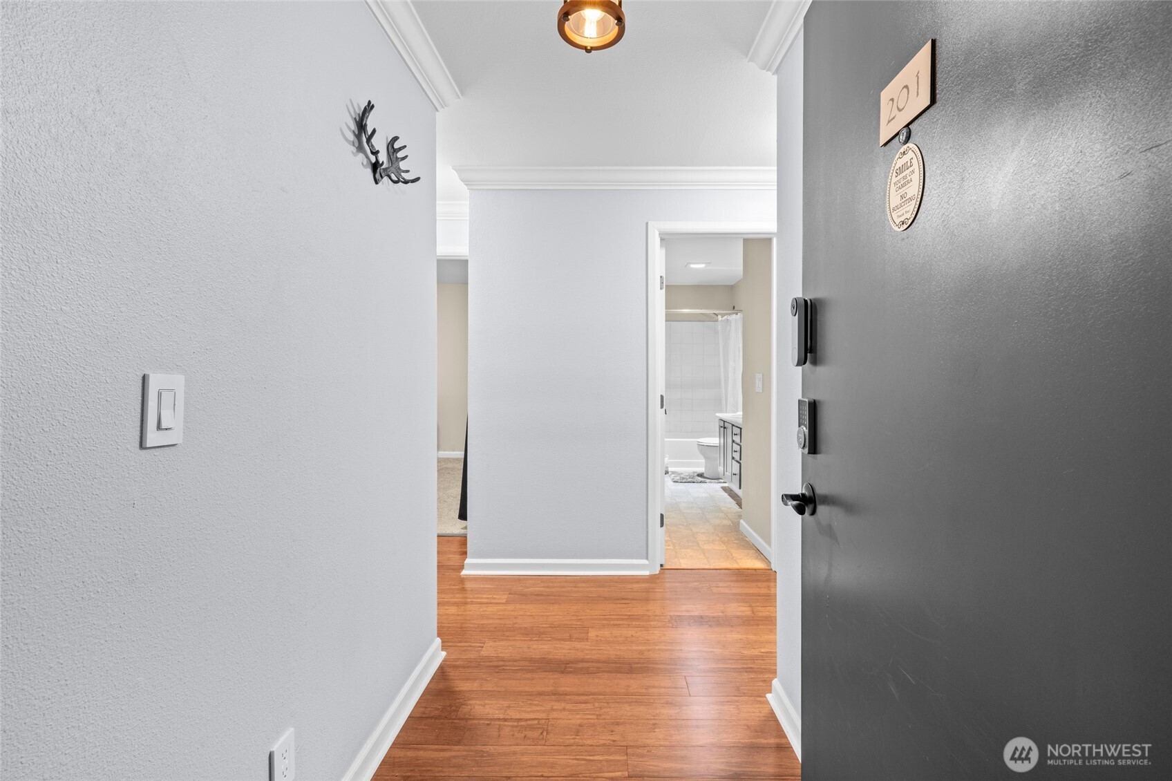 (650)533-3259Plenty of Smart features throughout adorns this very turn-key top floor unit ready for itss next owner. This unit is a great first home or as an investment. Comes with nice furnishings throughout the home making this an easy sale/easy move for any buyer's situation. Smart features greet you at your doorstep w/electronic smart lock you can operate from your phone as well at the thermostats for heating. Step inside to gorgeous cherry like hard flooring thru out, bath w/smart lighting, dual sinks w/smart faucets & full size W&D. Newer stove, microwave in kitchen w/new lighting over eating bar, dimmers throughout for proper mood lighting, blackout shades & 60" Flatscreen in living room w/electric recliner. 2nd Bedroom fully equipped for projector & screen or use as a regular bedroom. Tie in your Google home to Wi-FI & operate lights, heat, locks with your voice/phoneand much more! Quiet/chill balcony, end unit facing greenbelt has great sunsets. Great amenities from pool, sauna, exercise room with reasonable monthly HOA.