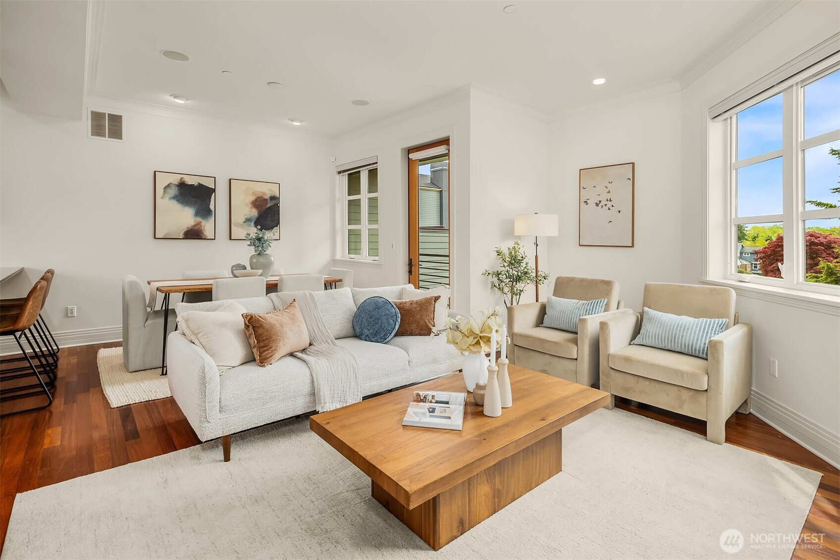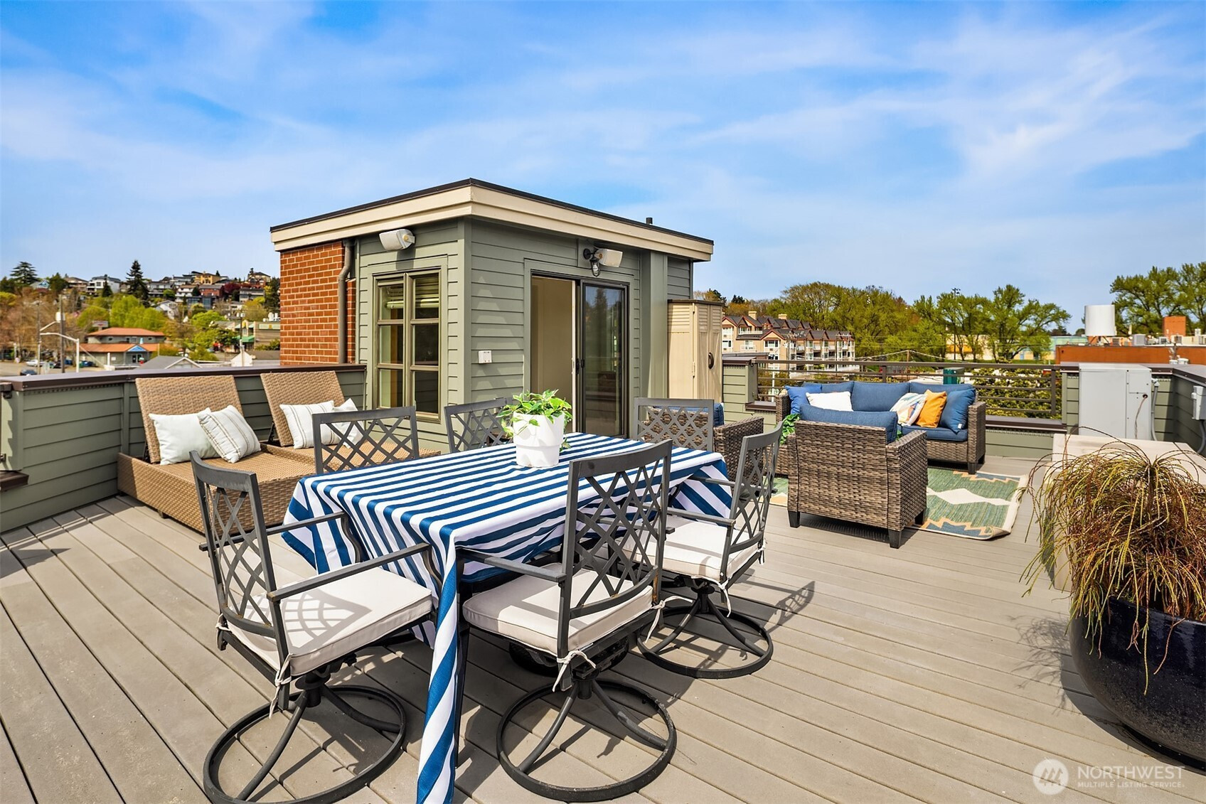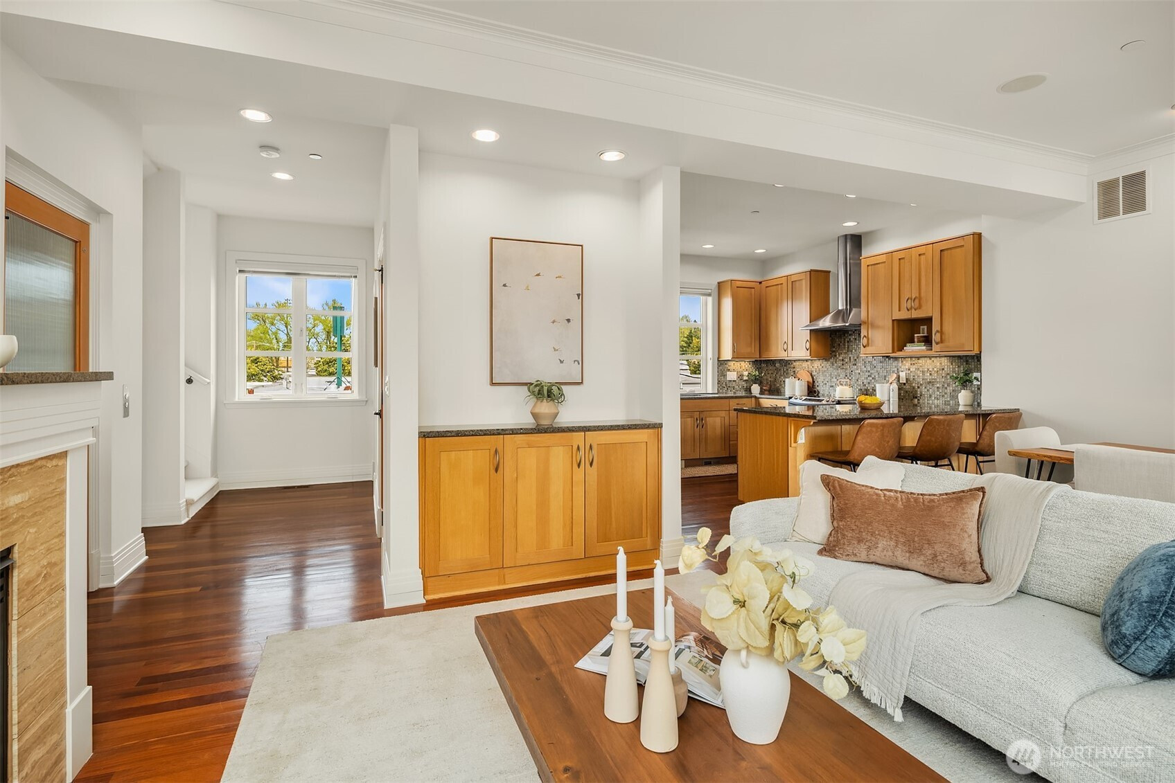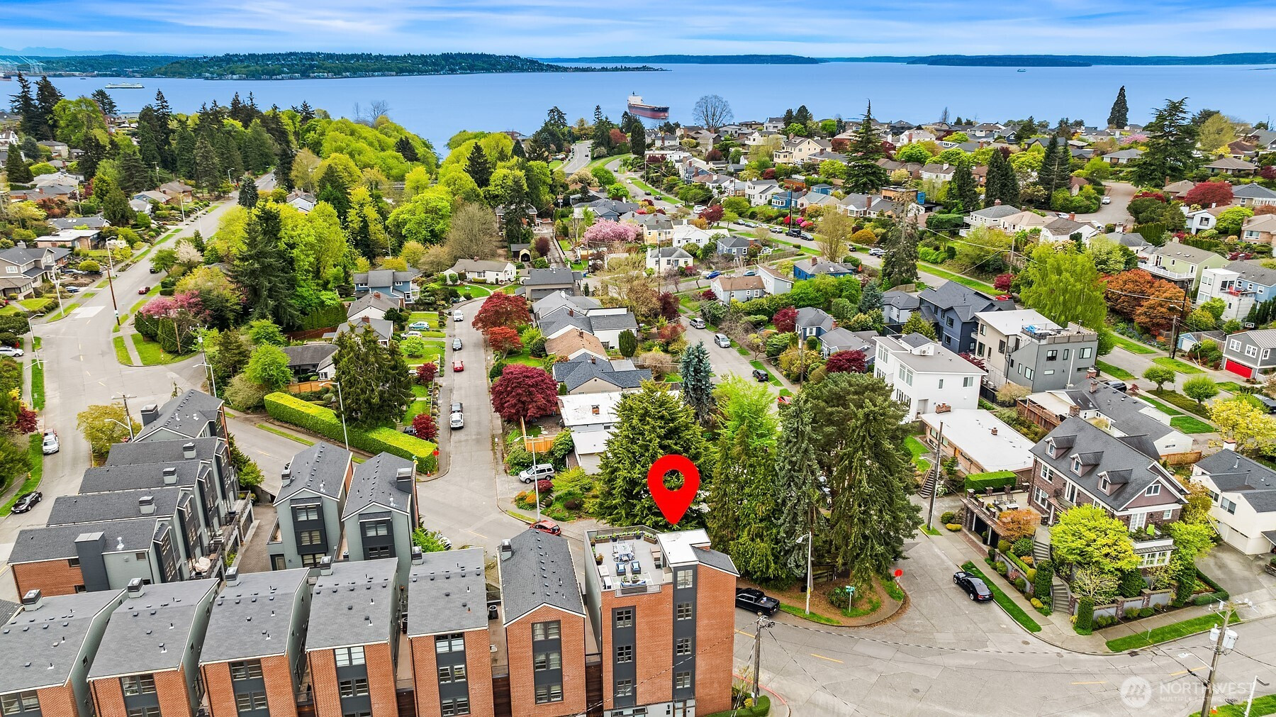 (650)533-3259Boutique living in the heart of strollable Magnolia Village. A rare gated community of distinctive brownstones, this exceptional residence features a private elevator, individual one car garage, and secure courtyard entry. Appraised in 2026 for $1.6M you can enjoy instant equity. Originally built as the architect’s personal residence, the home reflects an elevated level of design, materials, and craftsmanship that truly set it apart. Beautiful living spaces showcase timeless materials including rich hardwood floors and travertine. The second level offers a guest suite along with a bonus room or third bedroom already plumbed with a sink, providing flexibility for guests, work from home, or creative space. The third level unfolds into a chef’s kitchen with slab granite countertops, top tier stainless appliances, and an inviting living and dining area ideal for gathering. The fourth level is dedicated to the primary suite, complete with fireplace and sitting area, creating a peaceful retreat above the city. Crowning the home is a fifth level rooftop deck, the only one in the community, offering territorial views, city skyline outlooks, and a peek of Puget Sound. The ground floor storefront style office with half bath offers incredible flexibility for WFH/studio/gym, or potential income producing rental. All just moments from cherished cafés, neighborhood boutiques, parks, and village amenities, where everyday living blends seamlessly with the charm and connection. Welcome home.