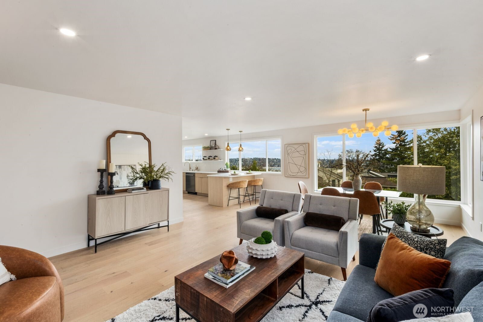 (650)533-3259Mid-Century Modern with sweeping city views. Positioned to capture sunsets and abundant natural light, this fully permitted remodel blends timeless design with thoughtful upgrades and refined finishes throughout. The main level features an updated kitchen with brand-new appliances, opening to living and dining areas oriented toward the views. Offering 4 bedrooms and 2.5 baths, including a primary suite with an ensuite bath, the layout is thoughtfully designed with two bedrooms on the main level and two downstairs. The lower level adds an additional living area with a built-in bar - perfect for entertaining with direct access to the spacious backyard. Major updates include: new roof, electrical, flooring, appliances, flooring and more ! Don't miss your opportunity to own this turnkey Magnolia gem. Ideally located minutes from Magnolia Village, Discovery Park, and convenient commuter routes to downtown Seattle.