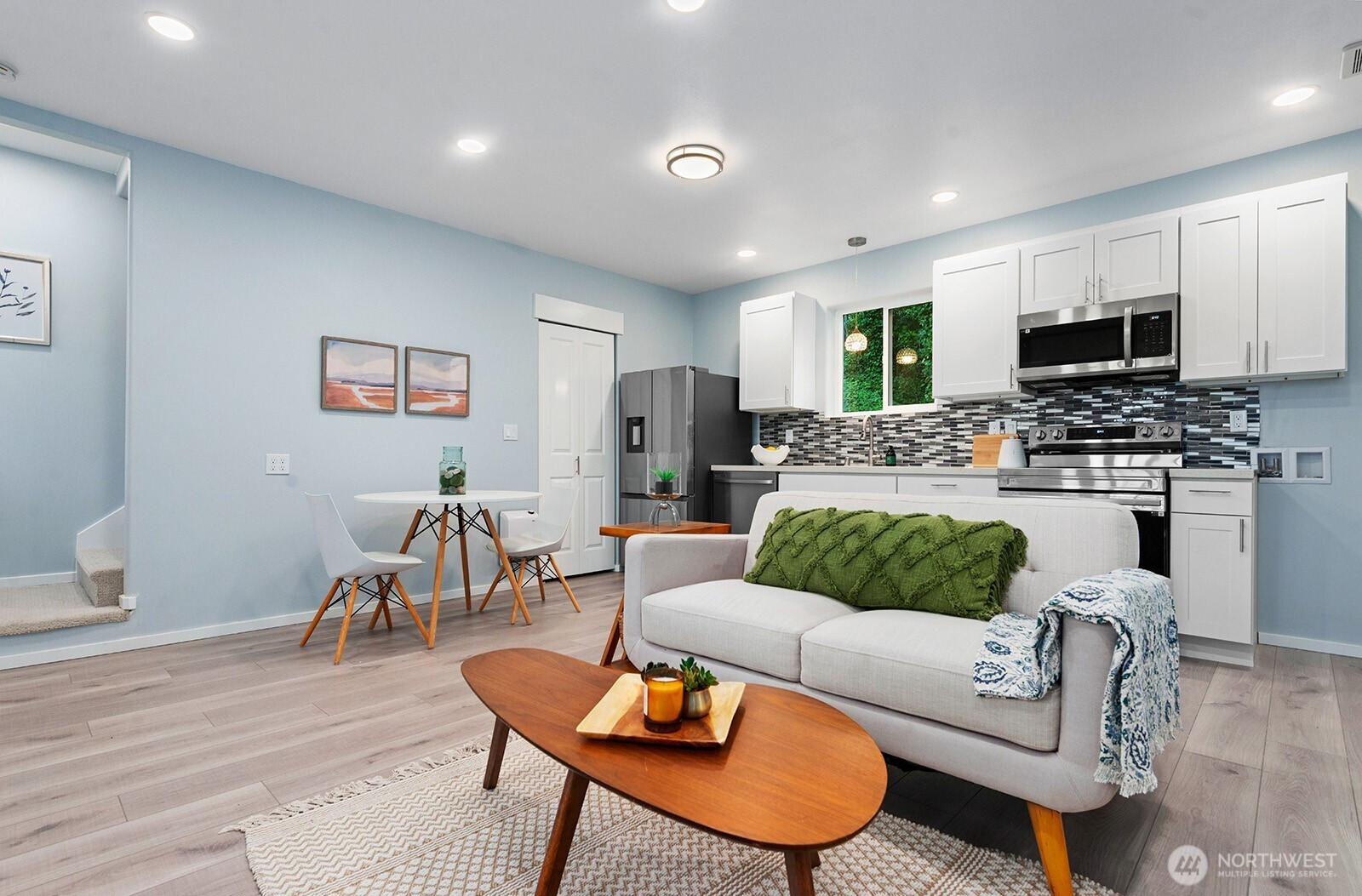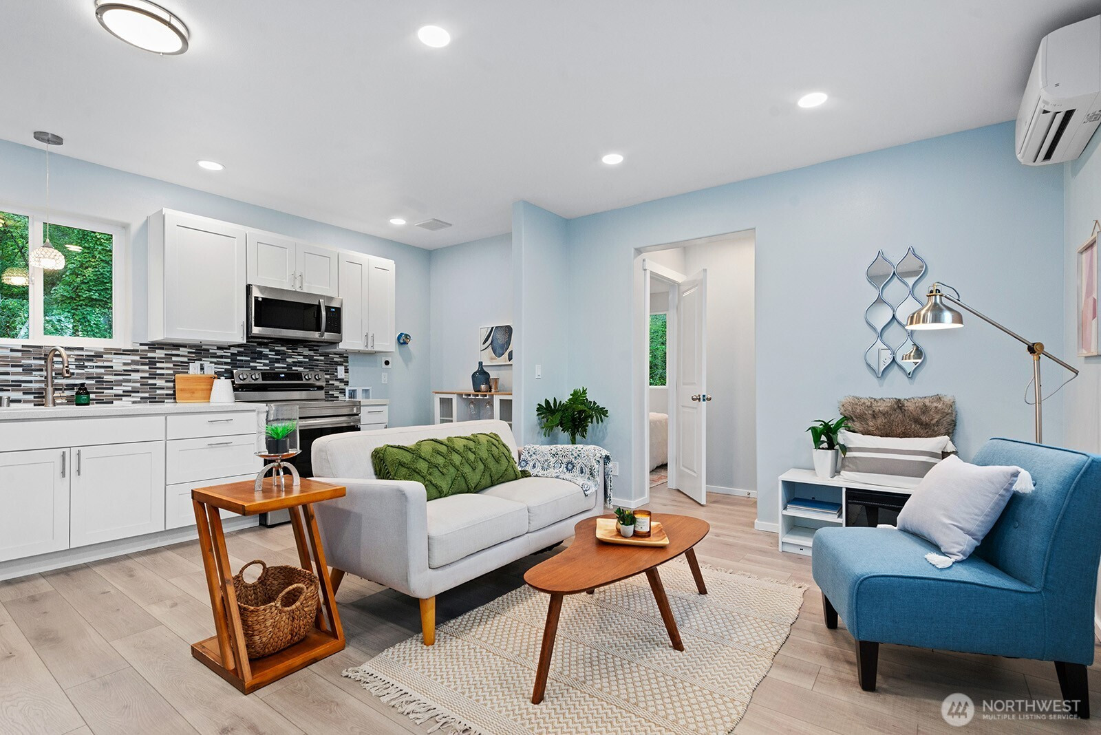 (650)533-3259Nestled in West Seattle, this standalone home blends city living w/tranquil seclusion. Surrounded by a lush greenbelt and spacious patio, this 3-bed, 1¾-bth gem features thoughtfully designed living space. The main-floor bedroom has an oversized walk-in ¾ bath w/luxurious rain shower and fold-up seating, while upstairs offers two more bedrooms and a full bath. Comfort meets convenience: AC splits/electric heating, outdoor 220V plug for EV. Stylish kitchen: White cabinets, Quartz countertops, and premium stainless appliances, fridge, range w/outside exhaust. Located in a serene neighborhood, minutes to Alki Beach, I-5, Water Taxi to downtown, schools, and North Admiral shopping—a perfect mix of urban accessibility and peaceful retreat.