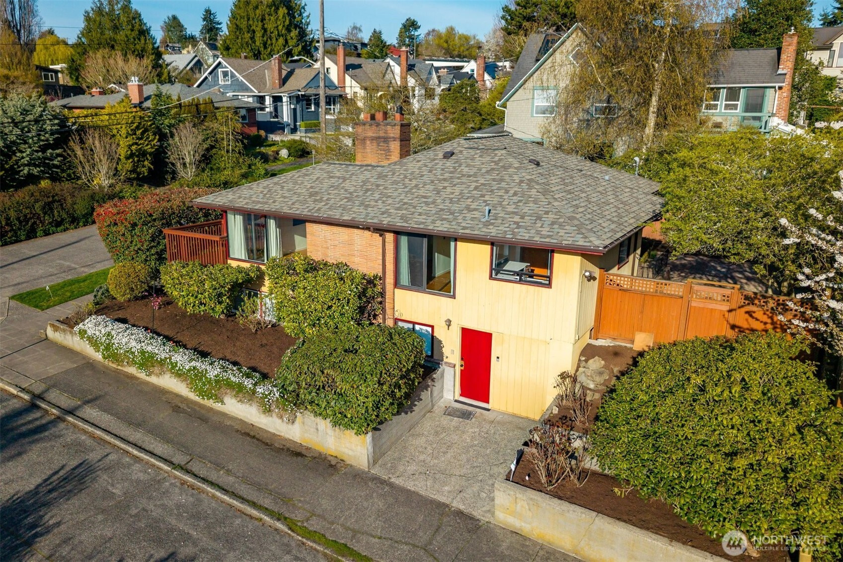 (650)533-3259Mid-modern, Roman Brick-accented Classic on a Sunset Hill corner w/ Sound & Olympic range view, thoughtful updates AND period charm intact. Remodeled kitchen includes stainless appliance suite, quartz counters,"sea glass"-evocative backsplash & island seating open to living & dining rooms. Orig. hardwoods, teak doors & freshly stained, NW-facing deck off living room sliding doors. Downstairs den w/ 2nd fireplace & wet bar w/ Fisher Paykel dishdrawer for easy entertaining wash up! Landscaped yard w/ basalt column fountain & patio seating space. Attached garage currently closed-in for project/hobby space, but could possibly be returned to car storage. Just blocks from Ray's Boathouse, Happy Crab, Ballard Locks and the Burke Gilman trail along Shilshole Bay. Come see!