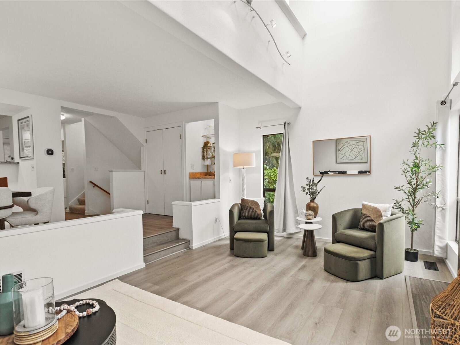 (650)533-3259This one has it all. Beautifully updated 2-bedroom, 2.5-bath townhome that feels like a single-family home. Stylish new flooring throughout the expansive great room, a cozy new wood-burning fireplace, and a chef’s kitchen with stainless steel appliances and a spacious dining area—ideal for hosting and entertaining. BRAND NEW DECK! Upstairs, both bedrooms offer ensuite baths for ultimate convenience. The main floor features a powder room and laundry. The lower level includes a versatile flex space—perfect for a home gym or office. An attached 2-car garage adds ease, all set in a peaceful, wooded community with top-notch amenities: pool, tennis courts, and clubhouse. Ideally located near 520/405. No rental cap! Set up a showing today.