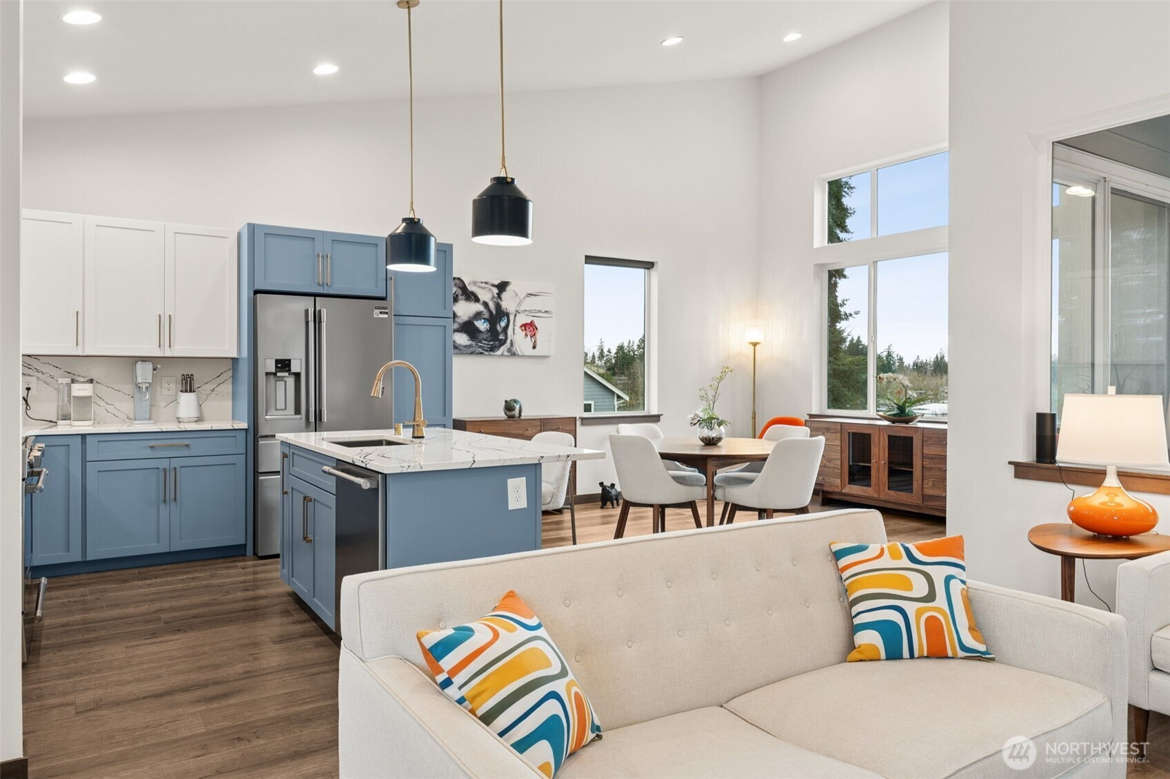 (650)533-3259Loaded with upgrades and quality finishes throughout, this meticulously maintained Angle Lake view home will impress. Stunning, beautifully designed home with open-concept living on the upper level, perfectly positioned to capture spectacular Angle Lake views through full-height windows. The home has been extensively updated with high-quality modern finishes throughout. Recent updates include a new roof, fresh interior and exterior paint, an updated open-concept kitchen, remodeled bathrooms, new fixtures, new lighting, new flooring, heat pump with A/C, new furnace, new water heater, and a finished garage floor. Fully updated island kitchen features updated Frigidaire Professional stainless steel appliances, a gas stove, quartz countertops and backsplash. luxurious five-piece primary suite with custom closet organizer. Enjoy two covered decks, one upstairs and one downstairs, perfect for year-round entertaining and barbecuing while taking in the beautiful lake views. Super clean two-car garage features a polyurea chip floor, built-in cabinets, and overhead storage for exceptional organization. The meticulously landscaped yard includes sprinklers and landscape lighting. Better than new, this exceptional home truly stands out as one of those rare top-tier gems you don’t want to miss.