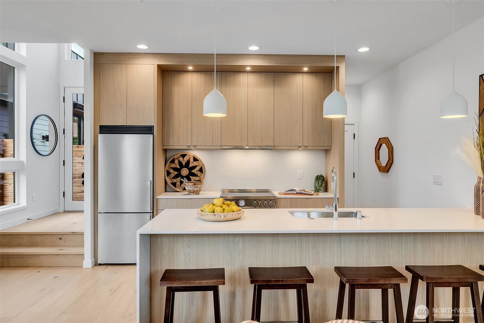 (650)533-3259Premier Seattle builder Block II presents a home that blends comfortable interiors, outdoor amenities, views, and contemporary craftsmanship. Gourmet kitchen with waterfall countertops and full-slab backsplash anchors the open living and dining spaces. Large picture windows bring in abundant natural light and overlook the secluded backyard. Upstairs, two bedrooms and two baths include a serene primary suite with a spacious closet, double-vanity, Carrara marble, a rain shower, heated floors, and a private deck with views of Puget Sound and the mountains. With a garage equipped for EV charging and a location offering both peace and convenience, this home is exceptional. A 4.875% buy-down is available with the preferred lender.