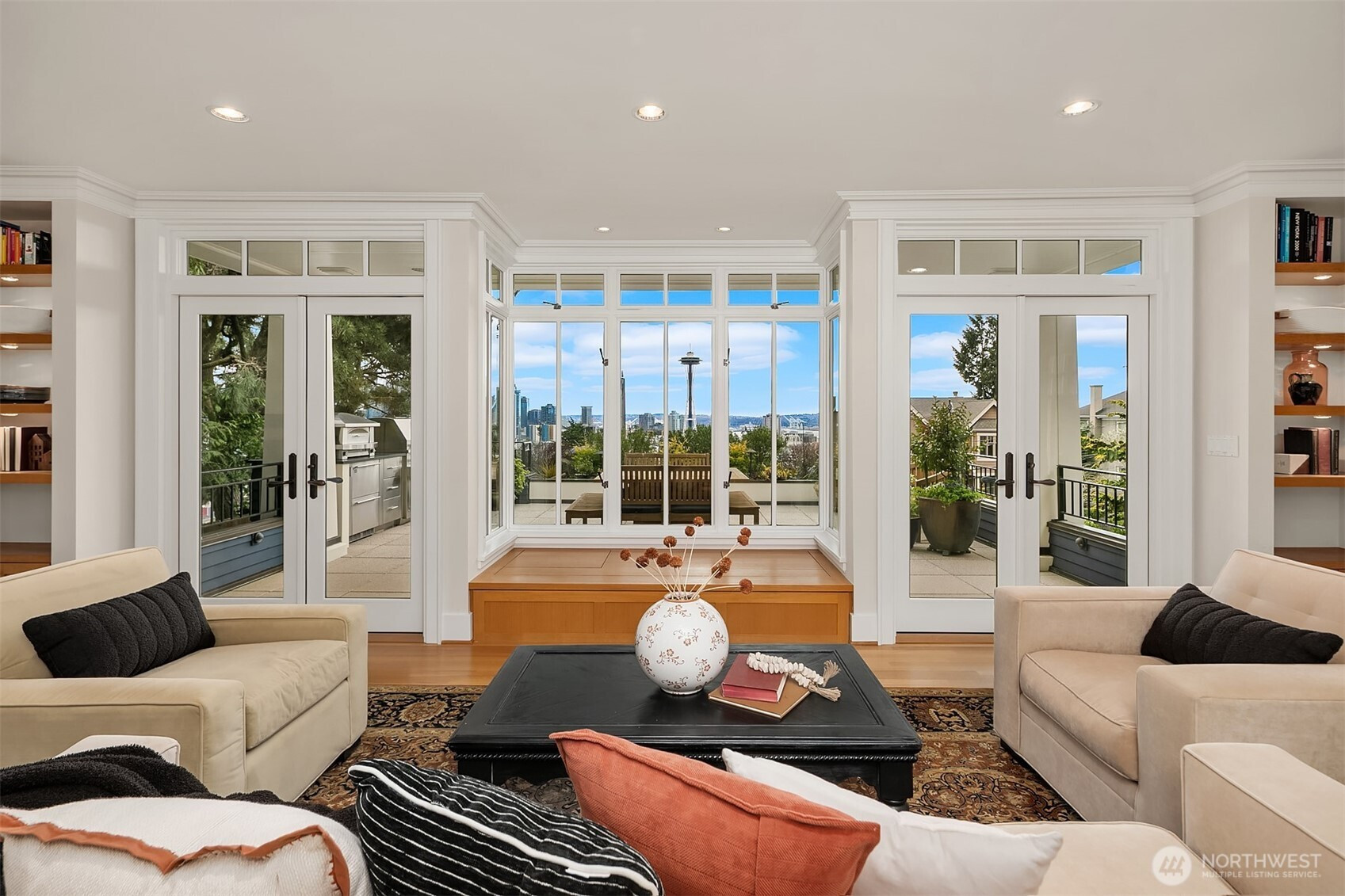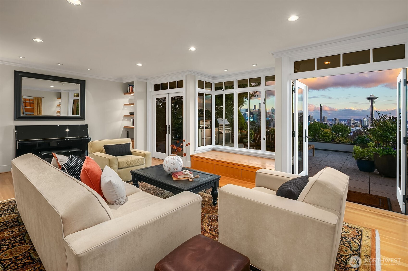 (650)533-3259Thoughtfully renovated under the direction of architect Laurie Carron & remodeled by SBI Construction, the 3 bed, 3.25 bath home pairs refined design w/ highly functional living. Expansive windows frame dramatic city vistas & fill the interiors w/ natural light. The main level is designed for both entertaining & daily living, featuring a chef’s kitchen w/ Sub-Zero fridge & Viking range, formal dining & a living room w/ a hidden tv that opens to an amazing entertainer’s deck w/ built-in pizza oven, grill & panoramic city views. Upstairs, the primary suite offers a private retreat w/ walk-in closet, spa-like bath, a private deck w/ hot tub & home office loft. 2 additional beds, laundry & a full bath complete this level. The lower level provides flexibility w/ a rec room or 4th bed (just add doors), full bath, gym/hobby space & 2nd laundry center. Outdoor spaces in/c landscaped grounds & 2 car garage w/ EV charging, storage, workspace & additional off-street parking. Ideally located near downtown, SLU & Seattle Center w/ access to top-rated schools & iconic holiday fireworks. Offered concurrently with neighboring 360 Highland, this presents a unique opportunity to create a private residential compound defined by scale, flexibility & iconic views.