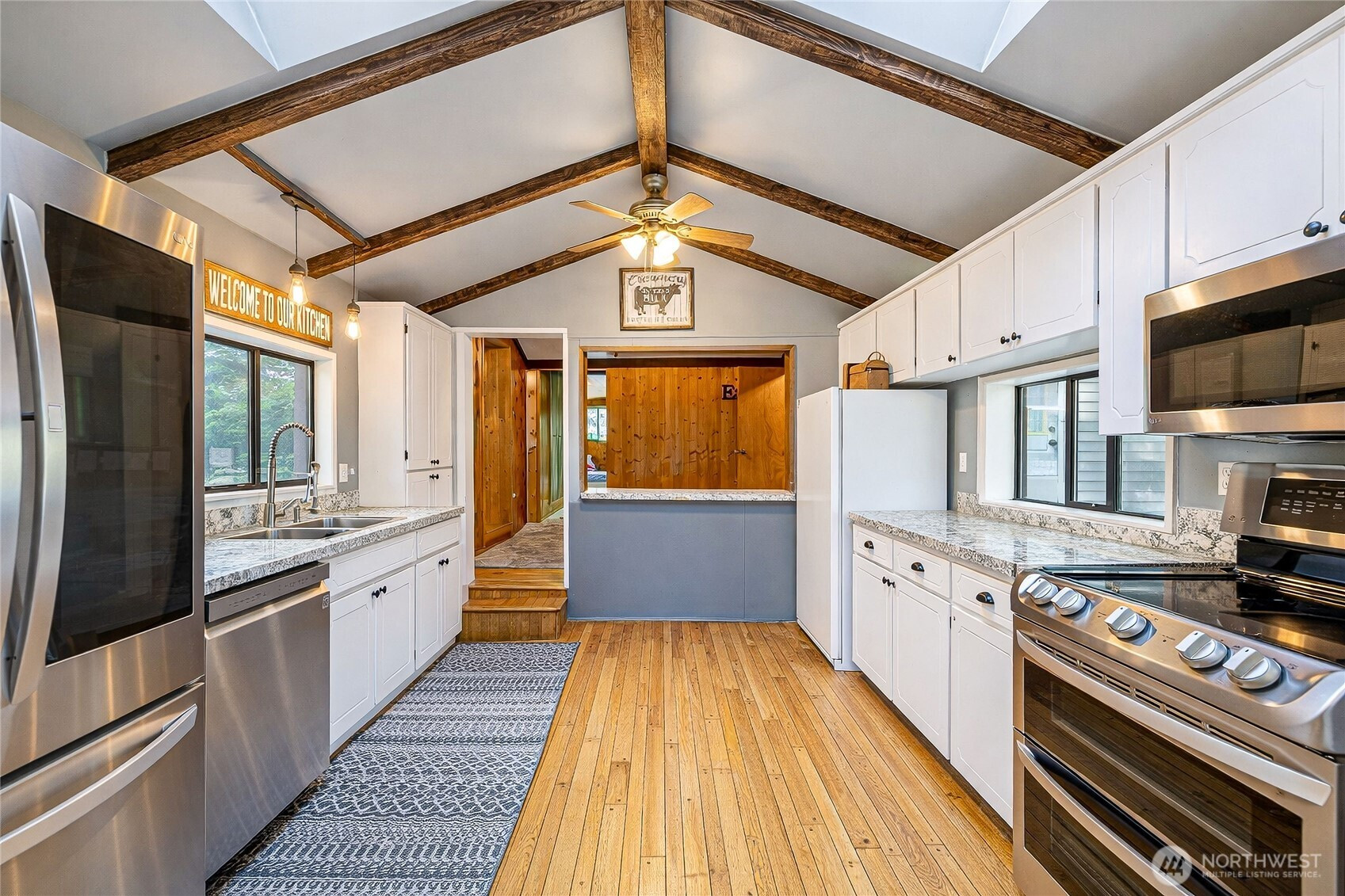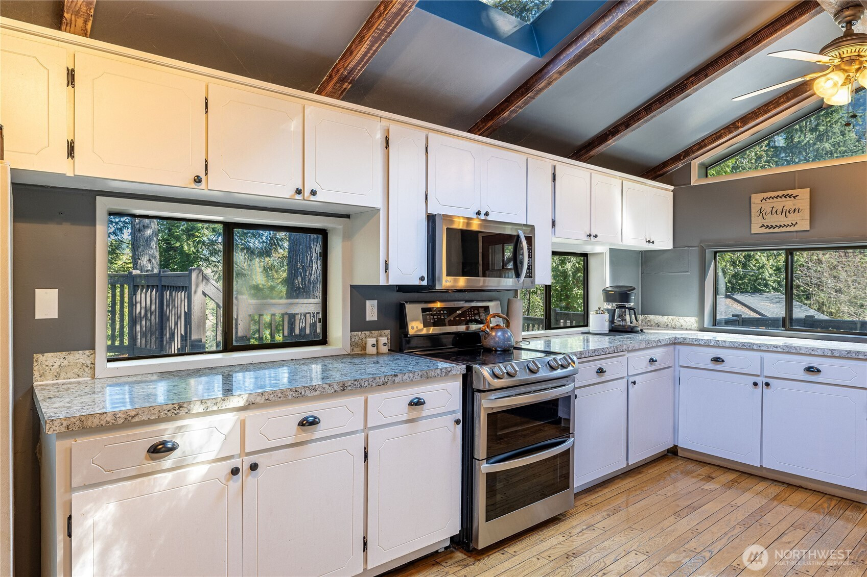 (650)533-3259Nestled in a serene natural setting with beautiful views of Lake Walker, this updated 3-bedroom, 2-bath home offers a perfect blend of comfort and character. The light-filled kitchen features skylights, vaulted ceilings, abundant cabinetry, and includes range, dishwasher, refrigerator, and additional freezer, with an adjacent dining nook for everyday living.The formal dining room showcases a cozy wood stove and built-in china/bar cabinet, adding warmth and charm. Rustic details shine throughout with open beam ceilings, knotty pine accents, and extensive hardwood flooring, complemented by a pellet stove for added efficiency.The spacious primary suite has been thoughtfully updated and features a luxurious 5-piece bath. A versatile bonus room offers flexibility for a home office, guest space, or hobbies.Step outside to enjoy expansive decking, a stamped concrete patio, and trellis—ideal for relaxing or entertaining in a peaceful setting. The property also includes multiple outbuildings, carport, RV parking, and a garden shed, with potential for a MIL suite or additional office space.A rare opportunity to enjoy tranquil living with modern updates, functional space, and scenic surroundings.