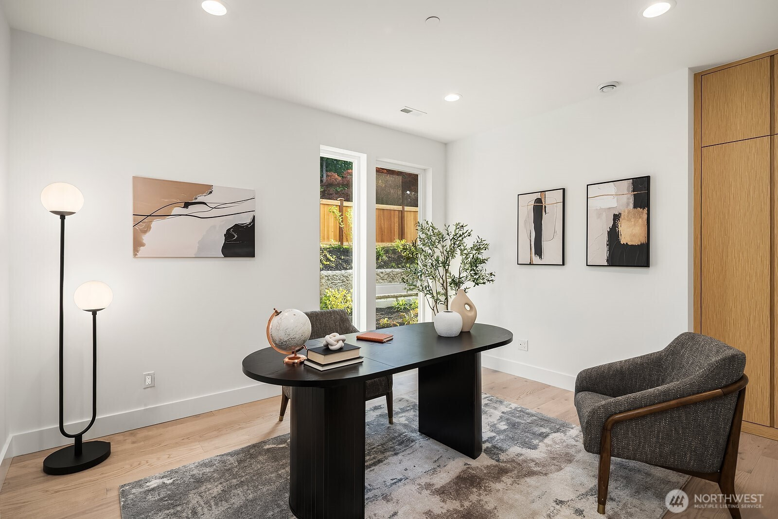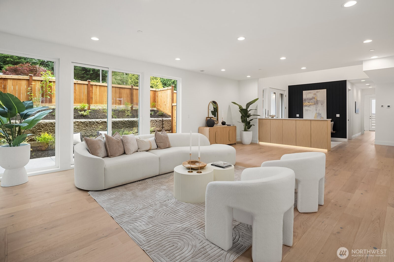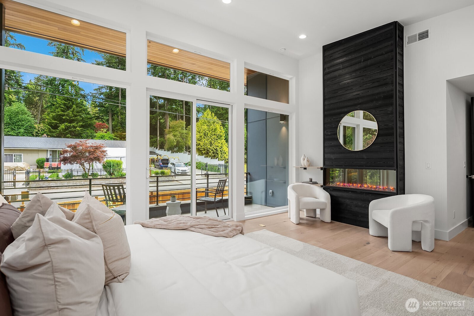 (650)533-3259NO HOA. Scandinavian Zen–inspired new construction with 6 beds/5 baths. Soaring 9–12 ft ceilings and expansive windows provide natural abundant light. Open-concept living centers around a gourmet chef’s kitchen with Thermador S/S appliances and sleek cabinetry. Main-floor guest en-suite offers flexibility for visitors or multigenerational living. Upstairs features a private primary suite with spa-like bath, additional bedrooms with shared bath, a media room, laundry room, with bedroom wings separated by a striking sky bridge for privacy. Fully acoustic engineered walls, integrated LED lighting, advanced air filtration, epoxy garage floors, and a fully fenced low-maintenance yard. Easy access to shopping, dining, DT Bellevue and Seattle.