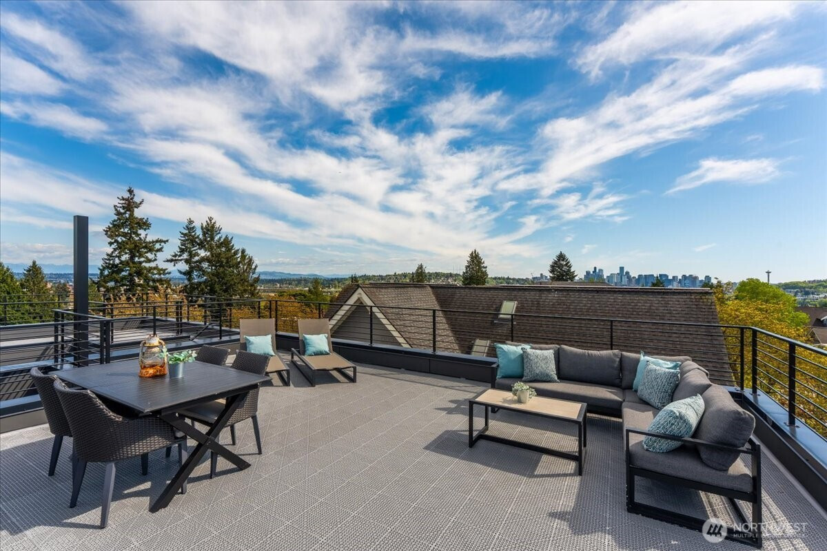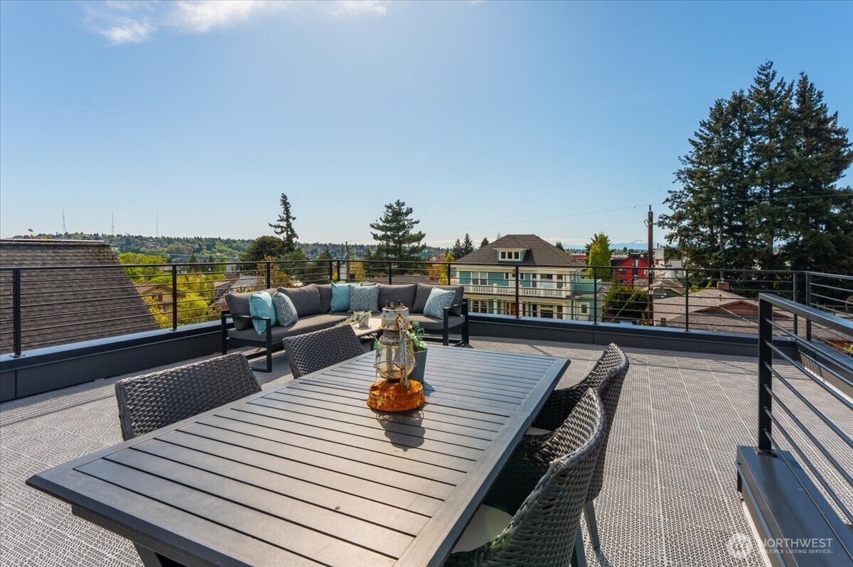 (650)533-3259Stunning new construction by Build Sound, ideally positioned in the heart of Wallingford. This thoughtfully executed 3-bedroom + OFFICE, 2.25 bath home showcases crisp modern architecture, clean lines, REAL hardwood floors, elevated finish quality, and picturesque Seattle views. The main level features an open-concept kitchen designed for entertaining, complete with sleek custom cabinetry, a generous island, and high-end stainless steel appliances. The expansive windows flood the living and dining areas with natural light and the built-ins deliver custom-level detailing. On the second floor, you’ll find two bedrooms, a full laundry room, and a stylish shared bath. The third level is a true primary retreat, offering a walk-in closet, a luxurious ensuite bathroom, and a versatile bonus space ideal for a home office, den, nursery, or additional closet space. Top it all off with a spectacular rooftop deck showcasing sweeping views of the Olympic + Cascade Mountains and the Space Needle and cityscape —an entertainer’s dream and a serene escape. With a Walk Score of 91, enjoy effortless access to Wallingford’s vibrant lineup of shops, restaurants, cafes, parks, and more. Additional highlights include dedicated EV ready off-street parking, mini-splits for efficient heating and cooling, fully fenced + landscaped front yard, and easy access to I-5 and Highway 99. If you’re looking for well-located new construction built to last, this exceptional home checks every box.