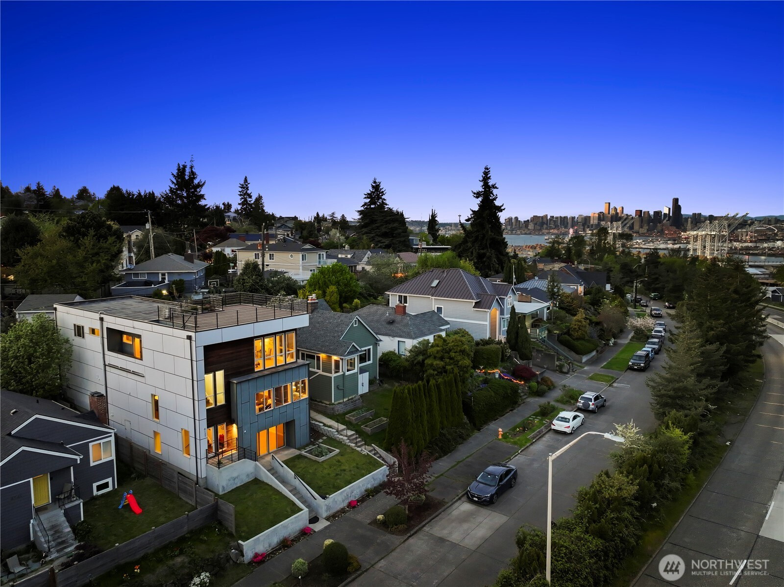 (650)533-3259Best House in West Seattle! Modern style meets classic West Seattle living in this light-filled home with stunning views of Elliott Bay, the downtown Seattle skyline, and Mt. Rainier. Fresh new interior paint and brand-new carpet make this home truly move-in ready—just in time for summer entertaining! The open-concept main floor is designed for gathering, featuring warm hardwoods, a cozy gas fireplace, walk-in pantry, and a chef’s kitchen with premium stainless steel appliances. Step onto the private deck for morning coffee or sunset dinners with the city as your backdrop. Upstairs, the spacious primary suite is a peaceful retreat with Mt. Rainier views, a luxurious oversized bath, and generous closet space. Three additional large bedrooms offer flexibility for guests, home office needs, or play space. The rooftop deck is the true showstopper—host unforgettable summer nights under the stars with sparkling downtown lights, partial Emerald City views, and views stretching across Elliott Bay. Fourth of July & New Year’s Eve fireworks! The lower level offers a versatile media/rec room, powder room, and access to a private concrete patio—perfect for game day, movie nights, or guests. Complete with a spacious 2-car garage and close to West Seattle’s beaches, cafes, restaurants, and easy downtown and freeway access, this home delivers the best of city living with neighborhood charm.