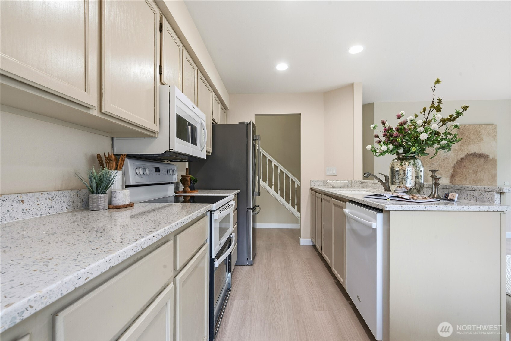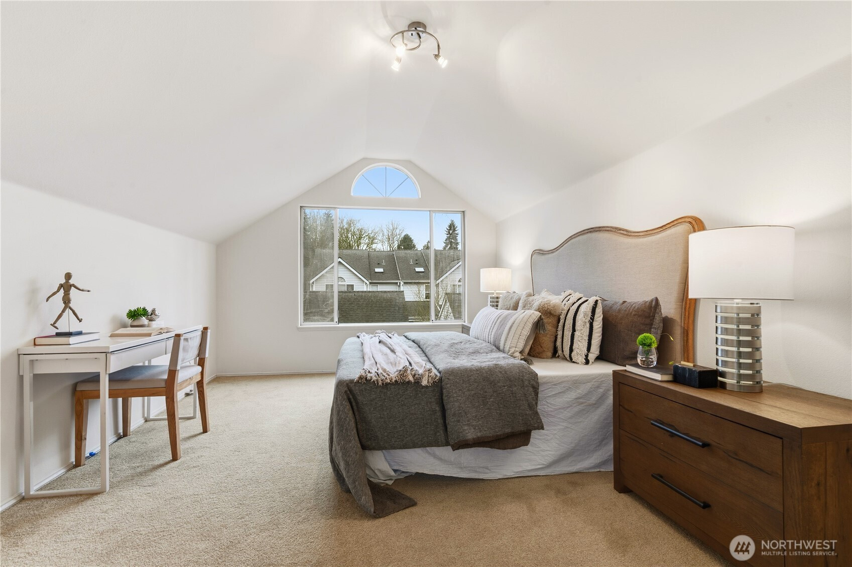 (650)533-3259Welcome to Summerset Creek! This beautifully updated, light-filled end-unit townhome is ideally located in the highly sought-after Bellevue School District, within walking distance to Tyee Middle School and Newport High School. The main level features two spacious bedrooms, including a private primary suite with vaulted ceilings and an en-suite bath—perfect for comfortable main-floor living. Recent upgrades include fresh interior paint, new flooring, creating a clean, modern, and move-in-ready feel throughout. Enjoy an updated kitchen that opens to a cozy family room with a classic wood-burning fireplace, along with a large and open formal living and dining area—ideal for both everyday living and entertaining. Step outside to a new Trex-style back deck, perfect for outdoor dining or relaxing. Upstairs, you’ll find a generous third bedroom with a walk-in closet, offering flexible use as a guest suite, bonus room, or media/TV room. A detached two-car garage adds convenience and extra storage. Conveniently located near freeways, shopping, dining, and everyday amenities, this home truly combines comfort, functionality, and an unbeatable location. HOA dues include water/sewer and garbage.