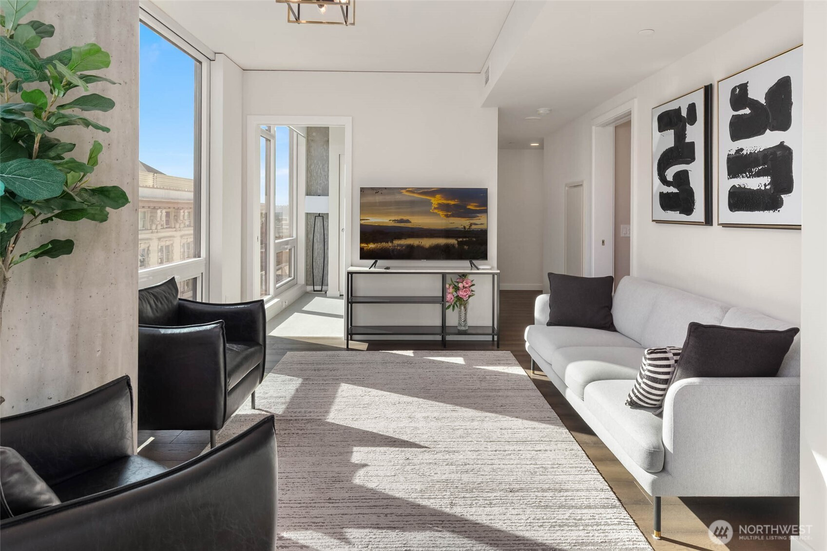 (650)533-3259Welcome to KODA, a modern concrete and steel high-rise in Seattle's vibrant International District. This beautifully designed 2-bedroom, 2-bath residence offers 870 square feet of light filled living with expansive floor-to-ceiling windows that frame sweeping city, neighborhood, and hillside views. The open-concept layout seamlessly connects the living, dining, and kitchen spaces, creating an ideal flor for both everyday living and entertaining. The Sleek contemporary kitchen features glossy cabinetry, quartz countertops, stainless steel appliances, an integrated cooktop, and clean modern finishes. The spacious primary suite offers generous space for a king-sized bed and a spa-inspired bath with modern tile. The thoughtfully designed second bedroom features a custom integrated Murphy bed system that easily transforms the space into a functional home office or guest room, maximizing flexibility without sacrificing comfort or style. This residence is being sold fully furnished, offering a true turnkey opportunity ideal for owner-occupants, part-time residents, or investors seeking a move-in-ready Seattle condo. Additional conveniences include in-unit washer and dryer, convenient underground reserved parking-just off the elevator, and a dedicated storage unit. Located in the heart of the International District, KODA provides secured entry and unbeatable access to Downtown Seattle, Stadiums, and public transportation including Bellevue's new connection.