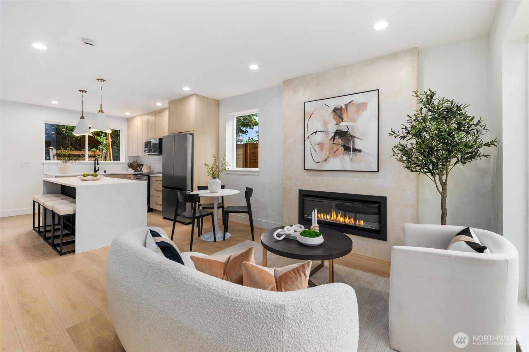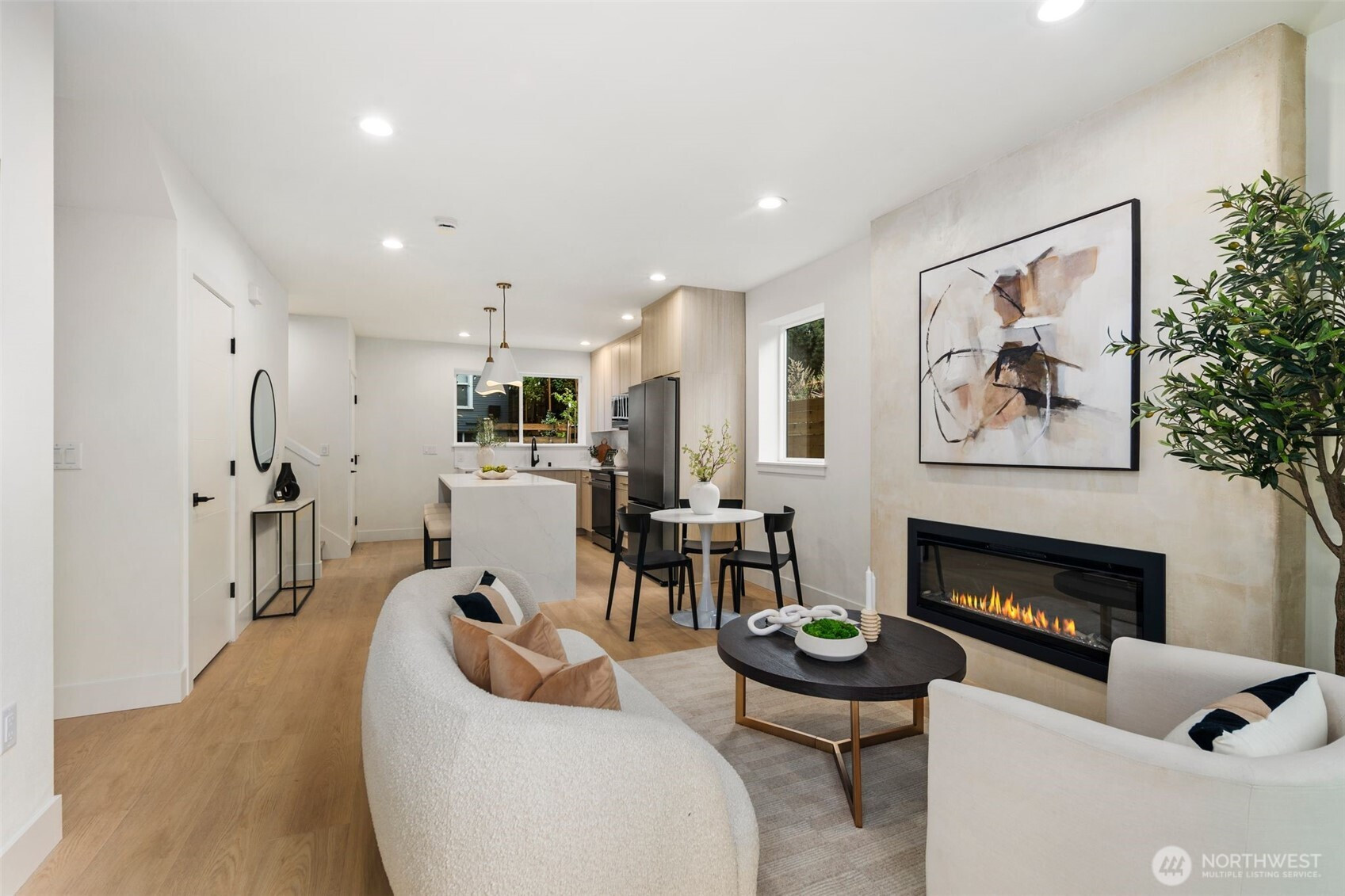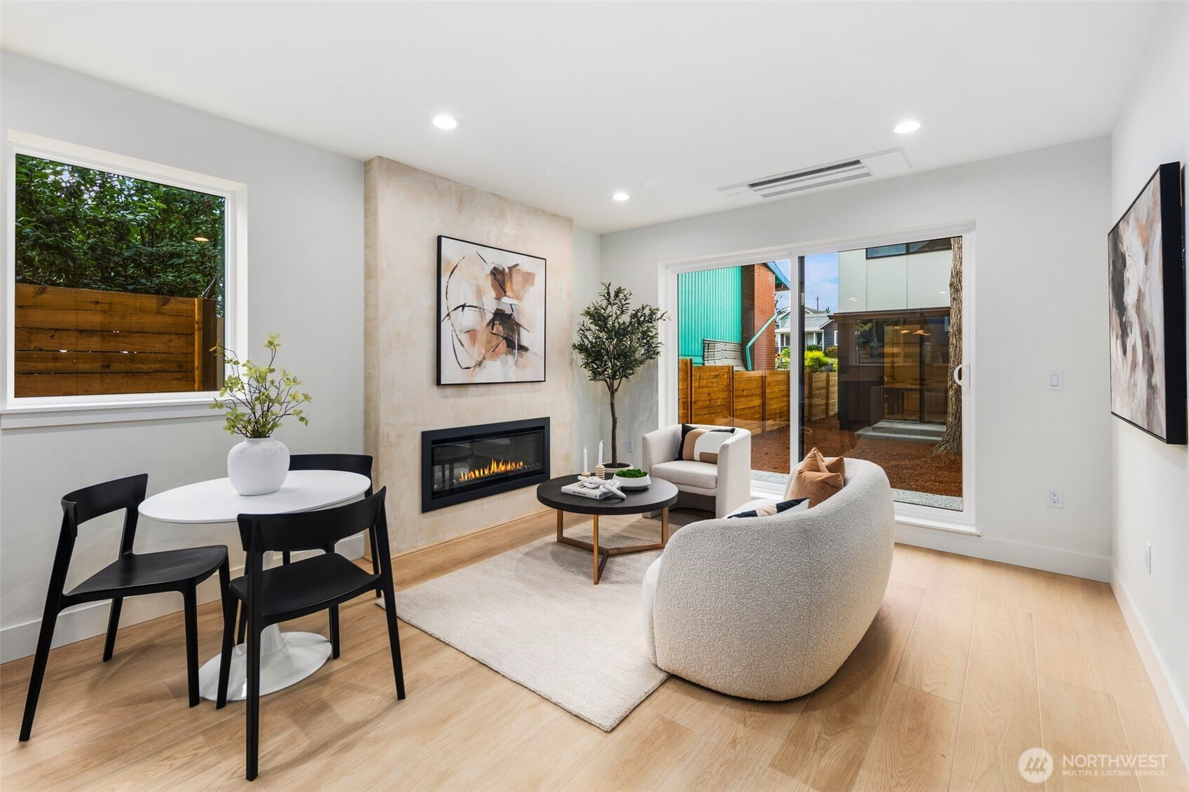 (650)533-3259Rare find in the Hillman City neighborhood. Nestled in the back. Has its own 1 car garage and plenty of street parking. Lots of upgrades and features. Open floor plan with abundance of windows. Kitchen with quartz counter tops and full backsplash. Stainless steel appliances. Recessed lighting throughout. Great room concept with dining room and fireplace. Fireplace for those cozy days. Split systems for efficient heat and A/C. Luxury vinyl planks throughout. Dual sinks in primary bath. Vaulted ceilings in 2nd floor. Tile in bathroom floors, walls, tub and shower surround. Check out this modern beauty.