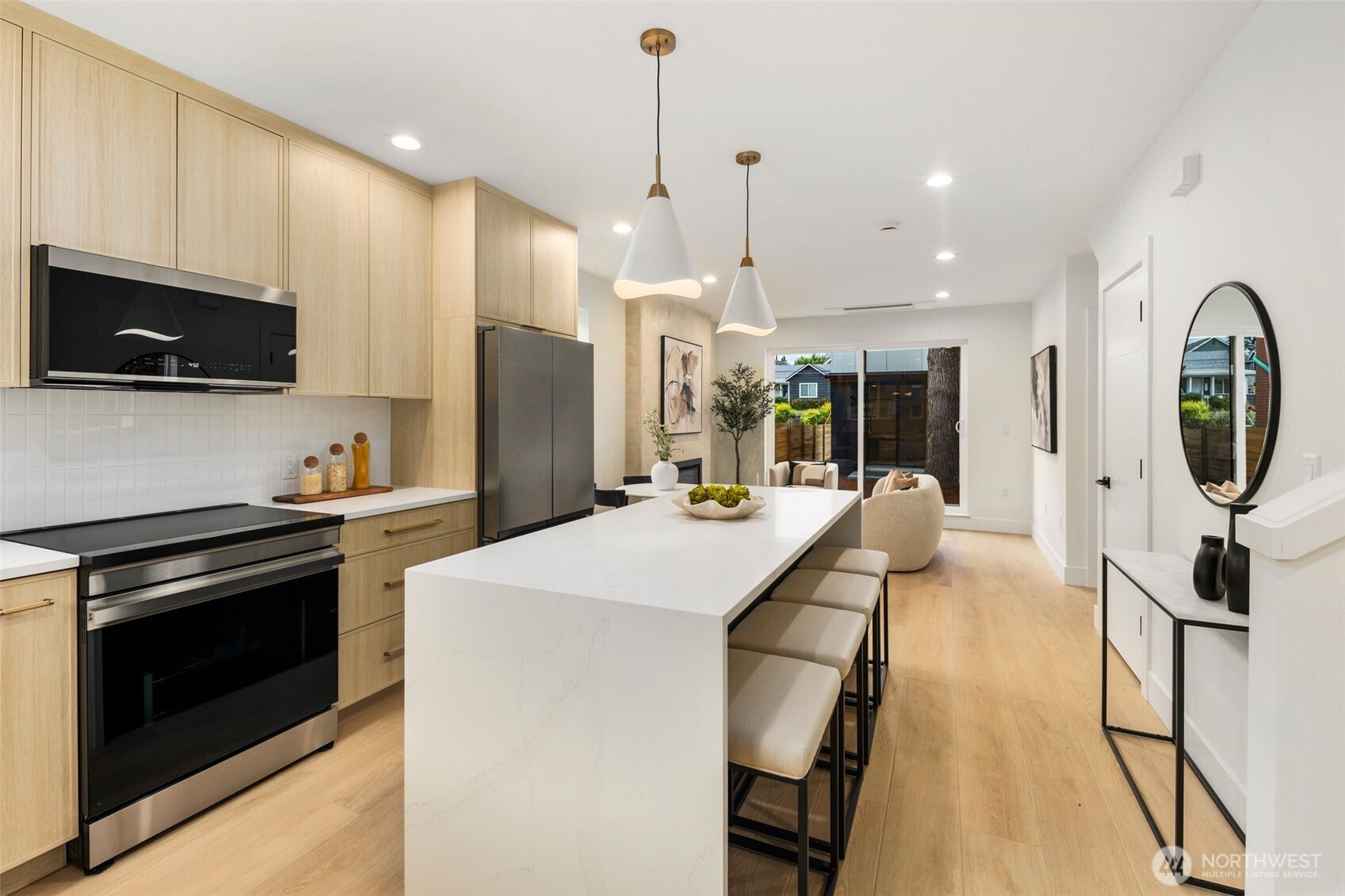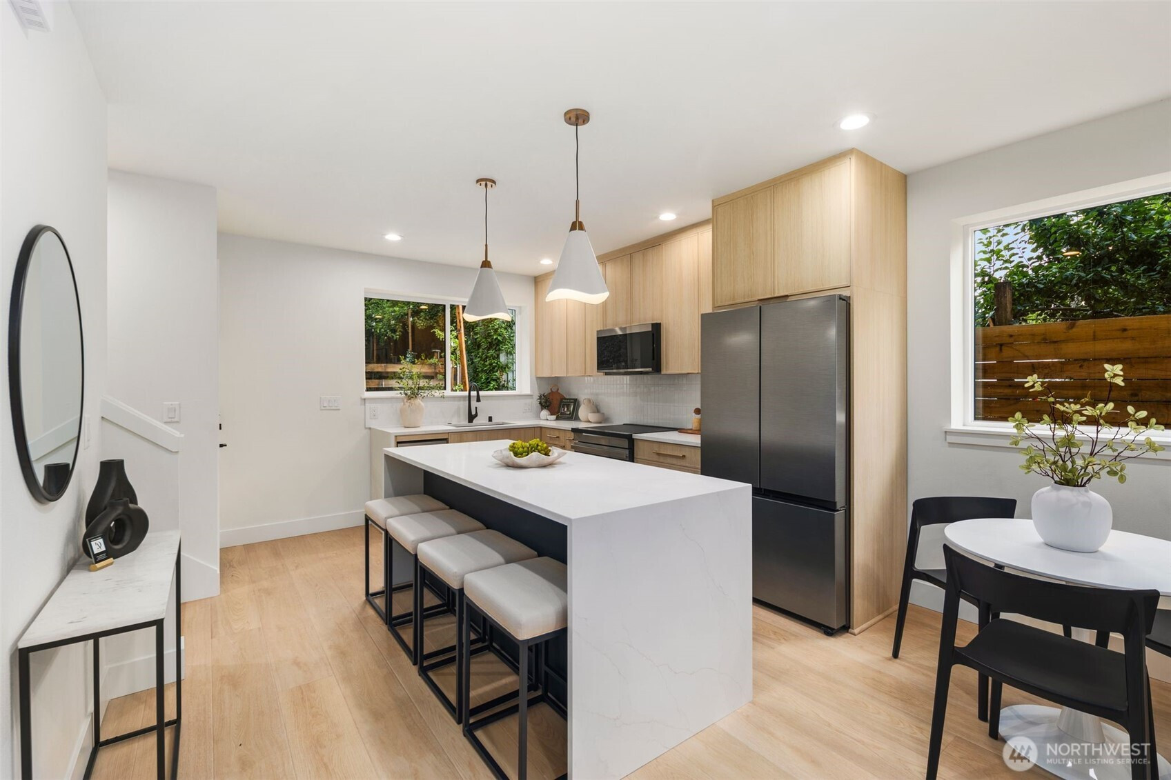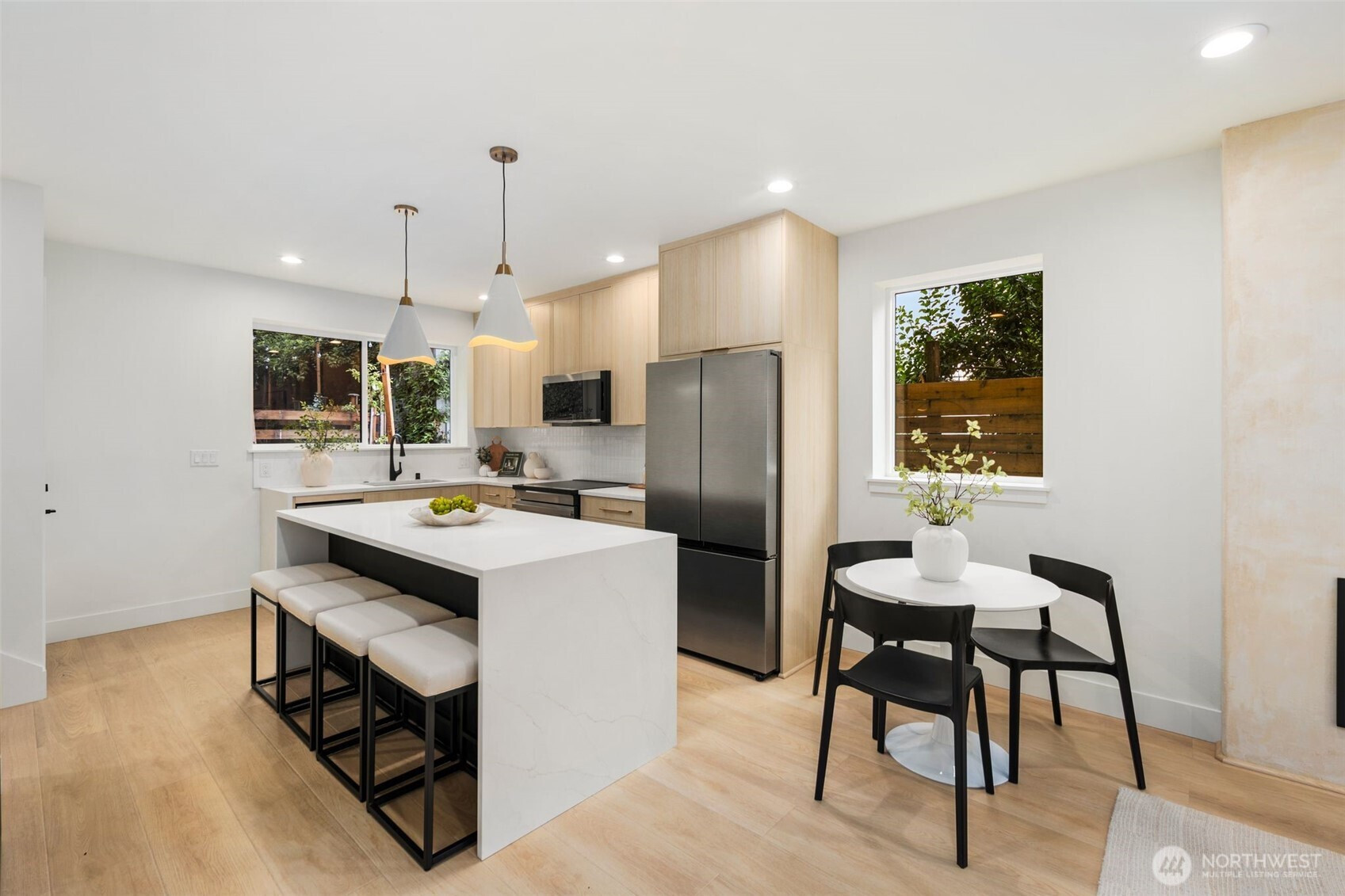 (650)533-3259Rare find in the Hillman City neighborhood. Nestled in the back. Has its own 1 car garage and plenty of street parking. Lots of upgrades and features. Open floor plan with abundance of windows. Kitchen with quartz counter tops and full backsplash. Stainless steel appliances. Recessed lighting throughout. Great room concept with dining room and fireplace. Fireplace for those cozy days. Split systems for efficient heat and A/C. Luxury vinyl planks throughout. Dual sinks in primary bath. Vaulted ceilings in 2nd floor. Tile in bathroom floors, walls, tub and shower surround. Check out this modern beauty.