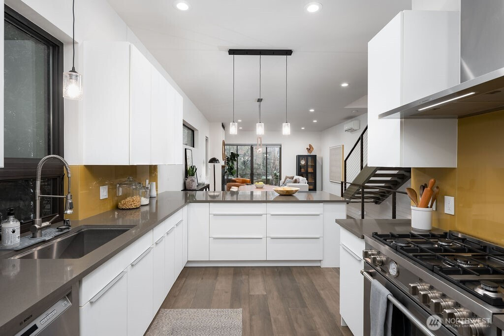 (650)533-3259Welcome to fun, fresh Fremont, Seattle's own time capsule of culture, "The Center of The Universe"! World-Class dining and vibrant street art, fantastical parades, the Zoo, live music & the Fremont Cut Tech hub a few blocks in each direction. Stunning curb appeal with custom wood exterior & feature lighting; gracious interior detailing and custom features, 10 Ft ceilings, a sprawling living room centered on an architectural floating staircase; Luxurious, spa-like bathrooms, premium appliances, & a spectacular rooftop terrace in the trees with sweeping views of Seattle and Rainier. Private yard with covered deck. A full self-contained ADU on the main floor, (4th bedroom) A veritable private oasis in the heart of Seattle's favorite enclave.