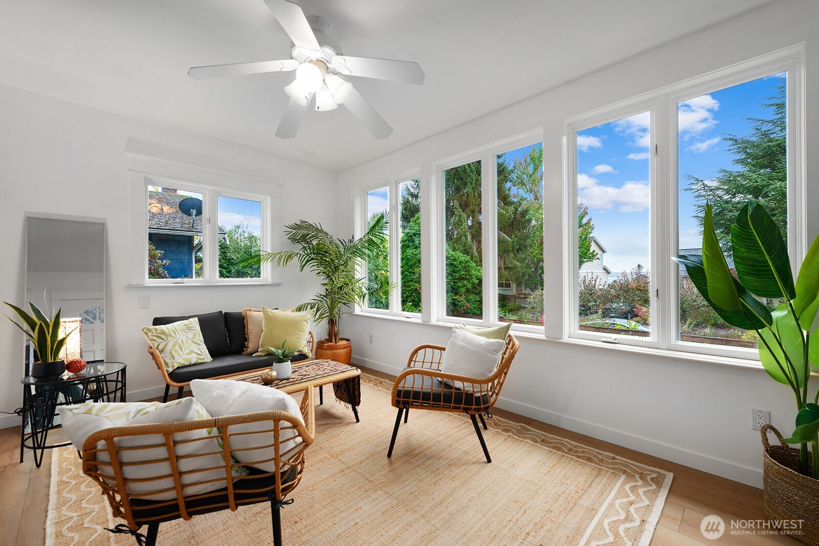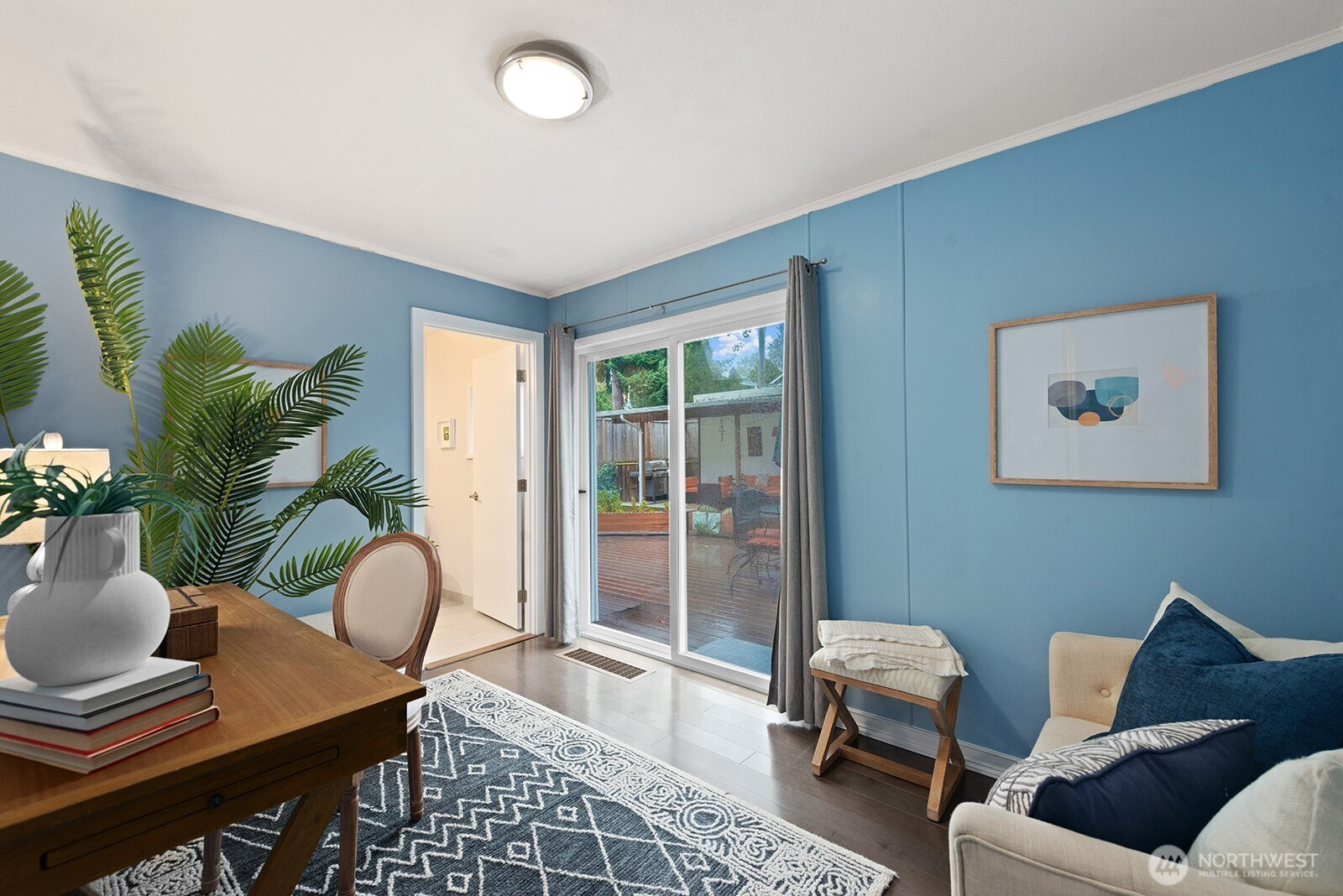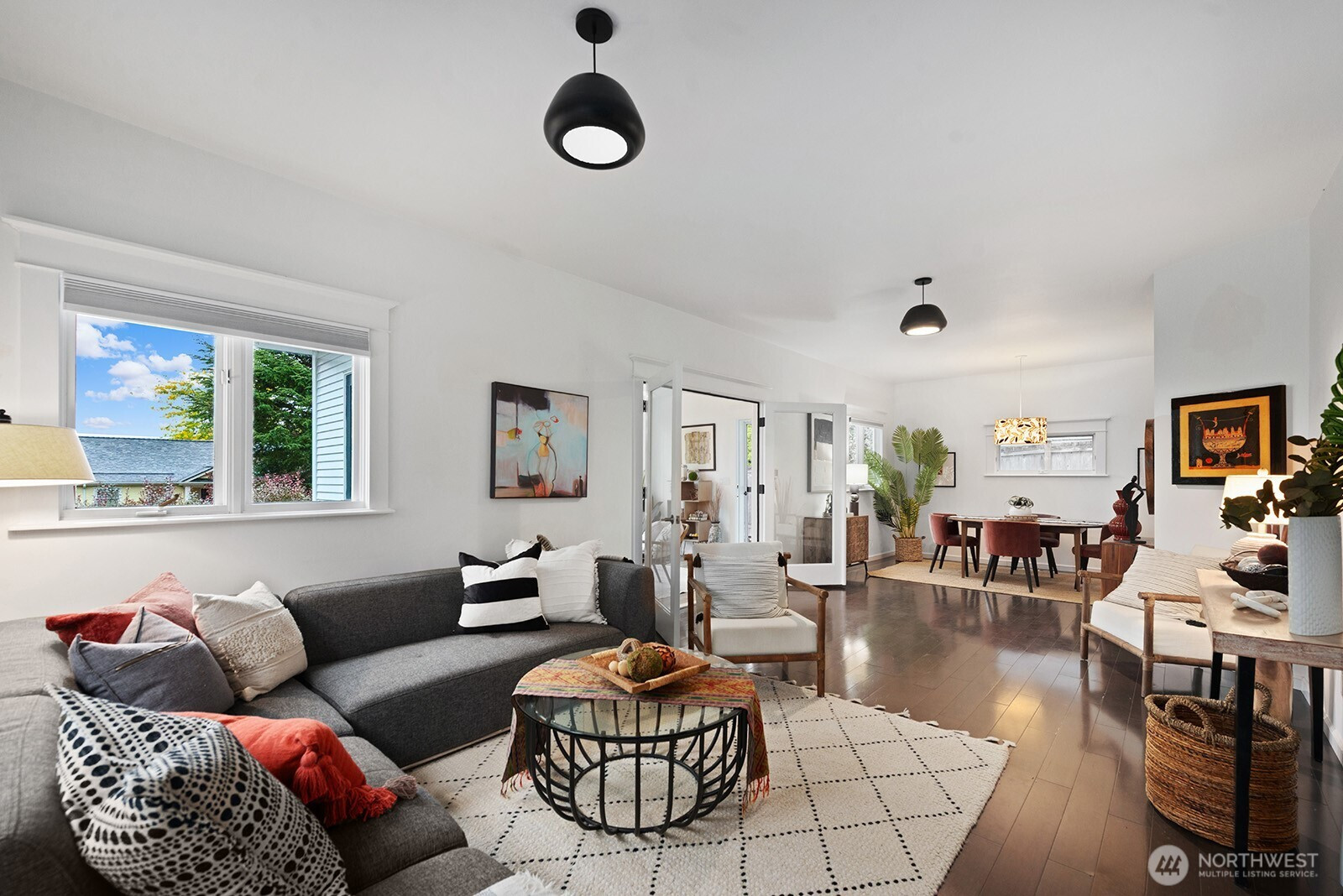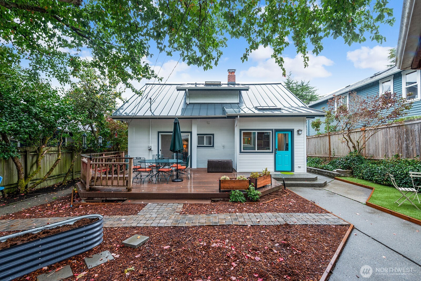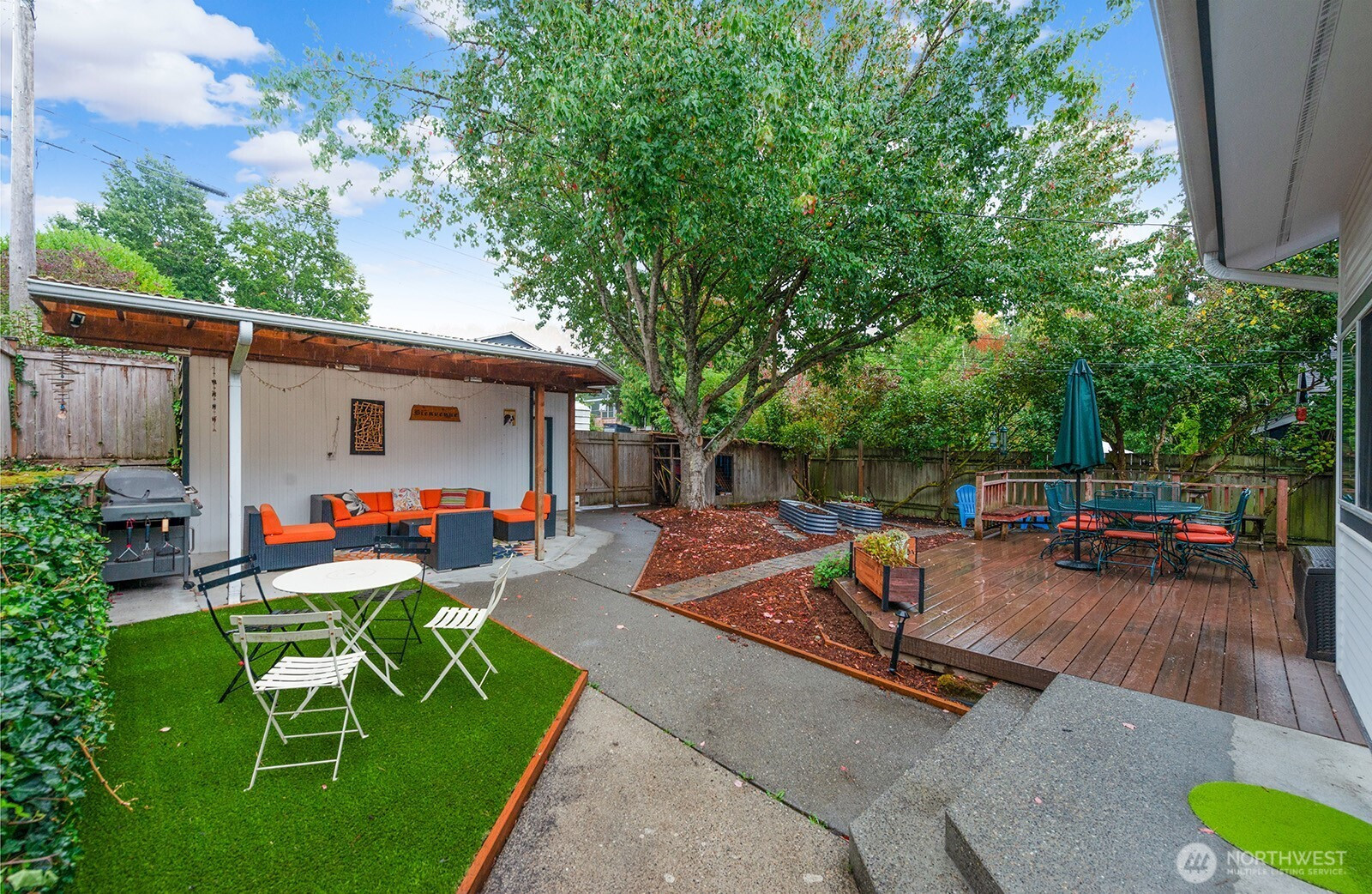 (650)533-3259Delightful Craftsman style home in the heart of the Seaview neighborhood.Enchanting sun room entry with French doors and peek views, open living/dining room with tall ceilings, big windows, hardwoods, great entertaining space. Updated kitchen has Viking range, butcher block countertop & plenty of cabinets. Mudroom leads to spacious deck in private, fenced back yard. Main level den or 4th bedroom with 3/4 bath & sliders to deck, a great guest suite! Freshly carpeted upstairs has 3 bedrooms including primary with private deck & sweet Sound views. Full bath serves this level. Unfinished basement is utility, laundry & storage. Gas heat & hot water. Garage currently used as climbing gym/shop could be converted. Wonderful location & neighborhood!