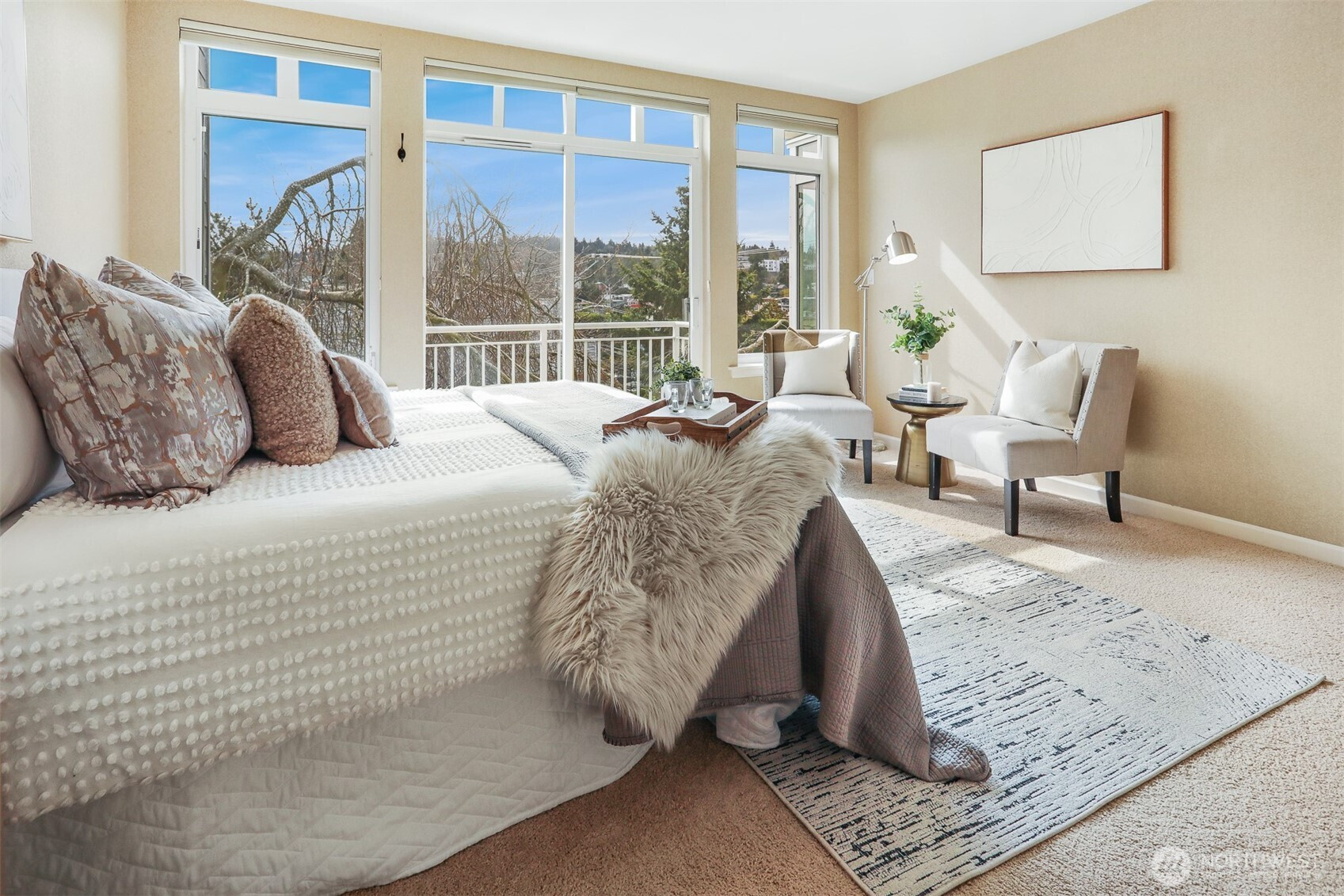 (650)533-3259Hurry to this desirable top floor corner unit, it won't last long! Outstanding Puget Sound views! Watch the boats navigate the ship canal and enjoy stunning sunsets over the Olympic Mountains. Walls of windows allow so much natural light that it's even bright on a cloudy day! This spacious 1,587sq. ft. home has an open floorplan that flows well. The gourmet kitchen features Granite countertops, breakfast bar and stainless appliances. Formal dining room is big enough to host dinner parties. Comfortable living room has a cozy gas fireplace and direct access to the view deck. The primary suite has its own full bathroom with dual sinks, separate walk-in shower stall and luxurious soaking tub. It also has a private balcony and large walk-in closet with built-in organizers. Second bedroom has a double closet and big windows. The second full bathroom has heated flooring with attractive stone tile and designer fixtures. There is also a den with custom built-in bookshelves, a desk and plenty of cabinets. Perfect for a home office or crafts room. Full sized front loading washer and dryer are easily accessible. Two parking spaces in secured garage and big storage locker. All this located in an amazing waterfront neighborhood! Famous Ray's Boathouse is just across the street. A public saltwater beach access is less than a block away. Beautiful Shilshole Marina and boat launch are perfect for avid boaters. Popular Golden Gardens Beach Park is just down the street. WOW!