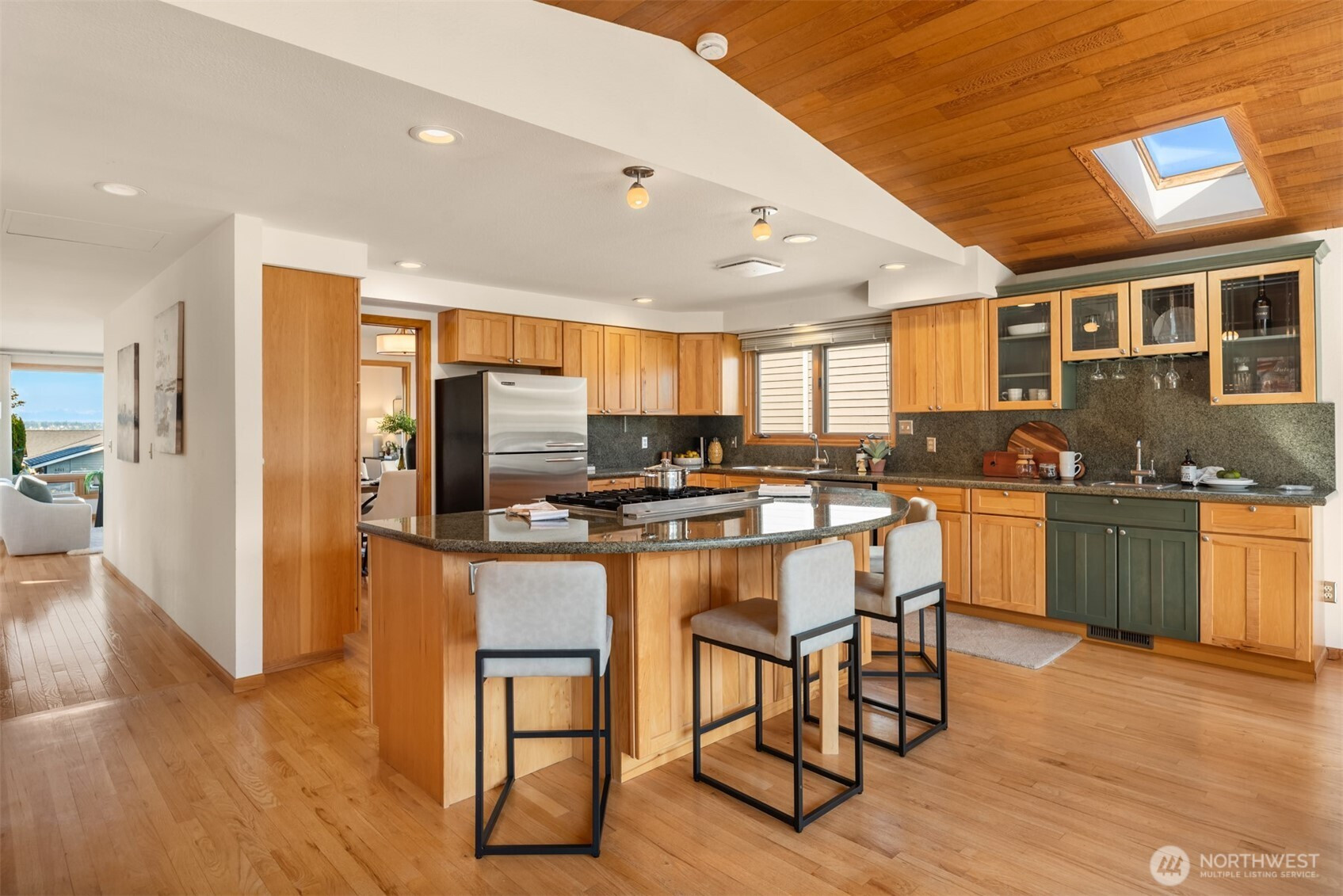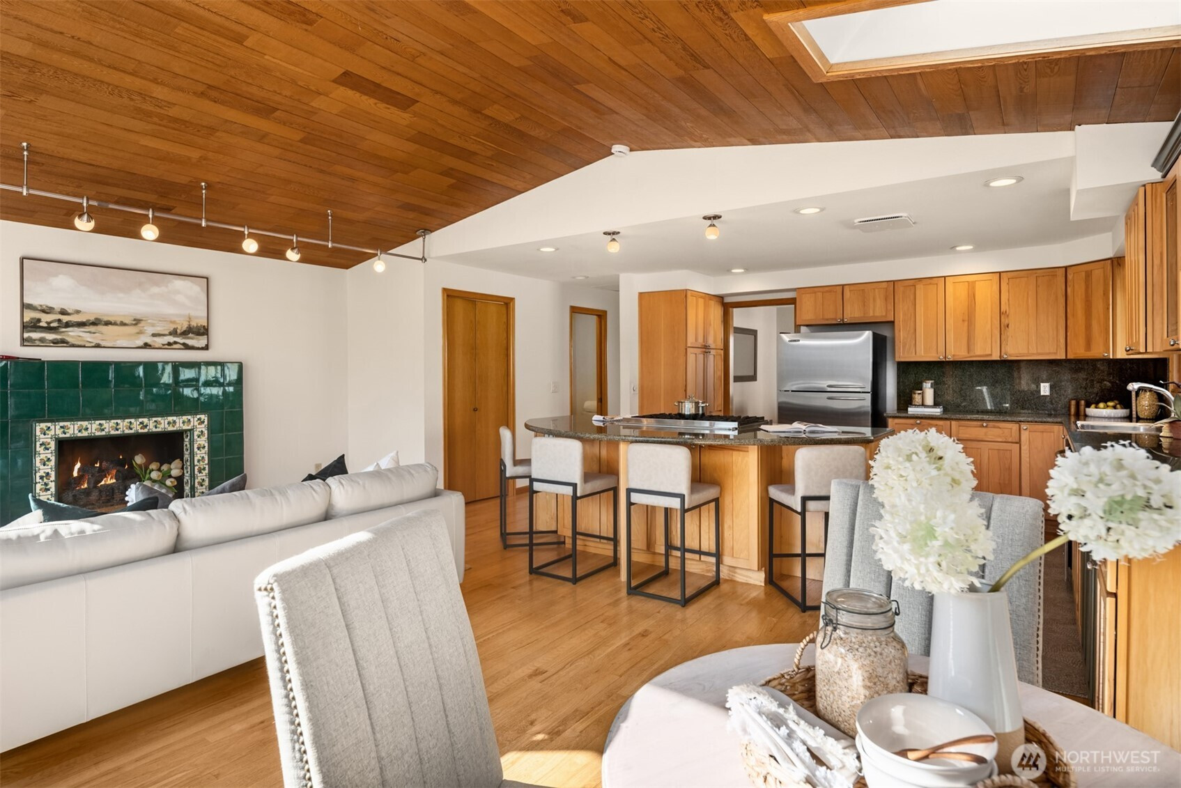 (650)533-3259Welcome to one of West Houghton's finest addresses — a serene cul-de-sac where breathtaking west-facing views of the snow-capped Olympic Mountains and spectacular evening sunsets greet you daily. The Cross Kirkland Corridor trail entrance is just half a block away, and Houghton Beach Park, Carillon Point's marina and waterfront restaurants, Lake Washington, Google Campus, downtown Kirkland, Metropolitan Market, and Lakeview Elementary are all within blocks.Inside, a fully reimagined primary suite stuns with spa-caliber bath, custom ceramic tile, and an expansive walk-in closet with built-ins. The updated kitchen features a large island and professional Viking 6-burner gas cooktop, opening directly to a generous deck and a beautifully private backyard — flat, fully usable, with a lush grass lawn, mature landscaping, and built-in garden space perfect for the avid grower. Three gas fireplaces add warmth and ambiance throughout. Downstairs, a bedroom, ¾ bath, and oversized rec room offer compelling MIL conversion potential. Light, airy, and lovingly curated — this one is special.