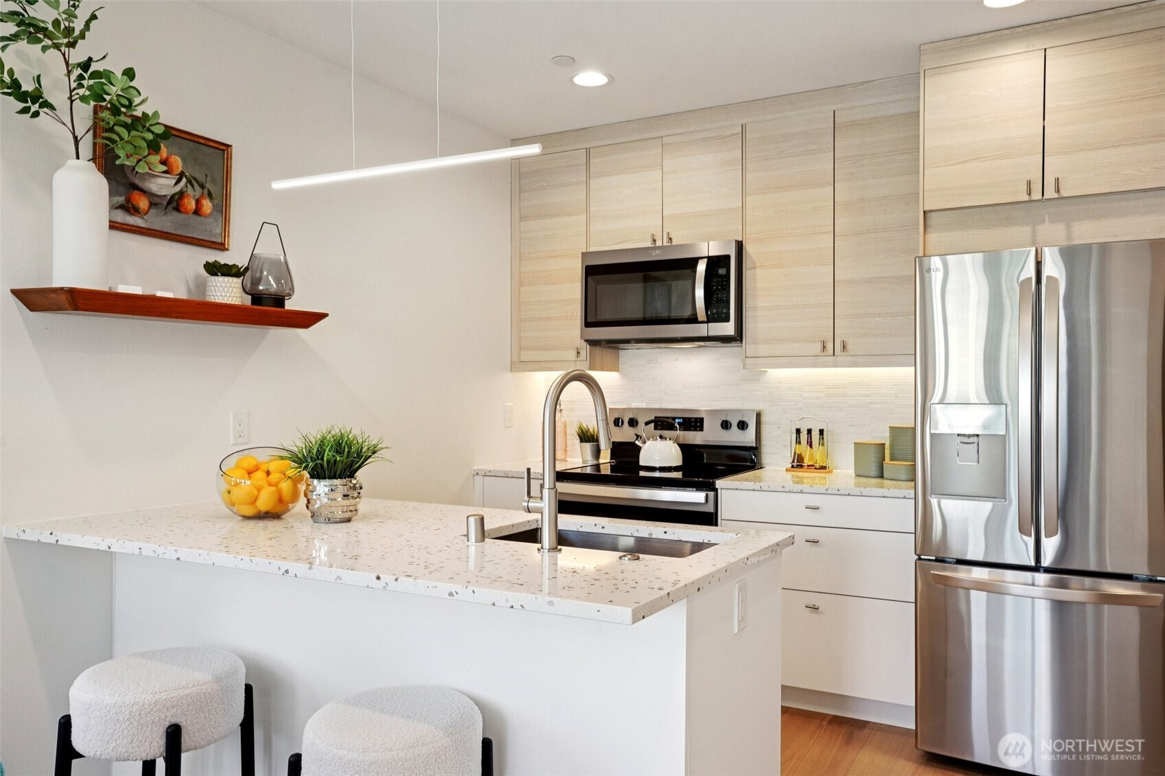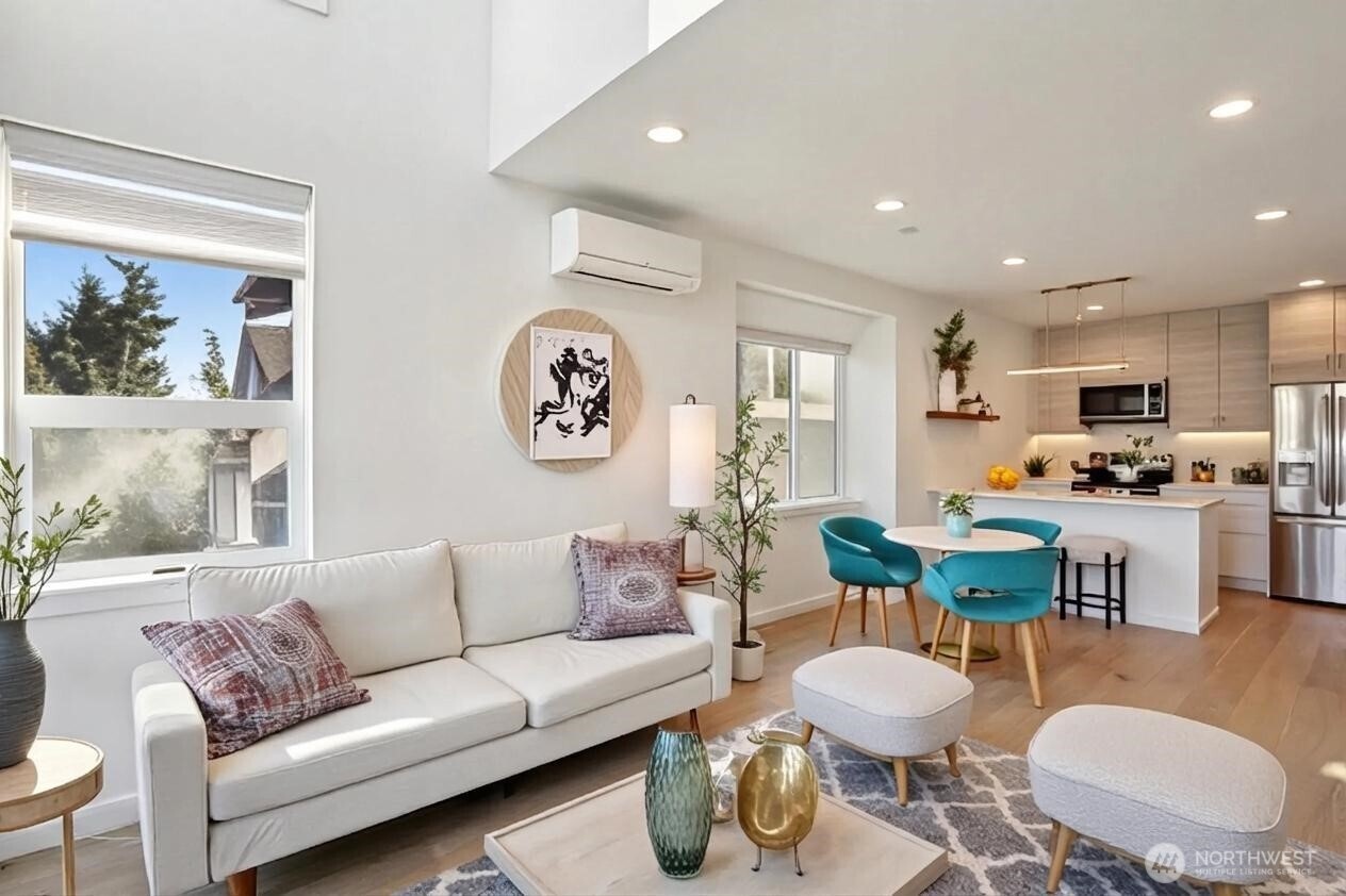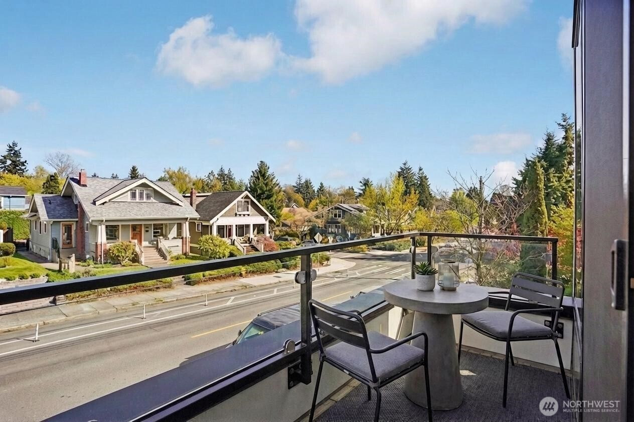 (650)533-3259Welcome home to this stunning residence tucked within the tree-lined streets of Ravenna. Thoughtful design and quality craftsmanship shine throughout, from the beautiful hardwood floors to the expansive walls of glass that fill the home with natural light. The entry level features a private office/flex space complete with its own bedroom and full bath—an ideal setup for guests, extended stays, or a quiet workspace. The open living and kitchen areas boast high ceilings, sleek modern appliances, and generous windows, creating an inviting atmosphere perfect for entertaining or unwinding after a long day. Upstairs, a loft-style third bedroom doubles as a rec room, offering versatility for your lifestyle. The spacious primary suite includes a walk-in closet and a spa-like bath designed for relaxation. Step up to the private rooftop deck and enjoy territorial views—your own peaceful retreat in the city. With Whole Foods, neighborhood shops, and the light rail station just two blocks away, convenience is at your doorstep. Nearby parks, University Village, and the University of Washington add to the exceptional location, with easy commuter access in every direction. Washer and dryer included. PLUS dedicated parking AND NO HOA!!