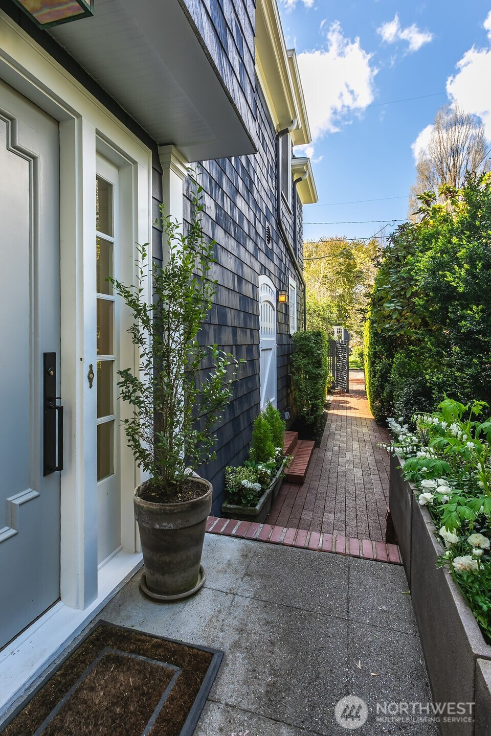 (650)533-3259On a quiet, tree-lined street just steps from the lookout point on coveted 35th Avenue in Madrona, this stately 1906 Colonial, architecturally reminiscent of Ellsworth Storey, blends timeless character with refined modern living. Tucked behind a latched gate surrounded by private gardens, the home opens to soaring ceilings and a sweeping staircase. The formal living room features beamed ceilings and a wood-burning fireplace, with French doors opening to an outdoor terrace with treetop and Lake Washington views. A sun-filled study with built-ins and fireplace, elegant powder room, and formal dining room with garden access maintain the character of the home with classic period details. The kitchen offers floor-to-ceiling cabinetry, granite counters, luxury appliances, and western light. Upstairs, two bedrooms share a classic black and white tiled full bath, while the primary suite features a fireplace with original mural intact. A newly installed ensuite bath showcases a walk-in marble shower and elegant porcelain Waterworks tub set beneath a bay of windows with picturesque lake views. The spacious lower level offers a recreation area and a separate entry with ADU potential. Fully enclosed gardens with charming flagstone path, mature plantings, and a lower seating area beneath a majestic maple. A/C, alarm system, electric charging station. Stroll to Madrona shops, trails, and shores of Lake Washington. A sophisticated and private residence in a charming neighborhood setting.
