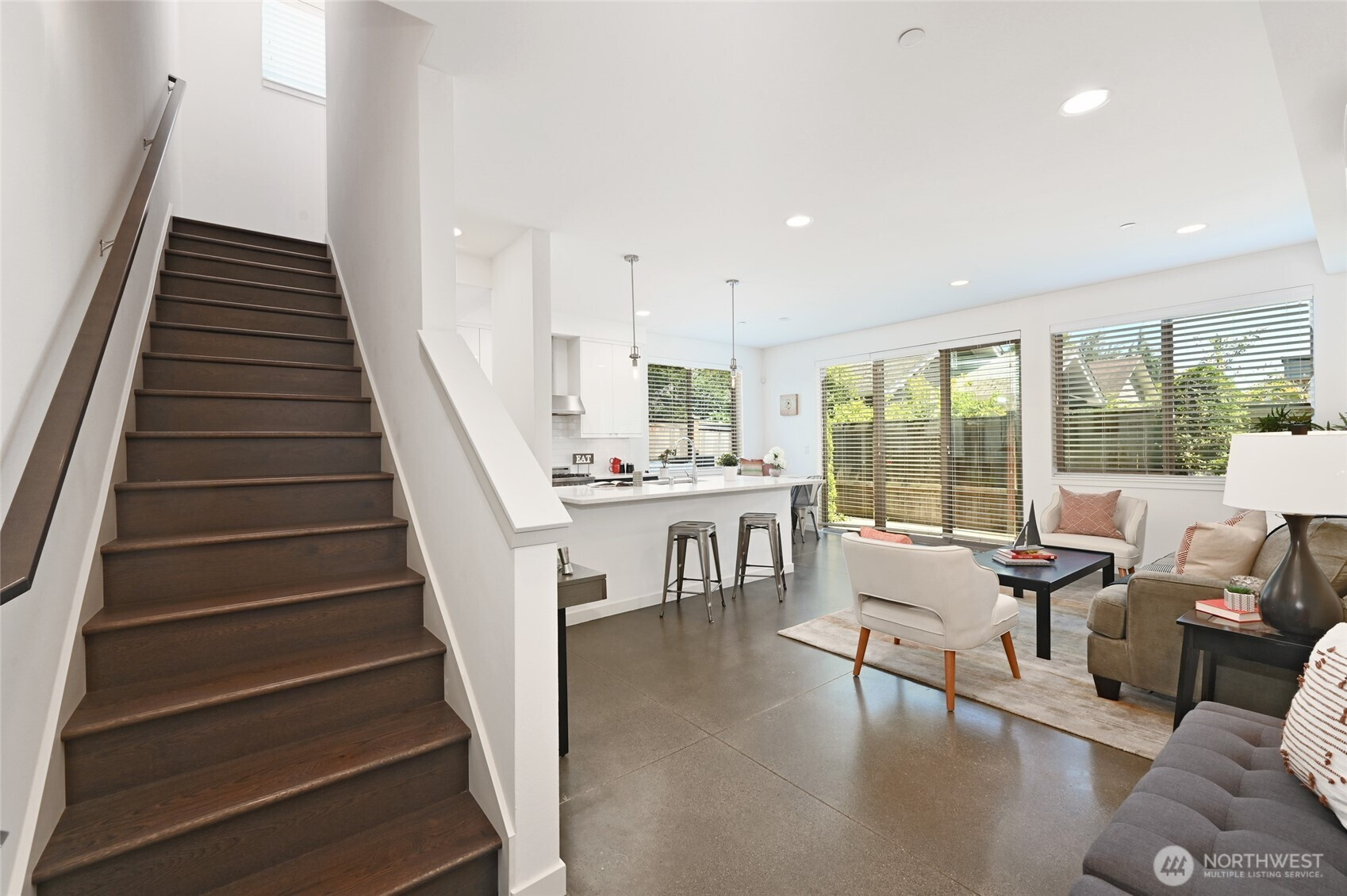 (650)533-3259A beautifully kept, 2 bed 2 bath Sunset Hill home with the perfect combination of location and function. Clean, contemporary finishes in this rare, level entry to the main living space townhome. The main floor is filled with natural light from large windows and a slider door to a private patio. Enjoy an open layout with a large kitchen island, quartz counters, designer appliances, large pantry, built-in eating nook bench and polished concrete floors. Up a level to the 2nd bedroom with built in office niche and private deck. Full bath and washer/dryer on this floor. The upper level primary suite has a lavish ensuite bath, custom closet system and custom window coverings. Don’t miss the roof deck with convenient water and gas hookups plus mountain views to the South! Enjoy a quiet, back corner unit, covered parking plus secure storage. Ballard and Golden Gardens just a stones throw away. A superb location in the heart of Sunset Hill’s village with its multiple cafés, shops, dining and pubs.